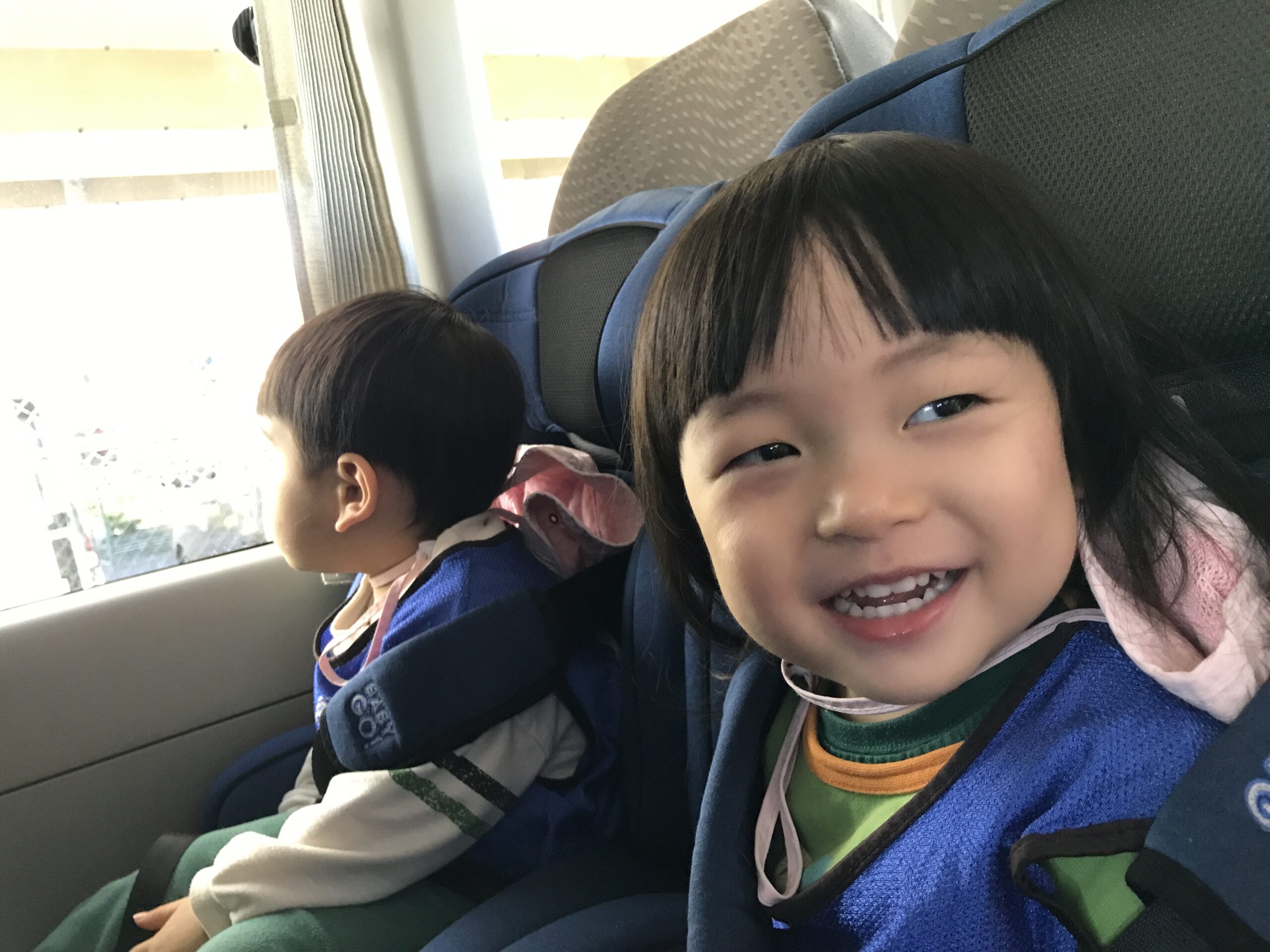 帰りのバスでは、遊び疲れたのかウトウトしはじめる子も。