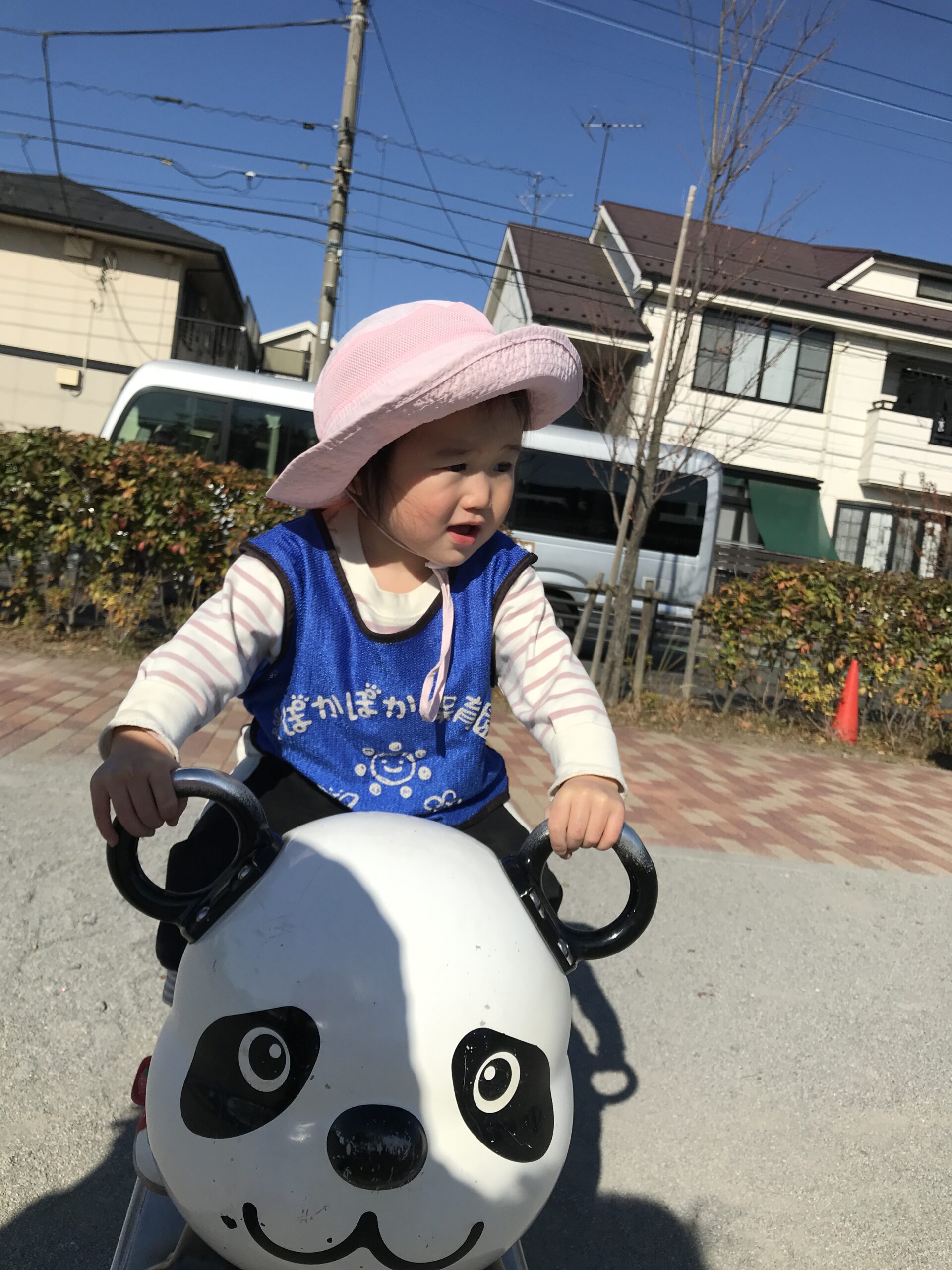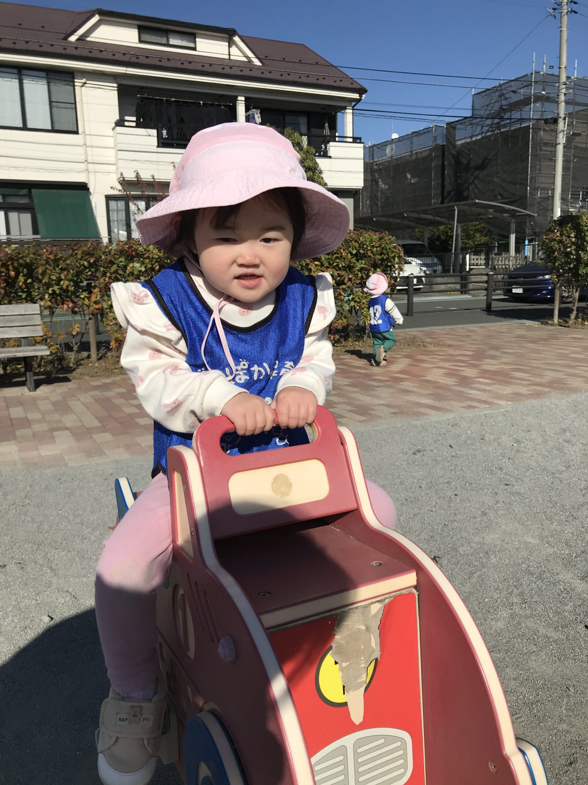 ハンドルのついた遊具では、1歳児さんがぐるぐると回しながら