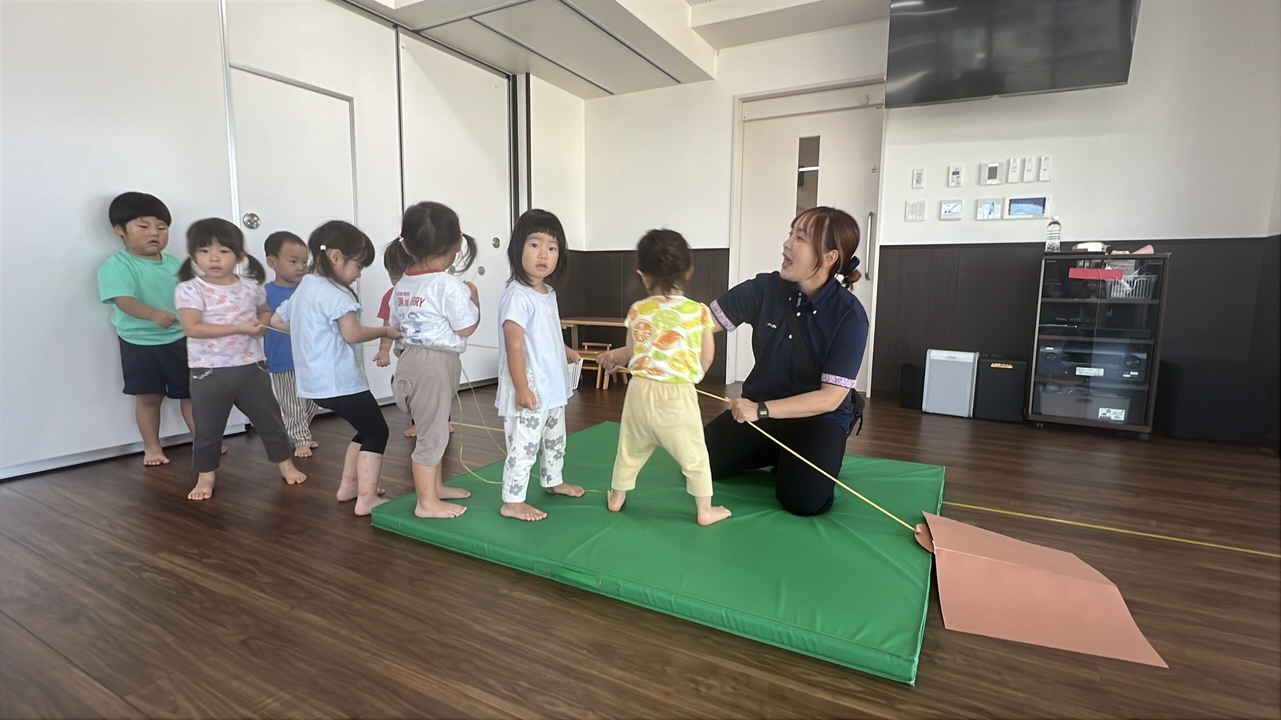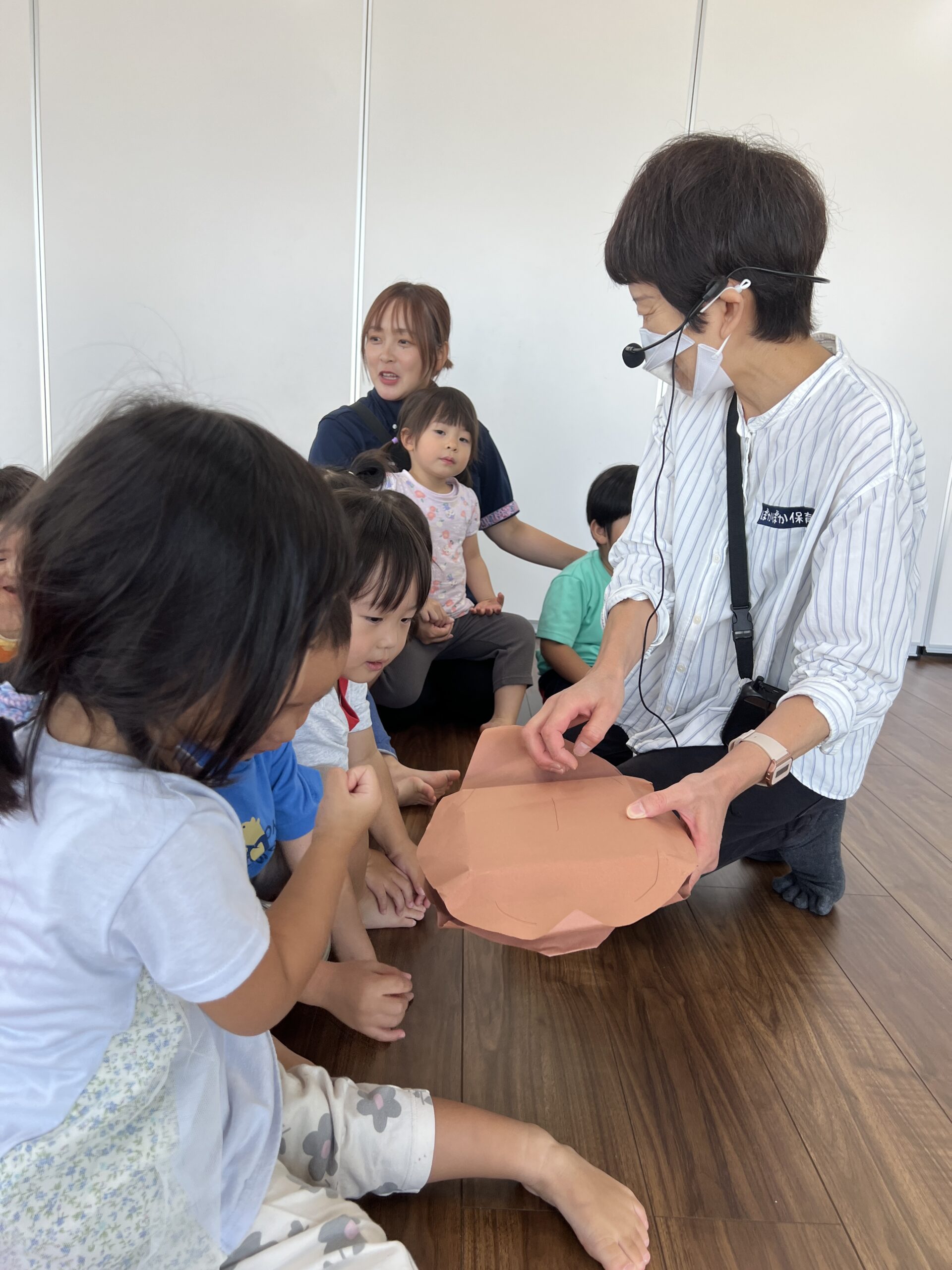大きなかぶの替え歌で大きなお芋の歌、よいしょよいしょの掛け声を息を合わせて歌えるかな?