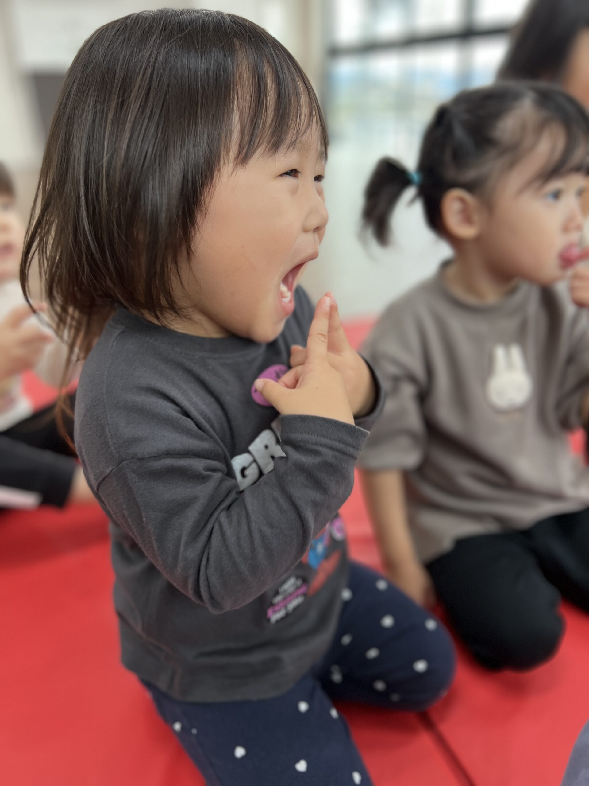 可愛らしく手先を使って上手に模倣しながら参加していました♬