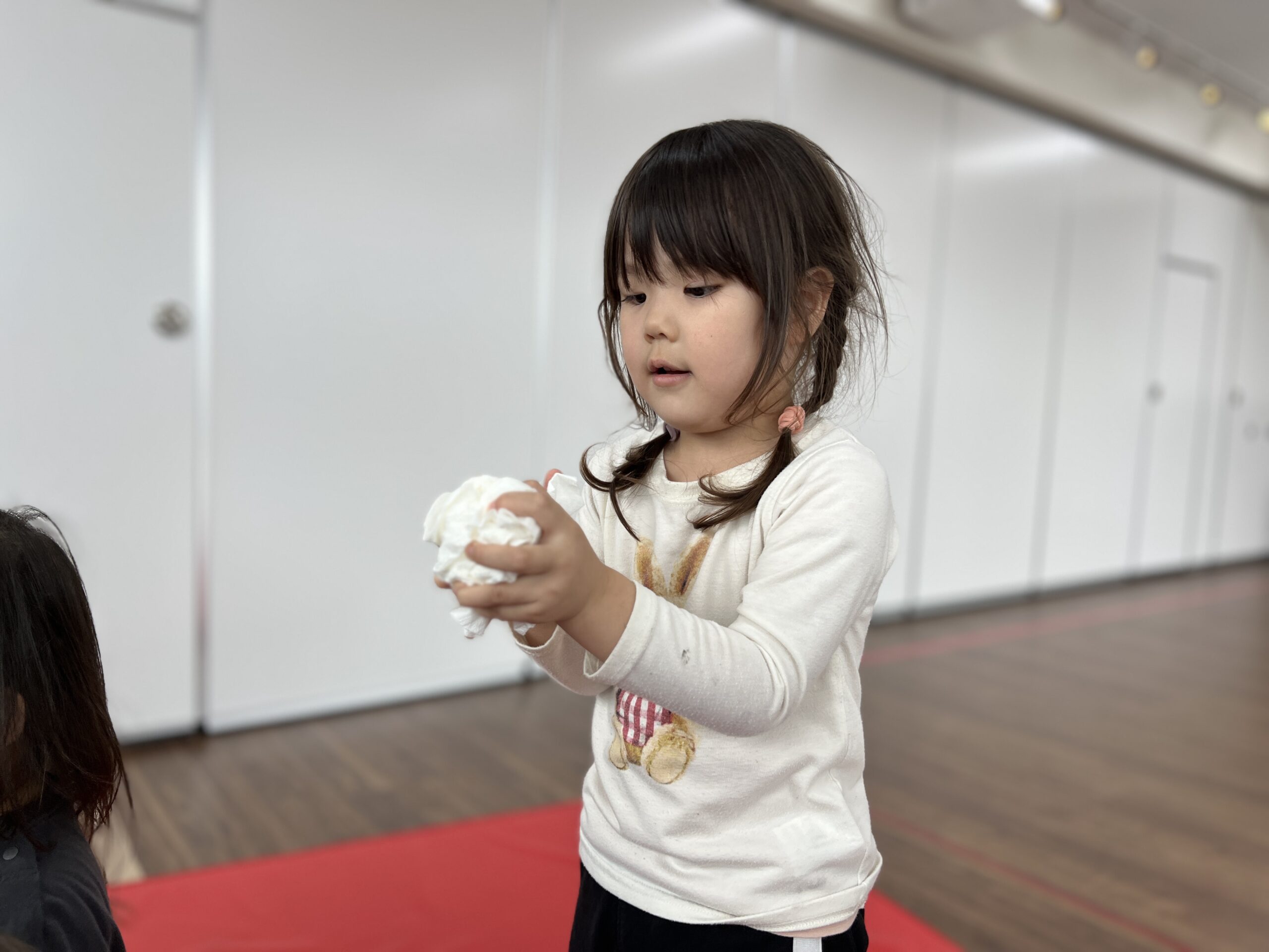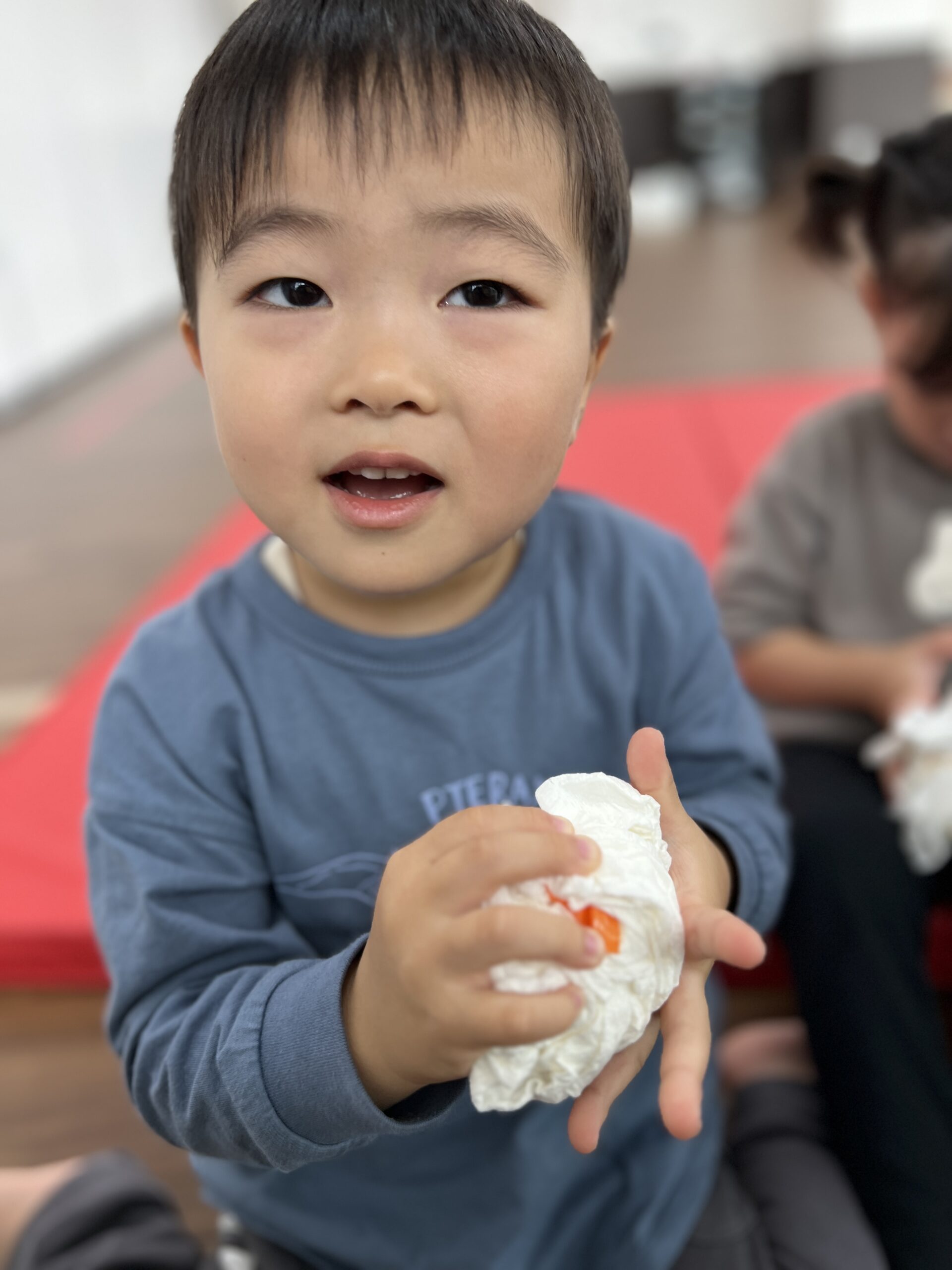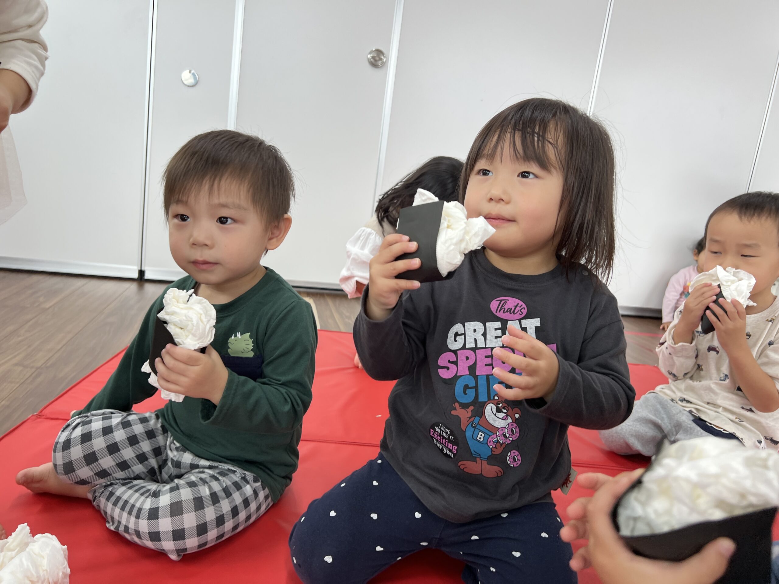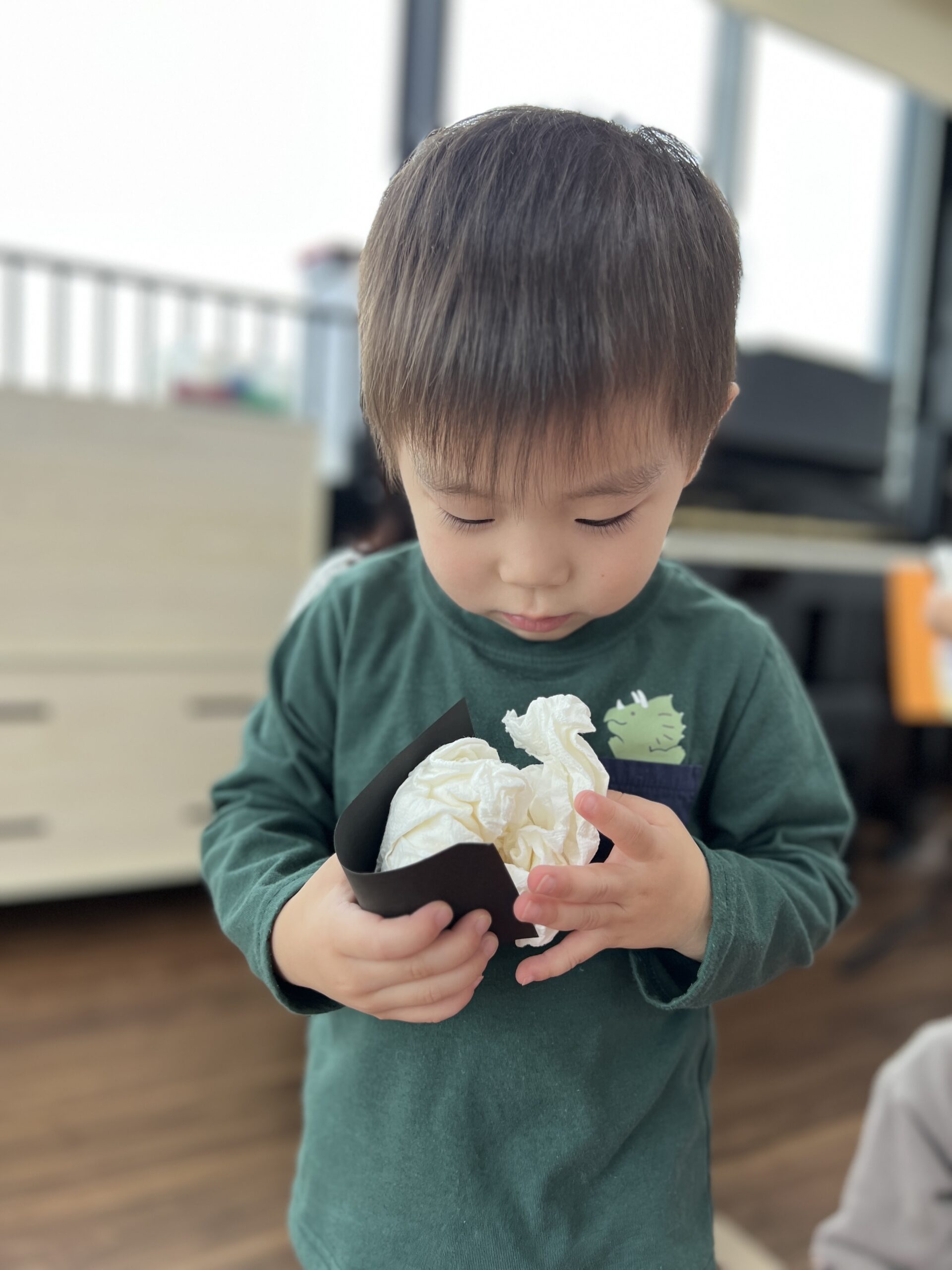 実際に、歌とリズムに合わせて、キッチンペーパーで作っていきました🍙