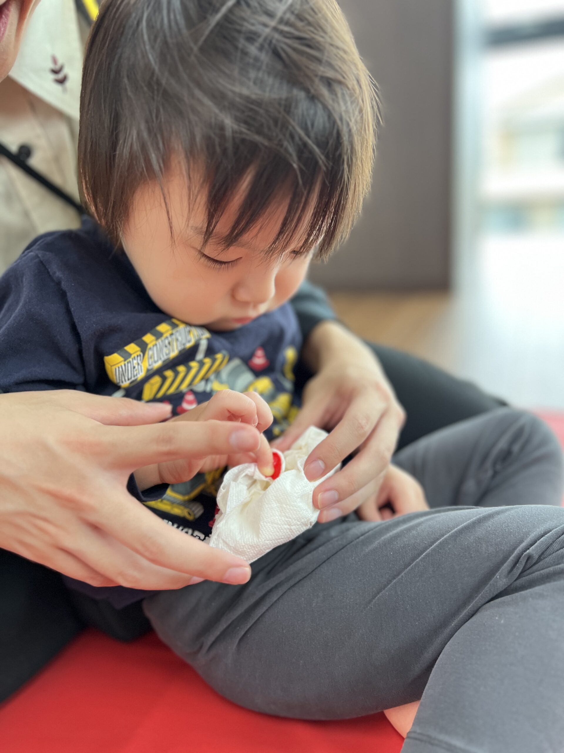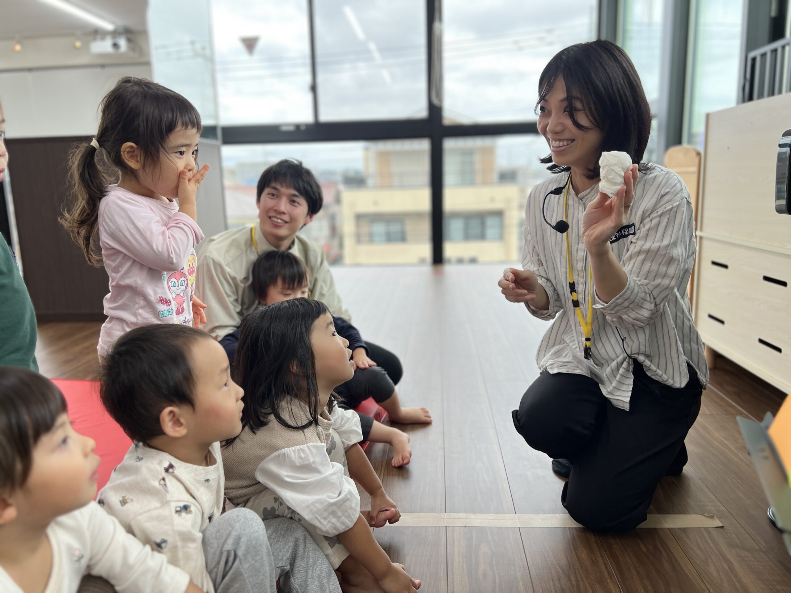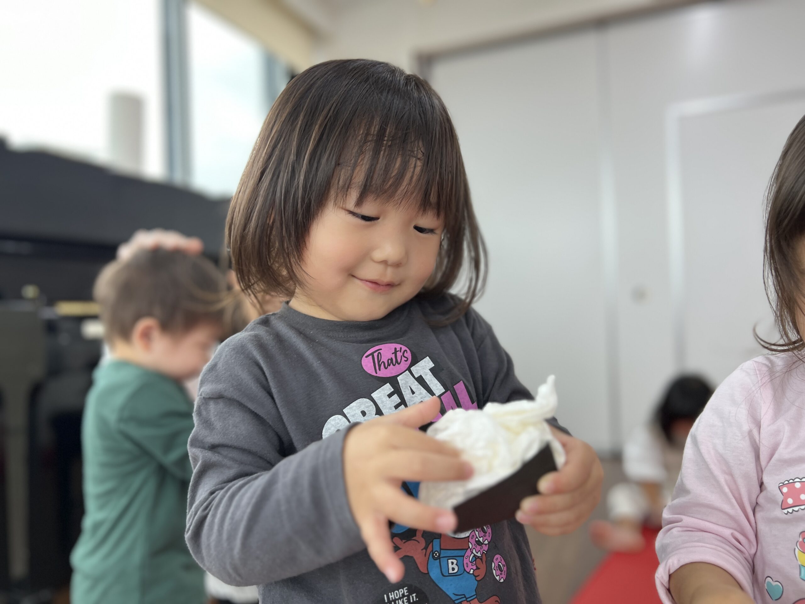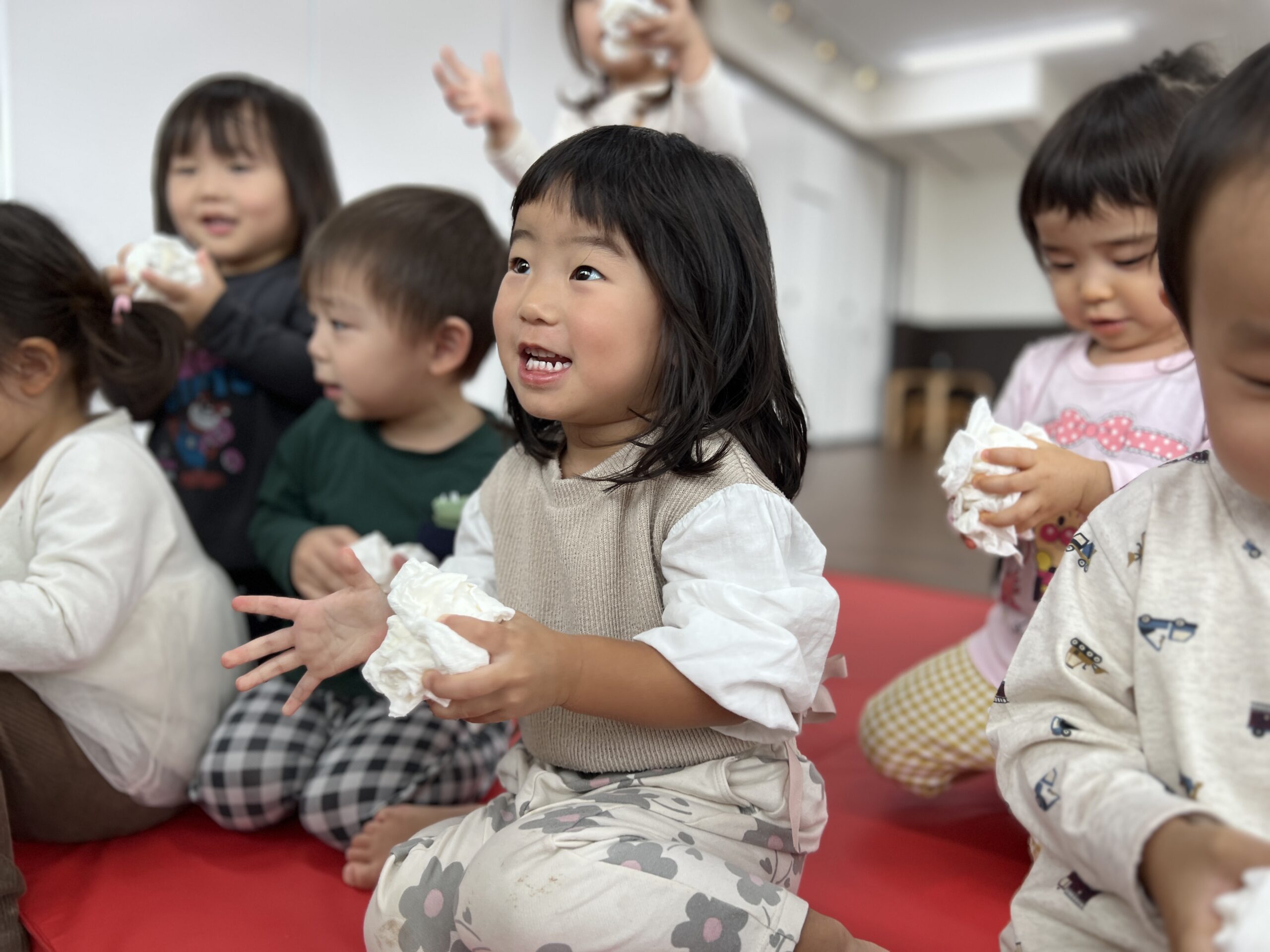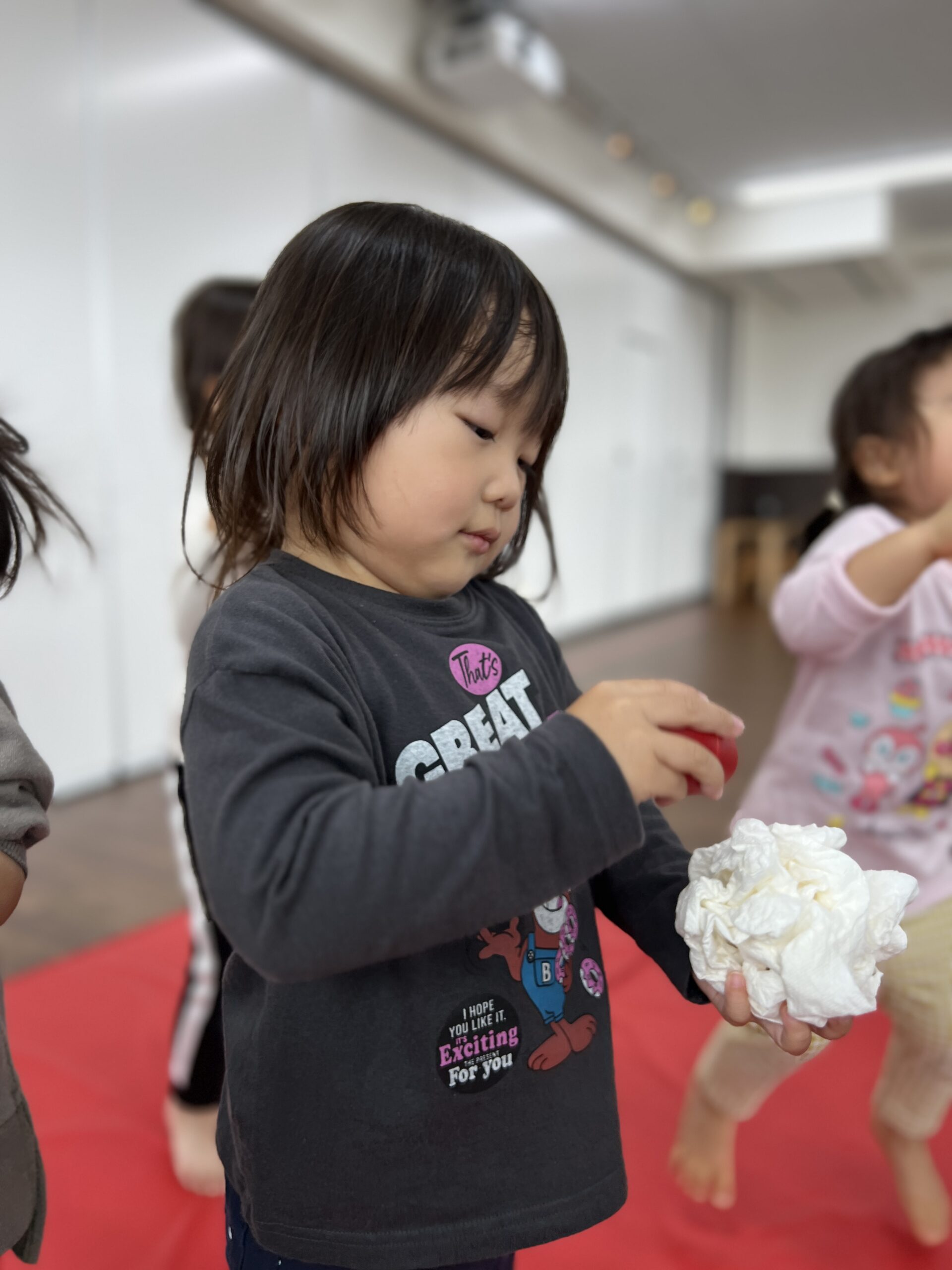 実際に、歌とリズムに合わせて、キッチンペーパーで作っていきました🍙