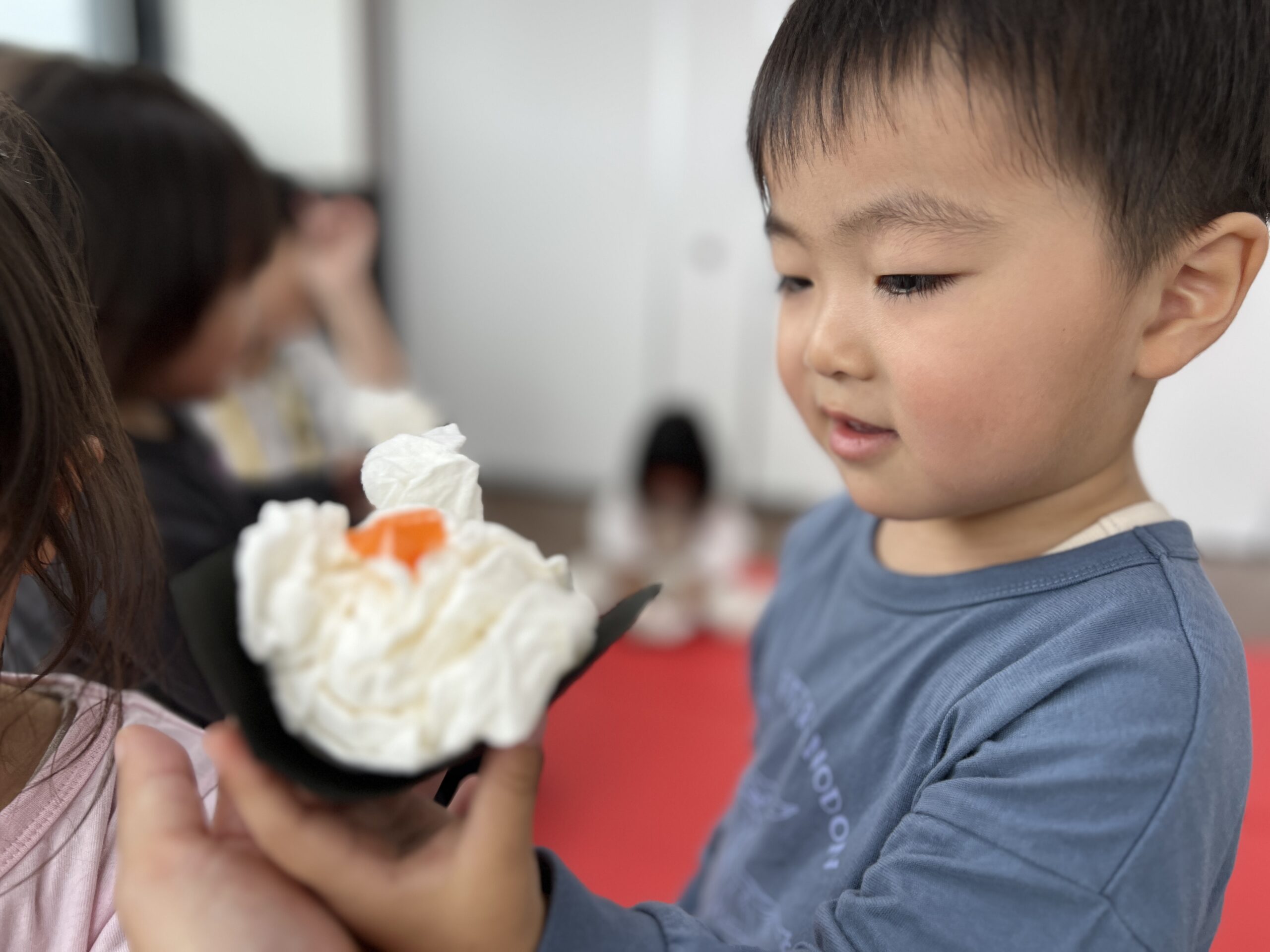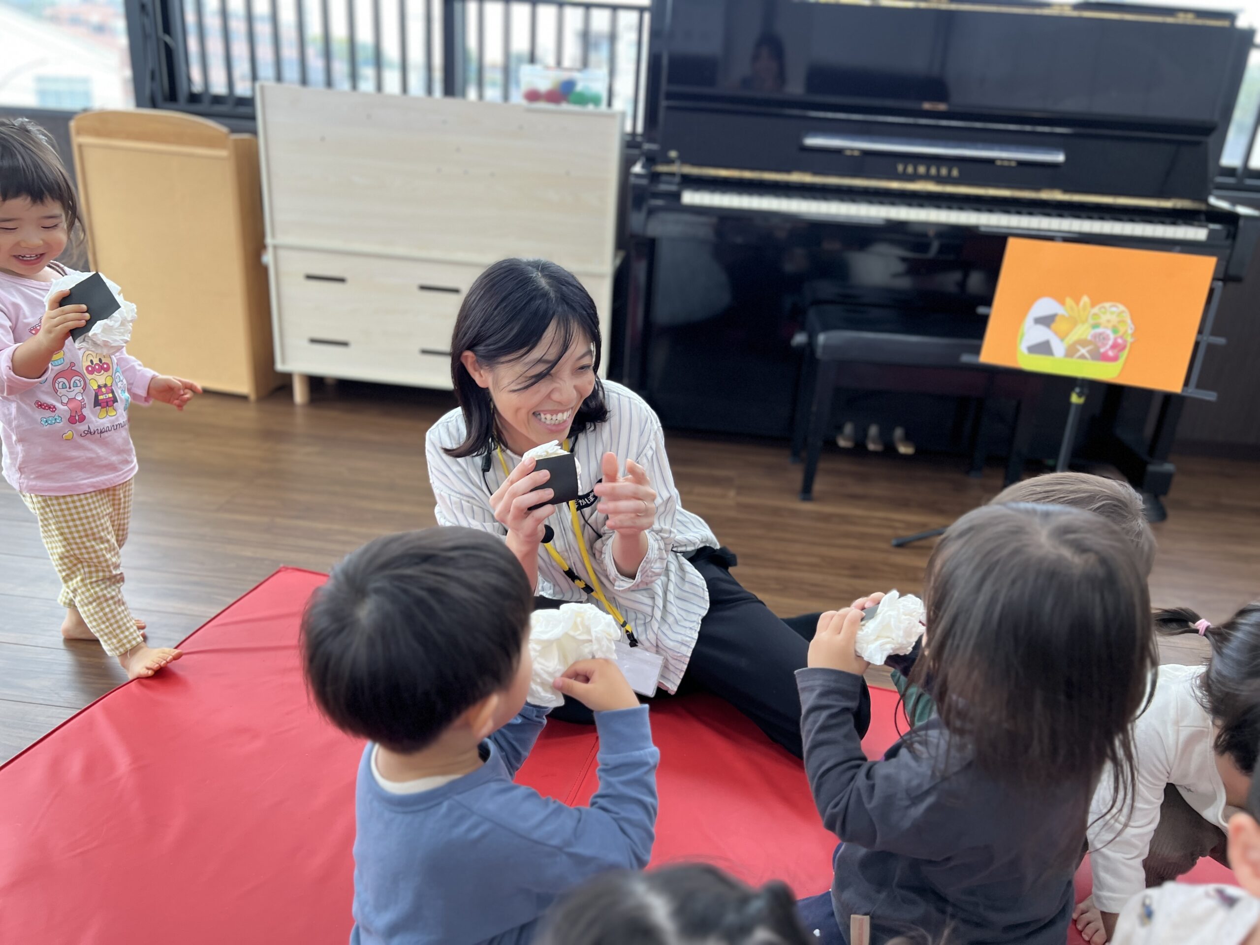 実際に、歌とリズムに合わせて、キッチンペーパーで作っていきました🍙