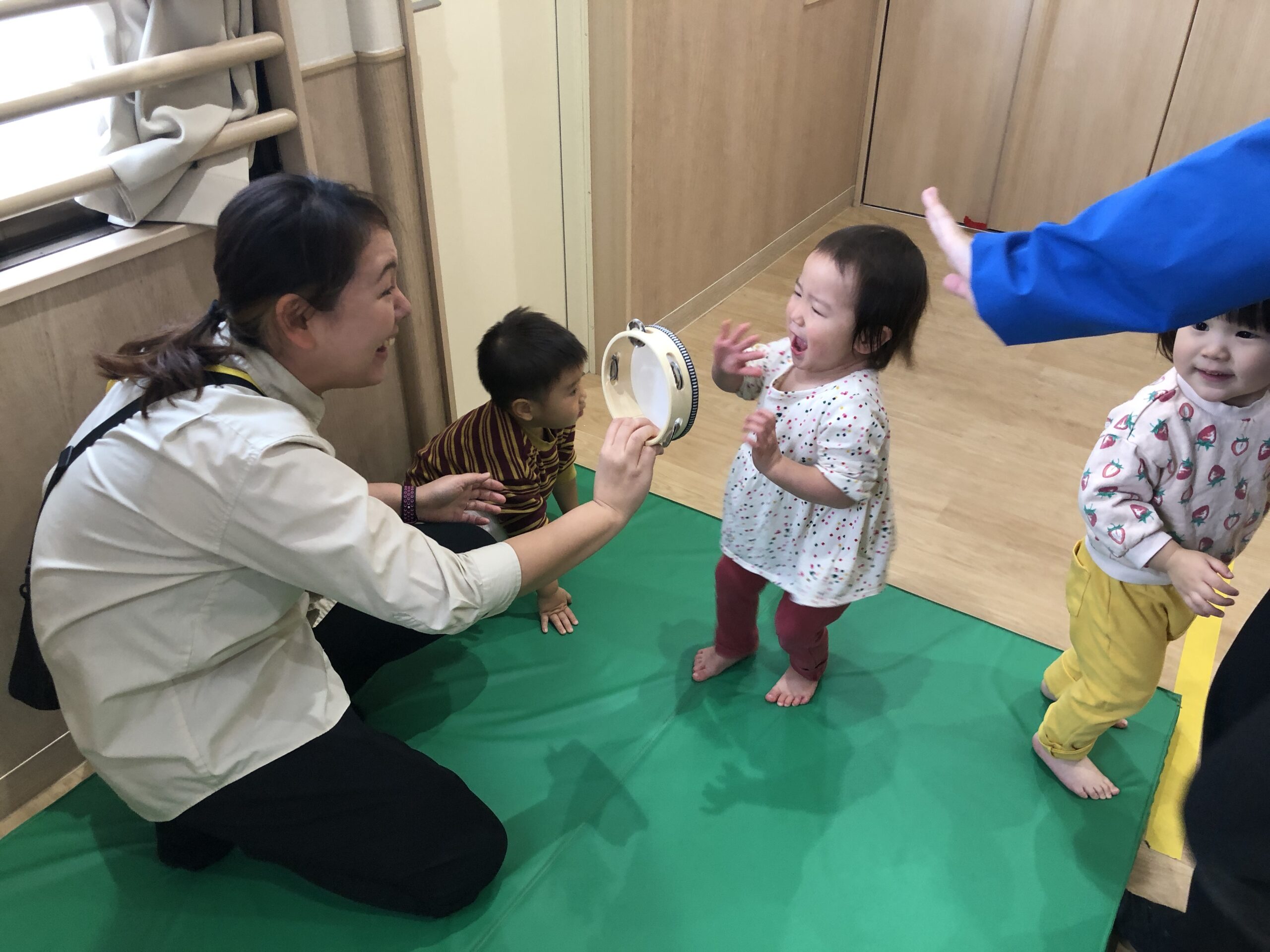 緑のマットから、タンブリンを持っている大好きな先生の所へ大移動!!