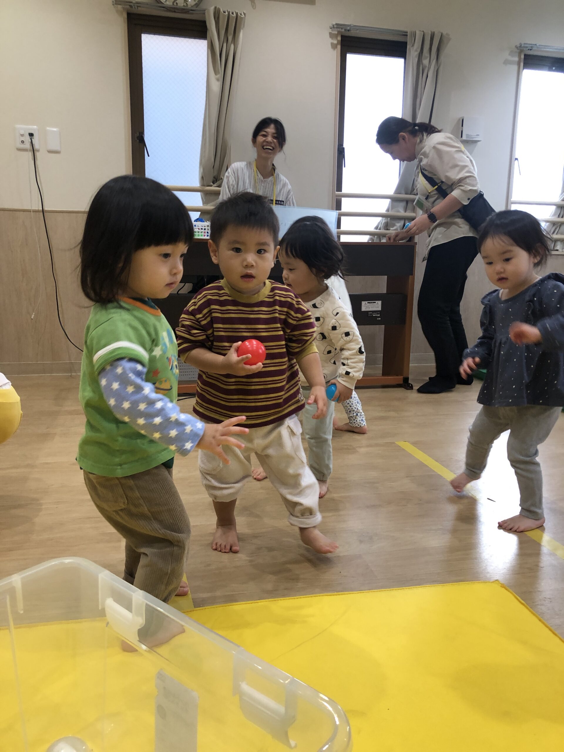 どんぐりころころの演奏が終わるまでにボールを協力して集めます!