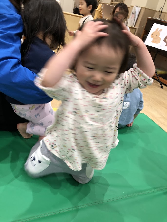 テンポの違いを楽しみながら「うさぎ」「くま」などと手をリズムを刻んでくれました!