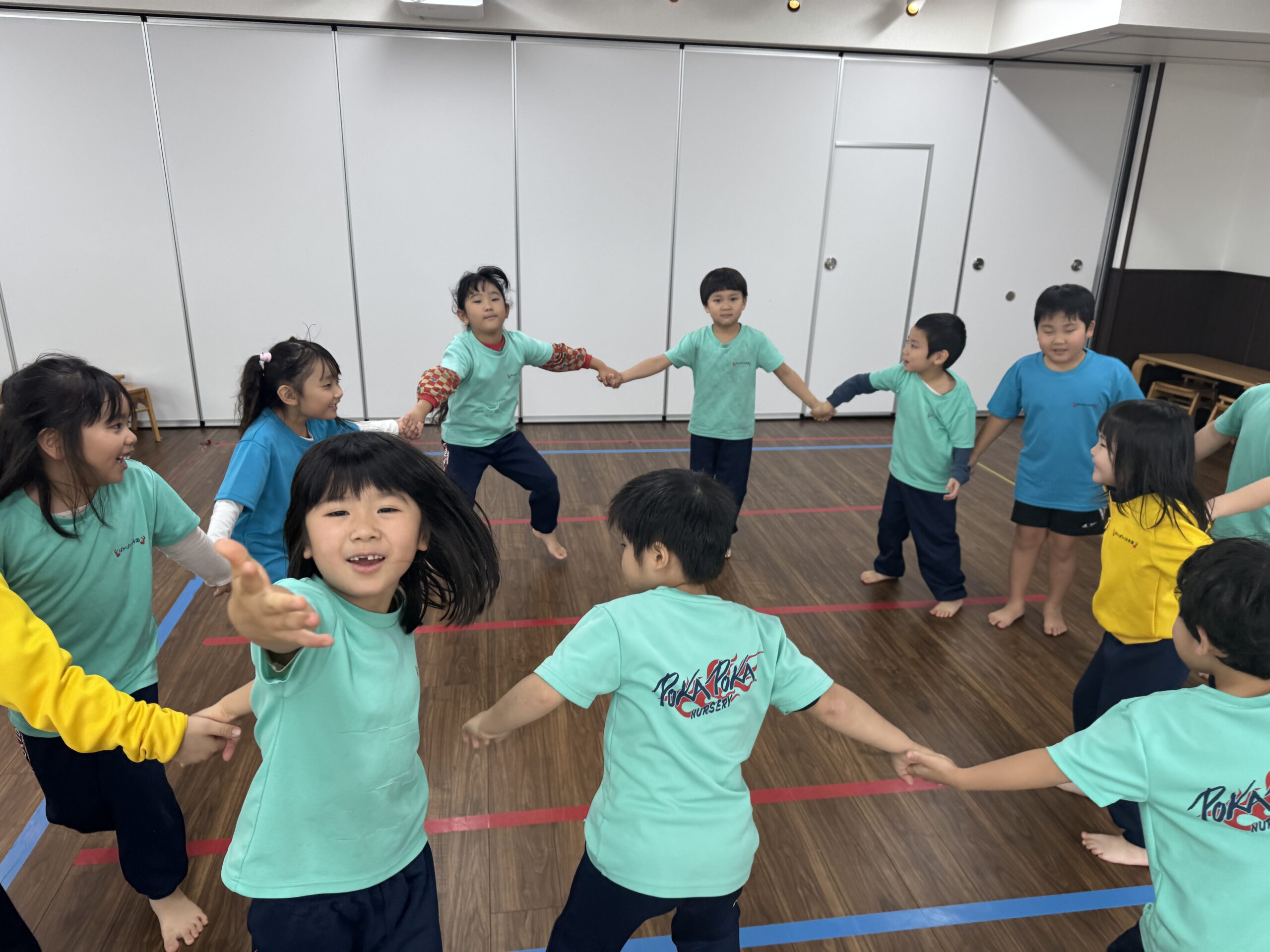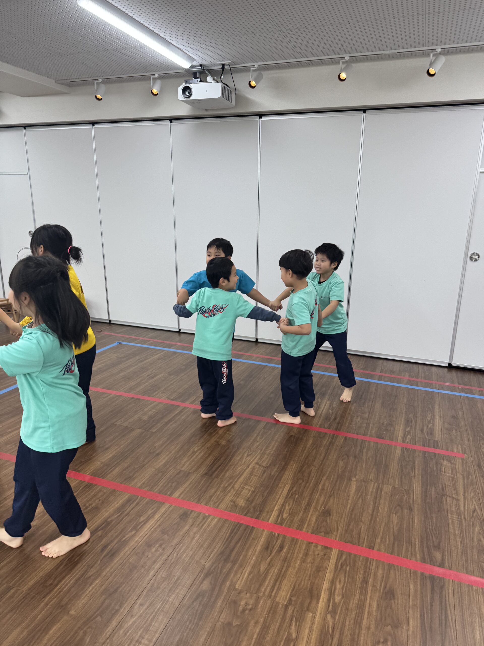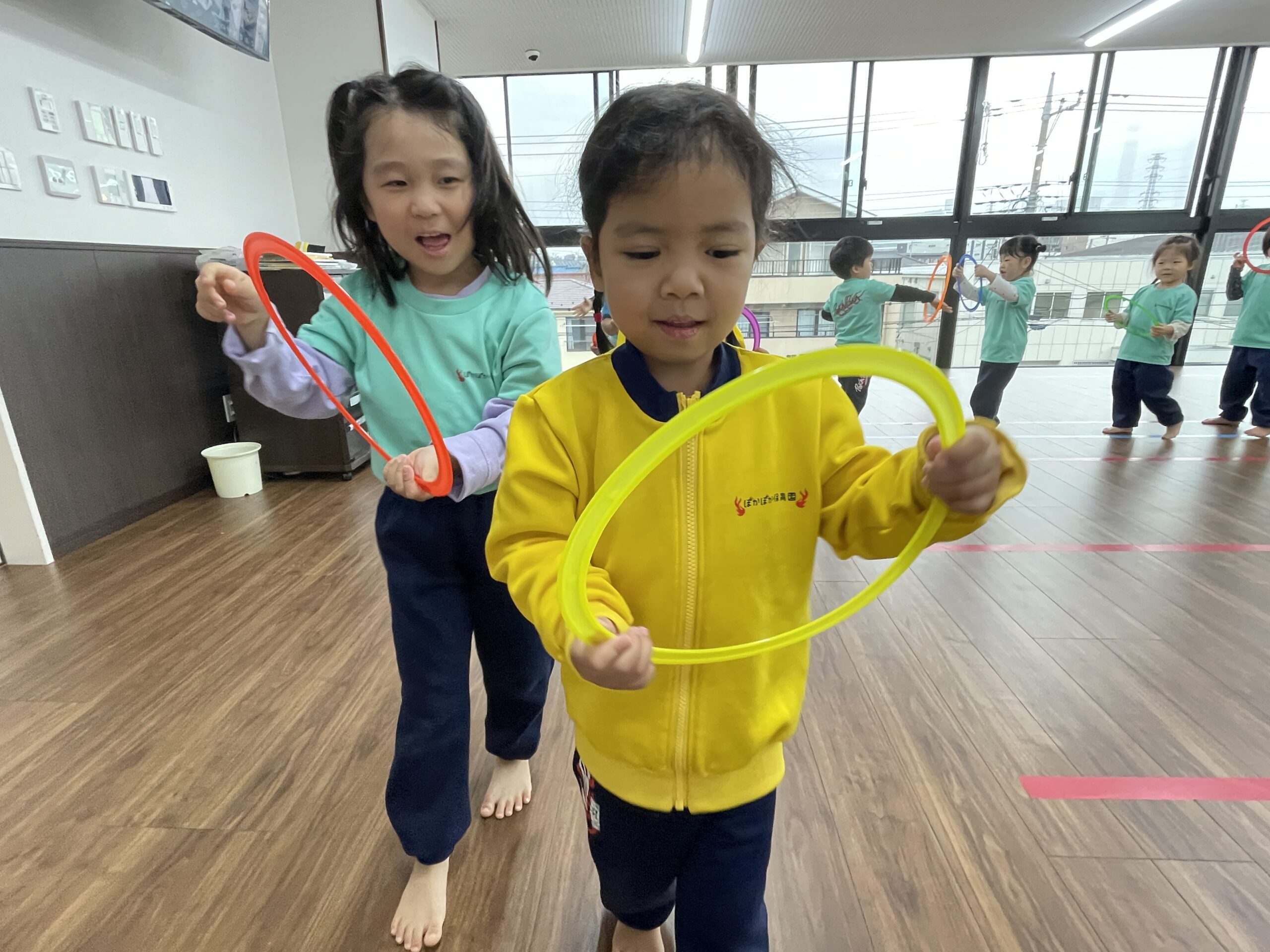 5歳児さんでは、子ども達だけでのリズムジャンプに挑戦!