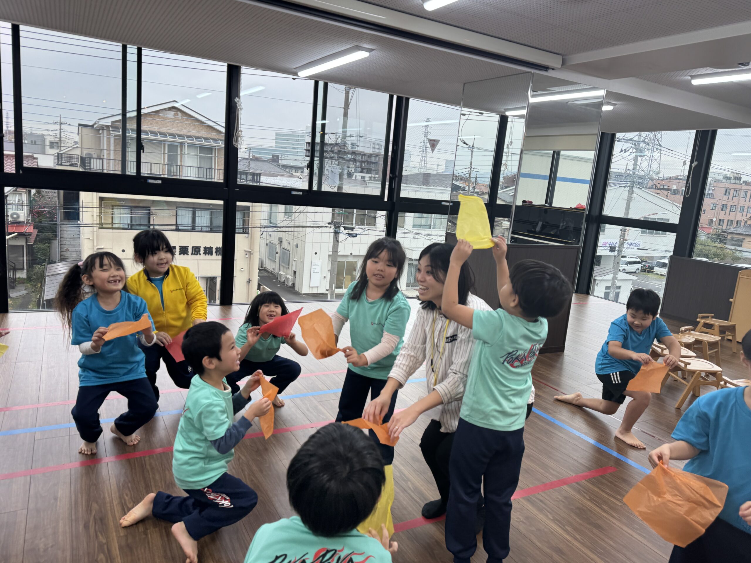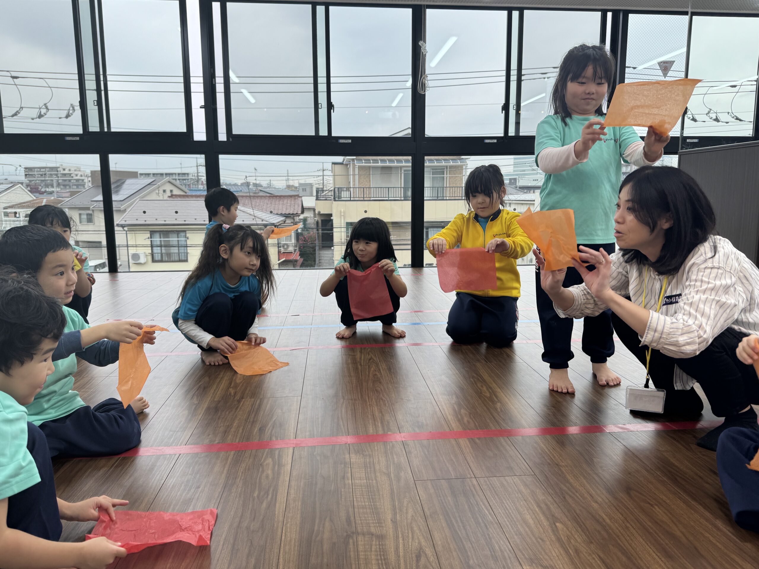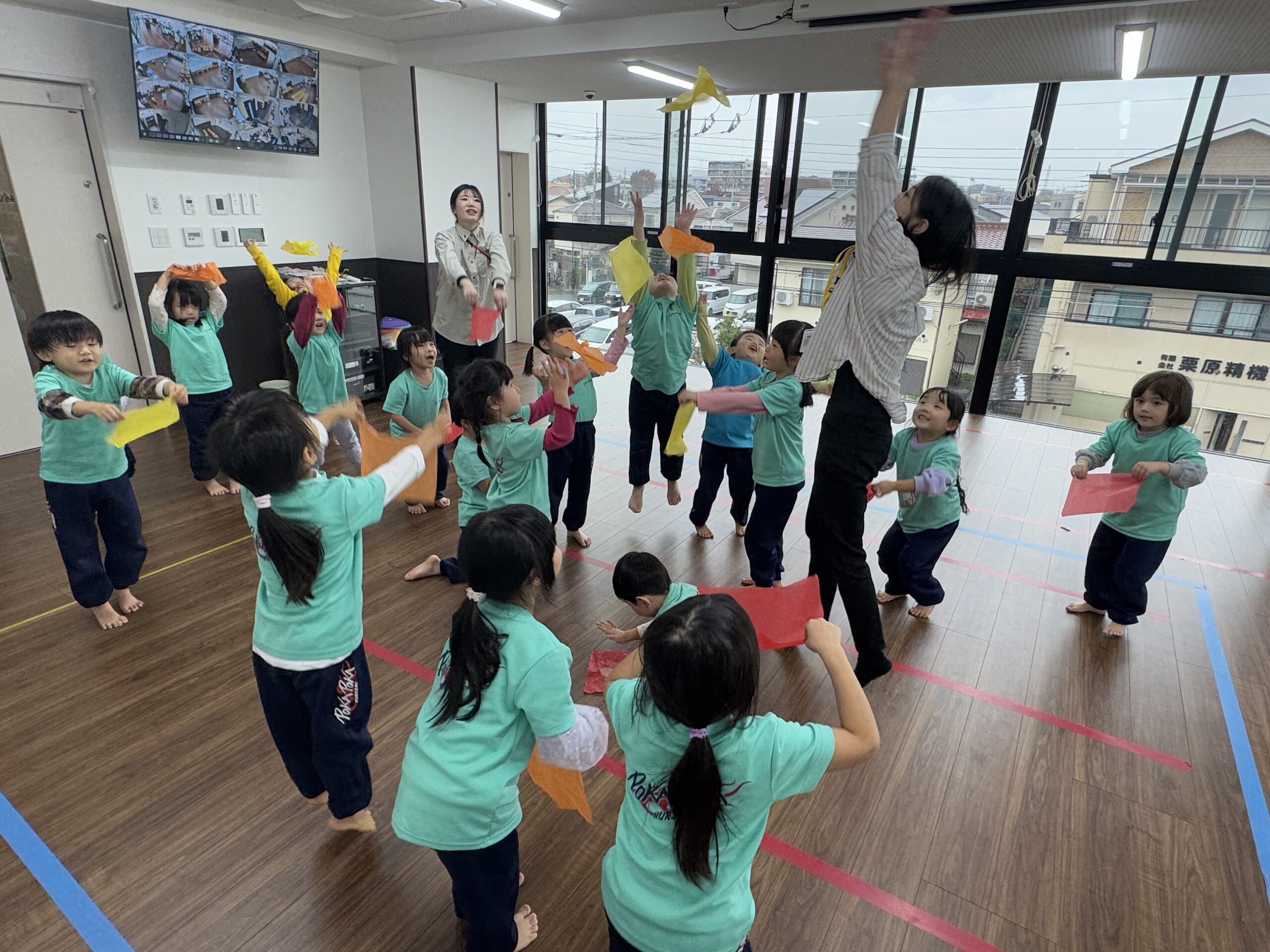 シャカシャカ・カサカサと秋の音を奏でながら、集団での行動力や周りを見て動く力を高めていきました。