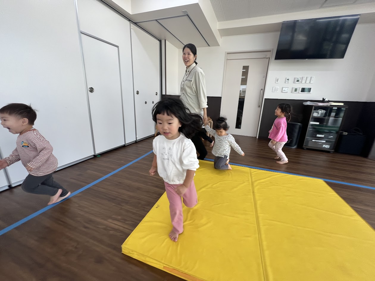 言葉のリズムが定着したら今度はクリスマスカラーのマット移動遊びです!