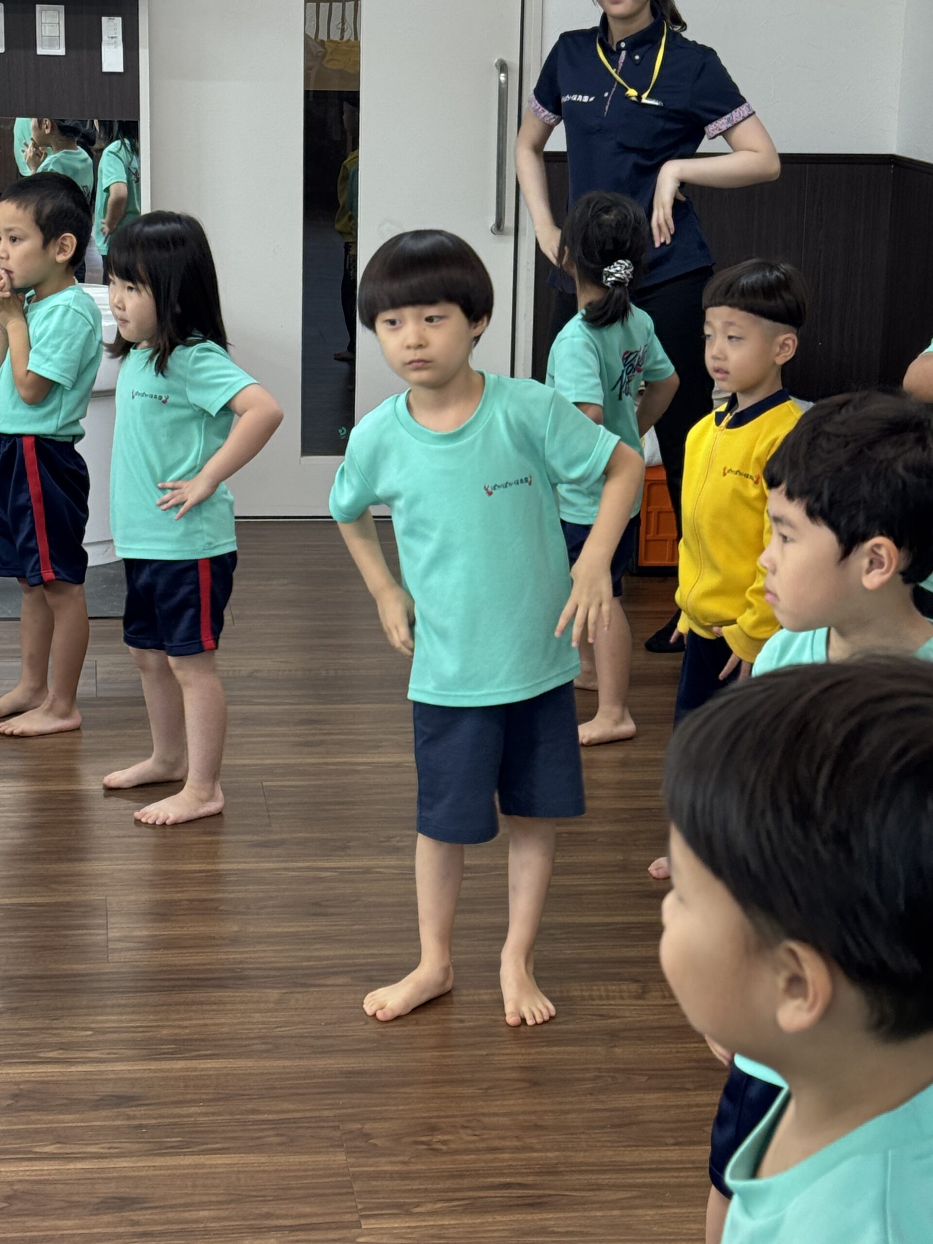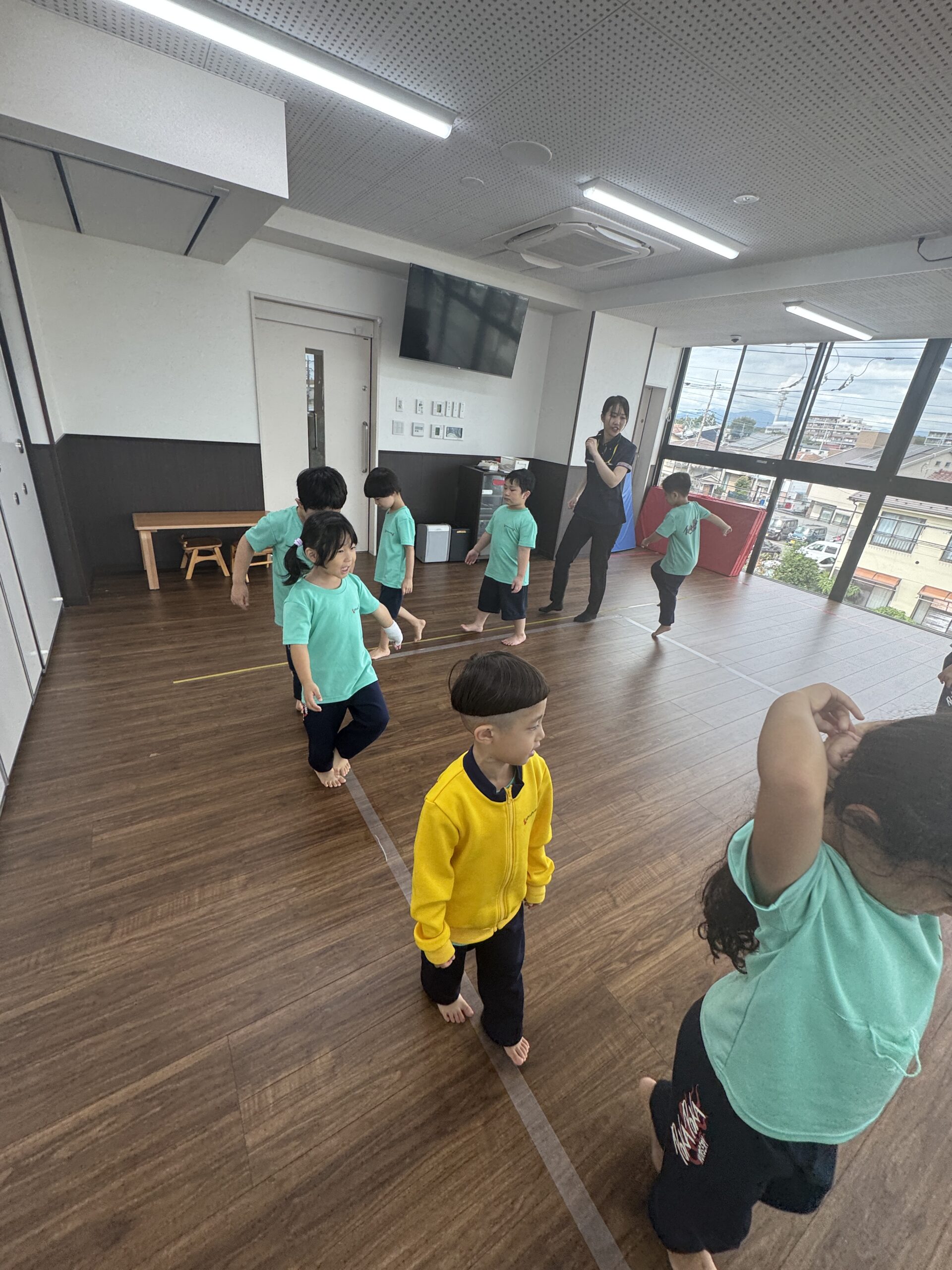 「いっしょにやろう!」と誘ったり、「ここはこうやるんだよ」と教え合ったりする姿は、5歳児ならではの関わりの深まりが感じられました。友だちと動きを合わせることで、リズムや空間の感覚も育ち、自然と協調性も身についていきます。