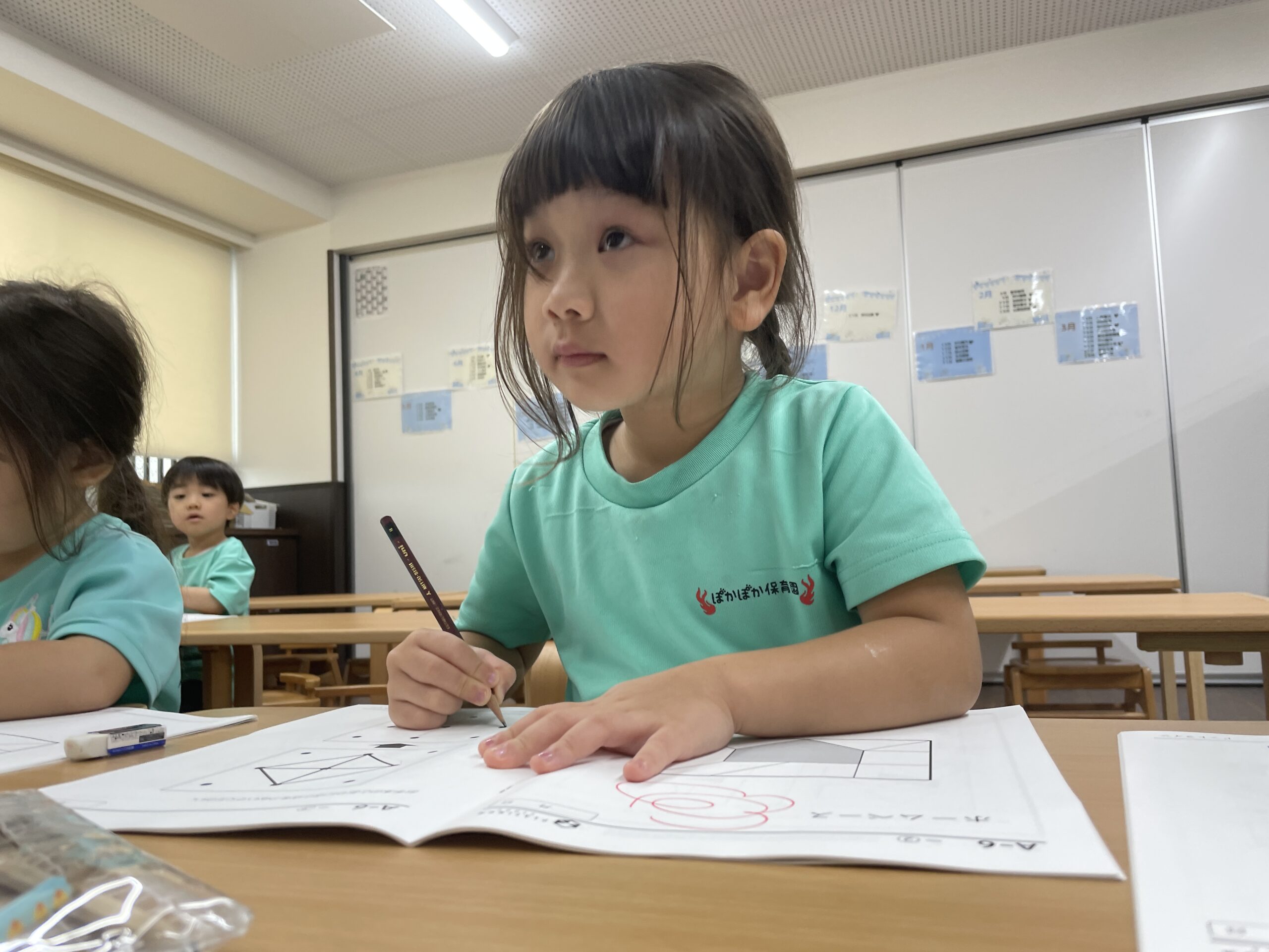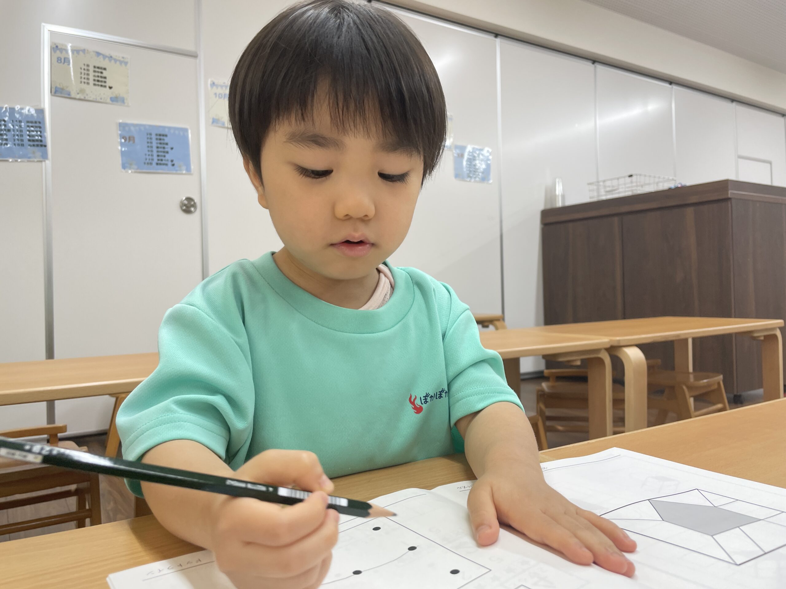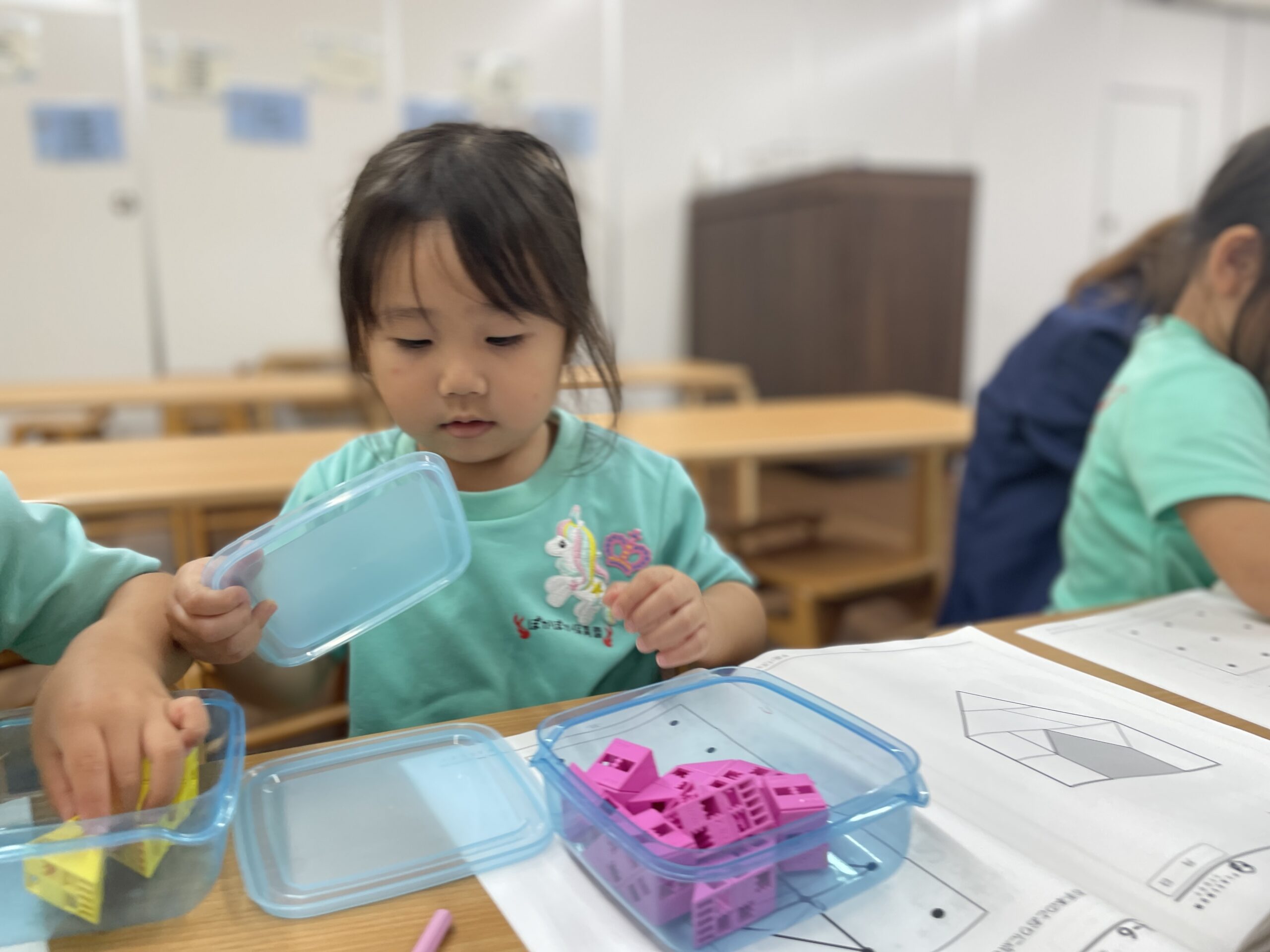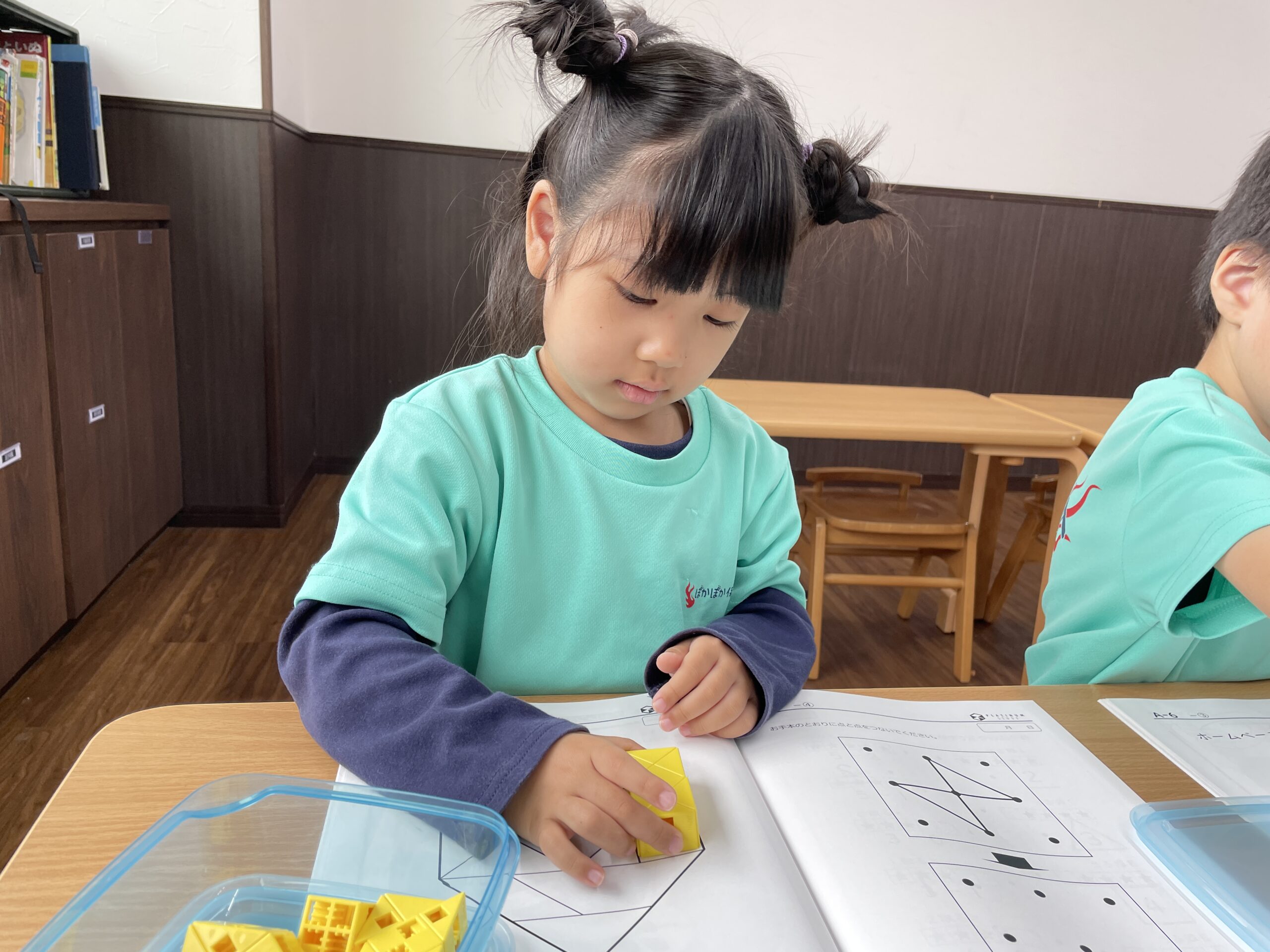 じっと考え、「あ!わかった!」そして、見事正解すると、「せんせー!できたよー!」と、満面の笑みで教えてくれました。
