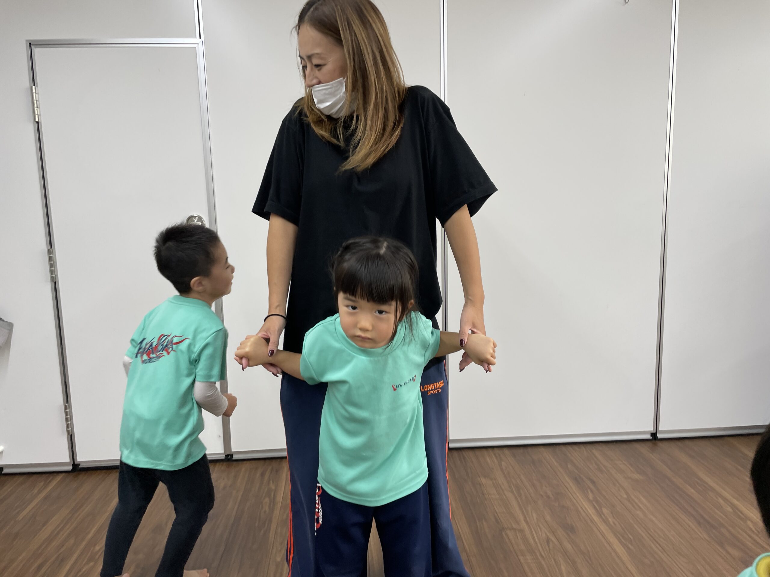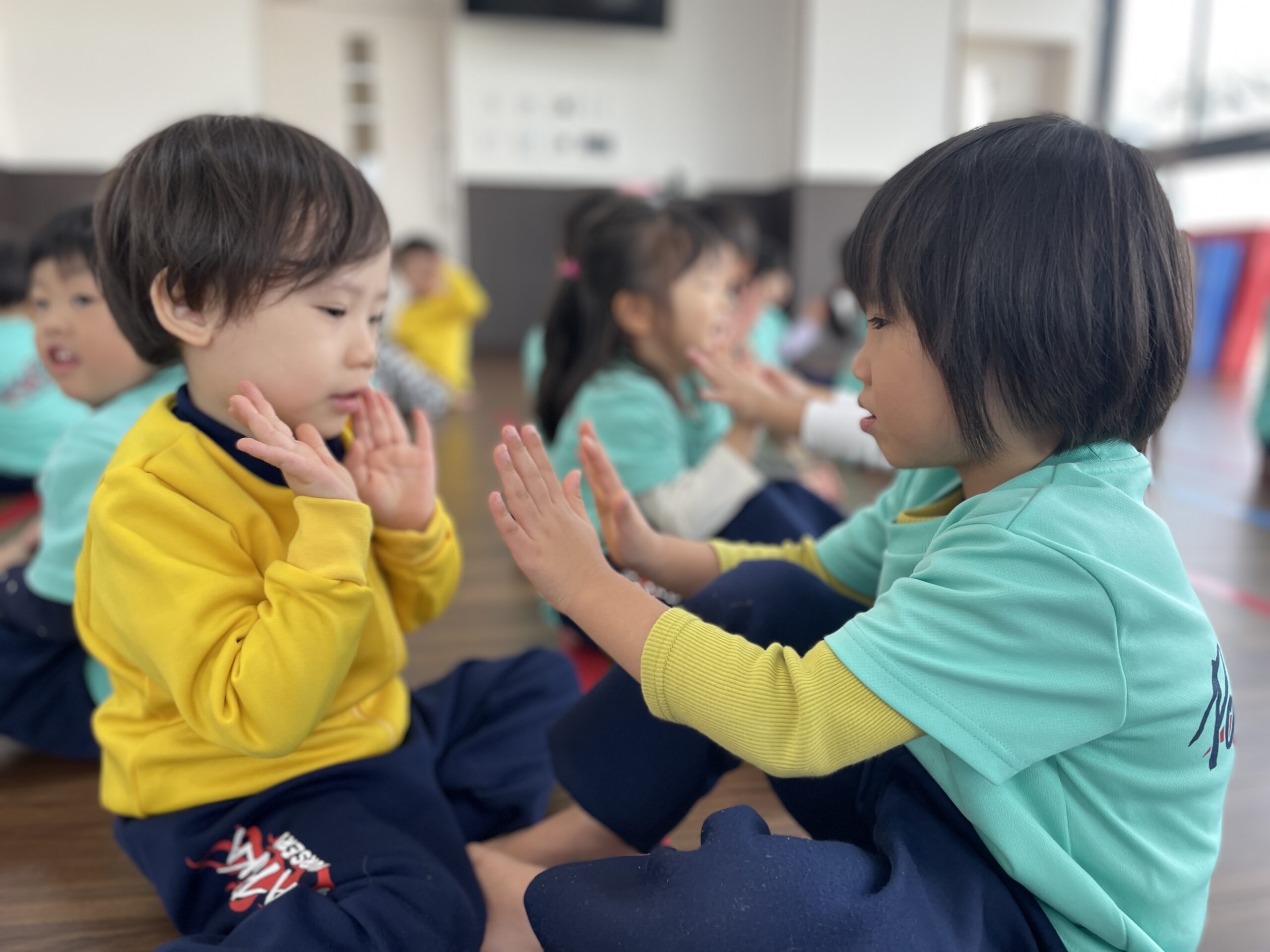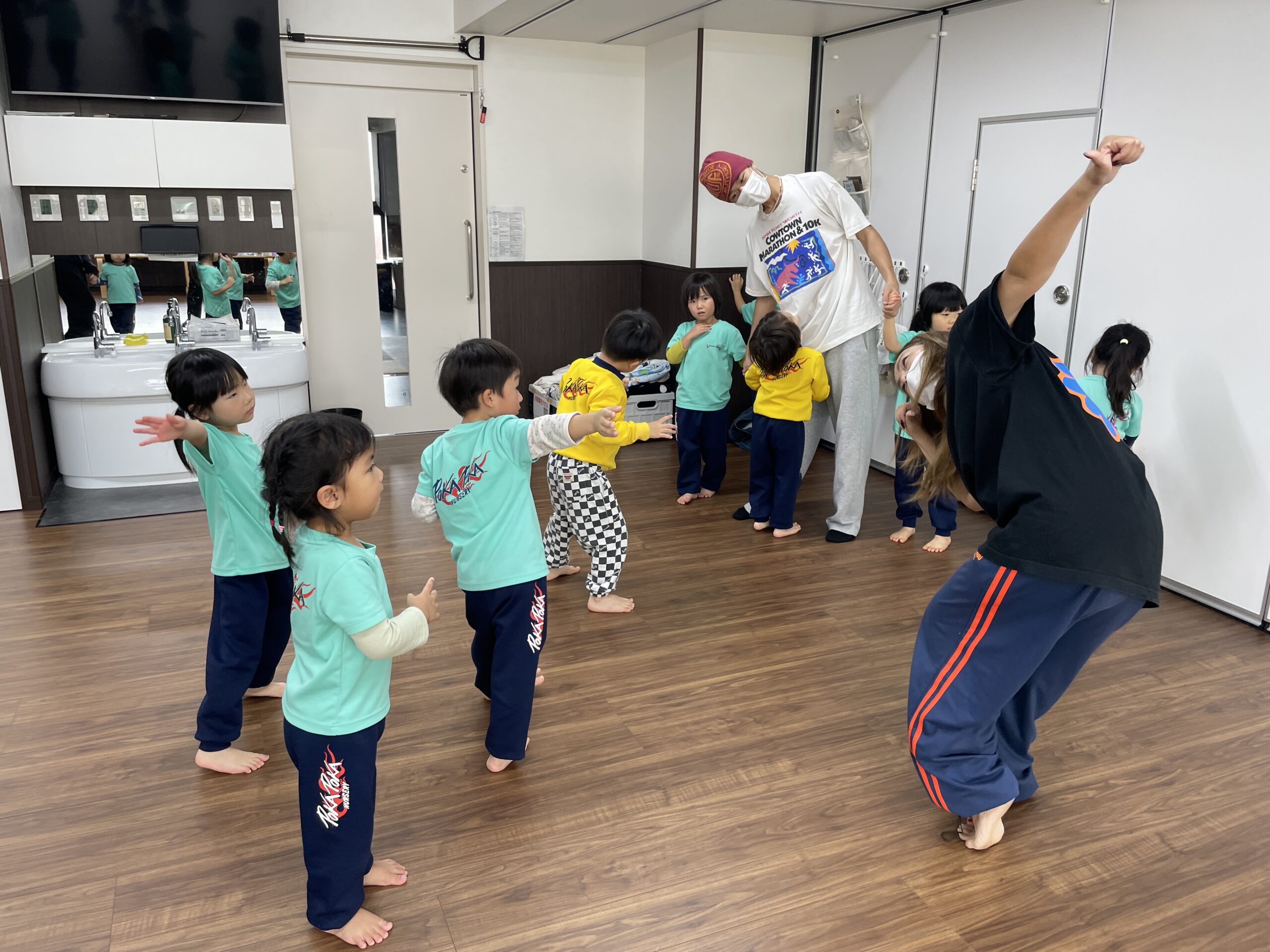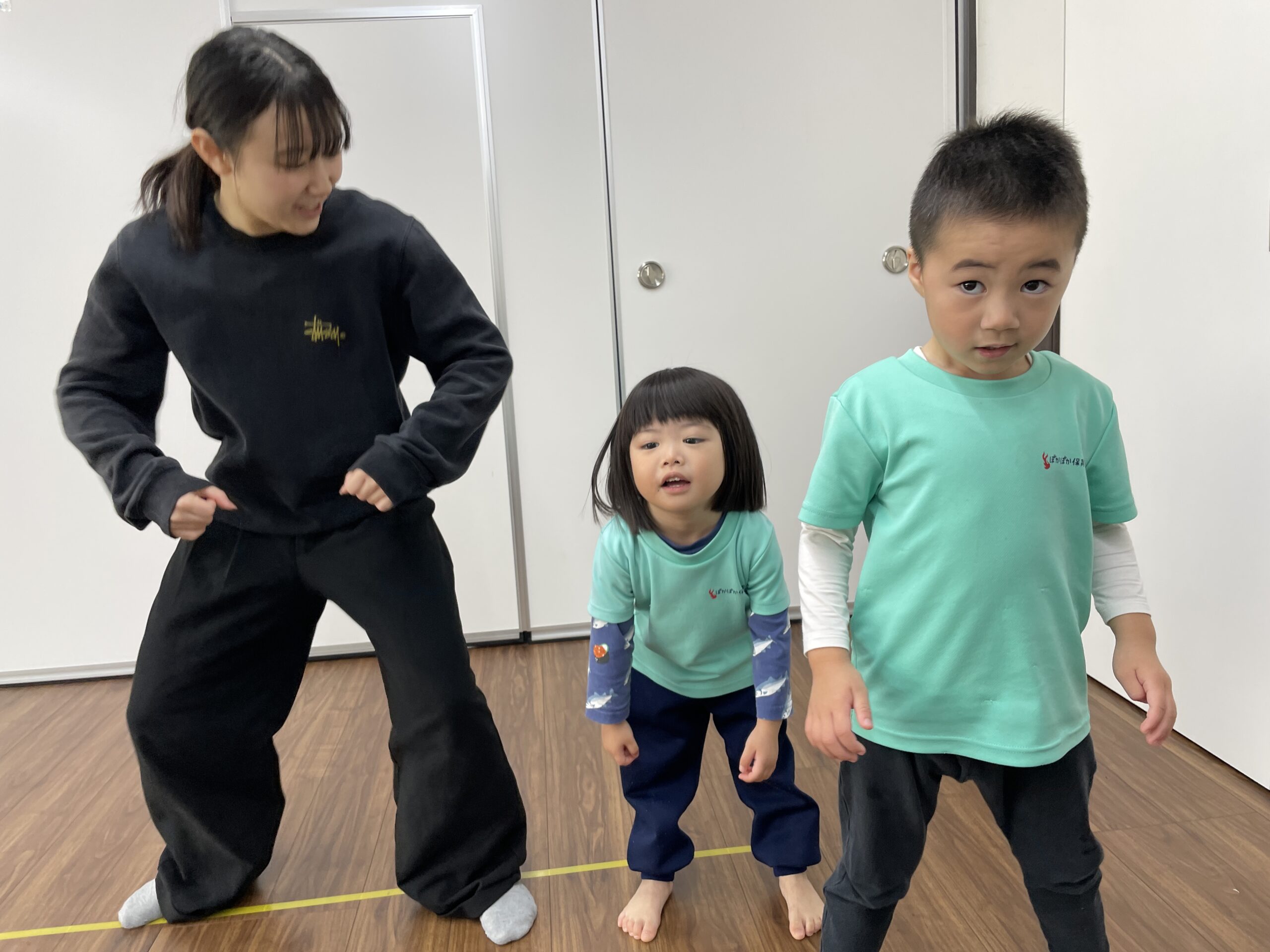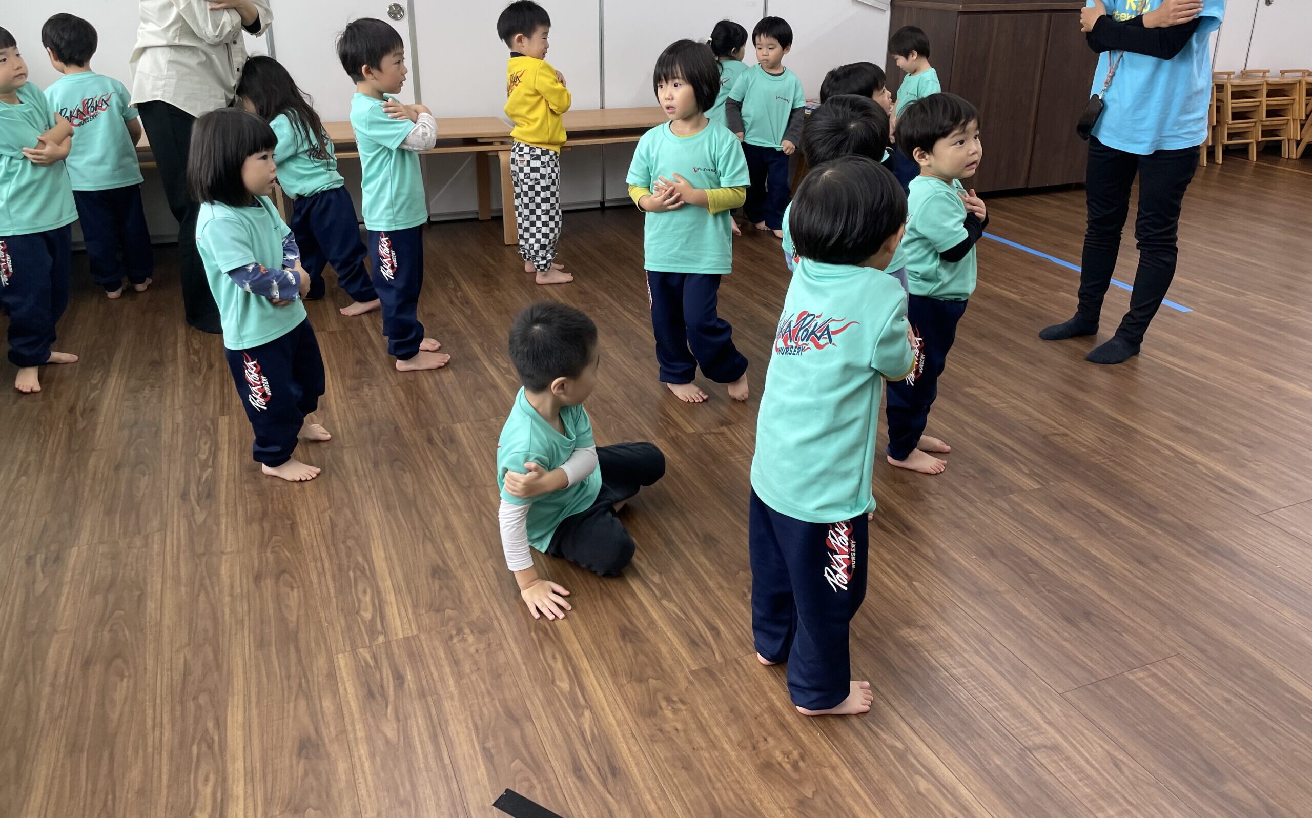 中には少し照れながらも手拍子をしたり、隣の子の動きをまねして踊ってみたりと、それぞれのペースでダンスを楽しむ姿も見られました。先生が「みんなとってもかっこいいね!」と声をかけると、「もう一回やりたい!」と元気な返事が返ってきました。