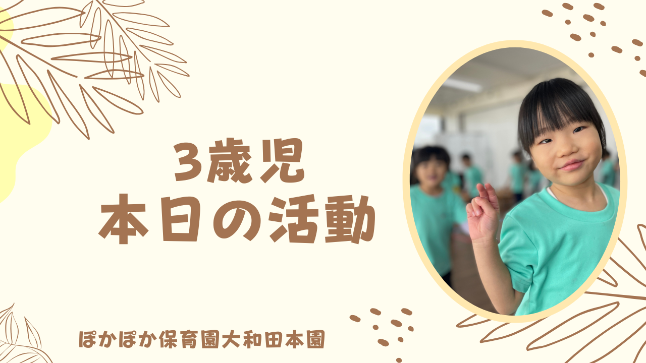 遊びの中で集中力やリズム感、協調性を伸ばしながら、日々大きく成長している三歳児さんです。