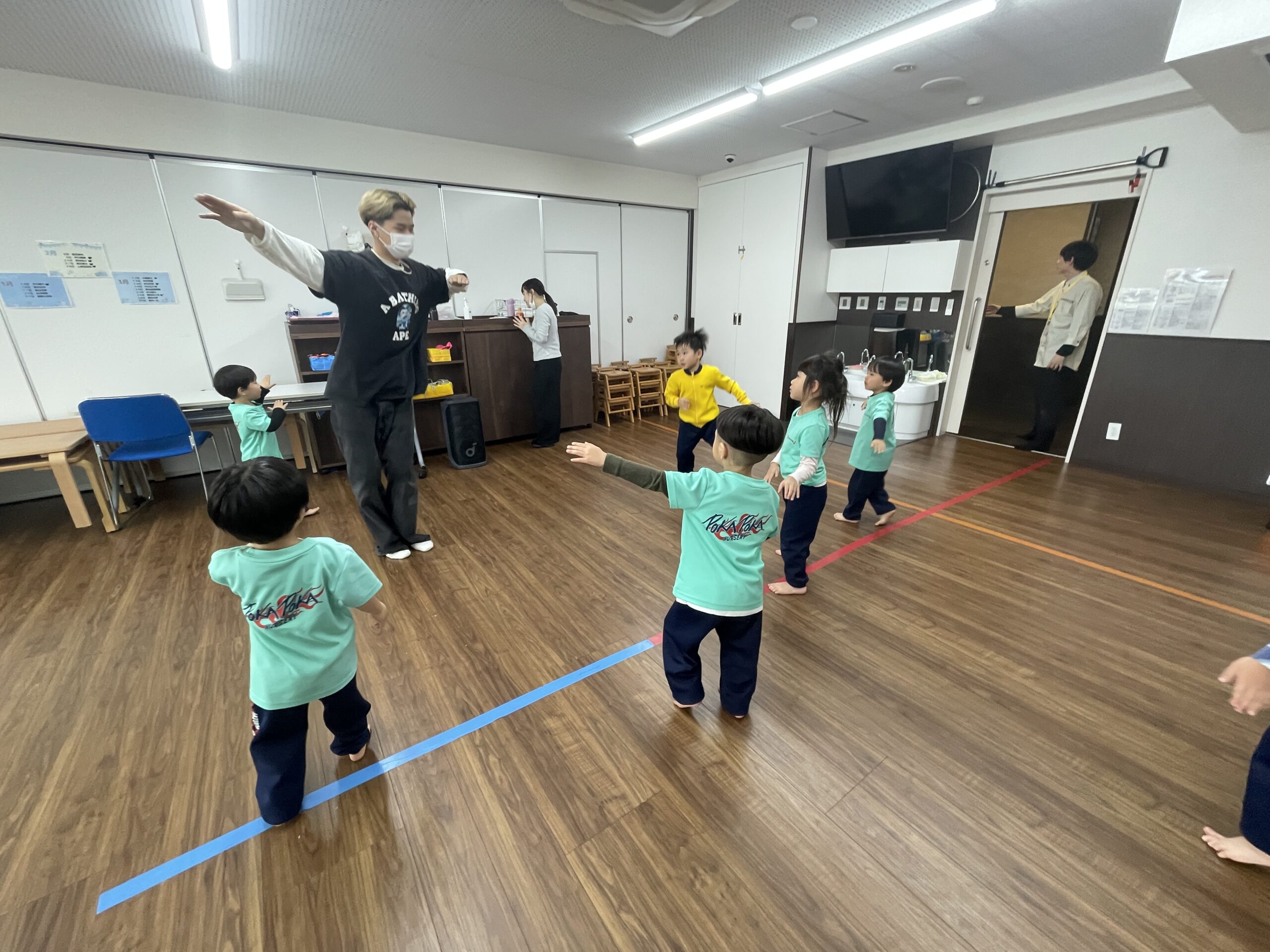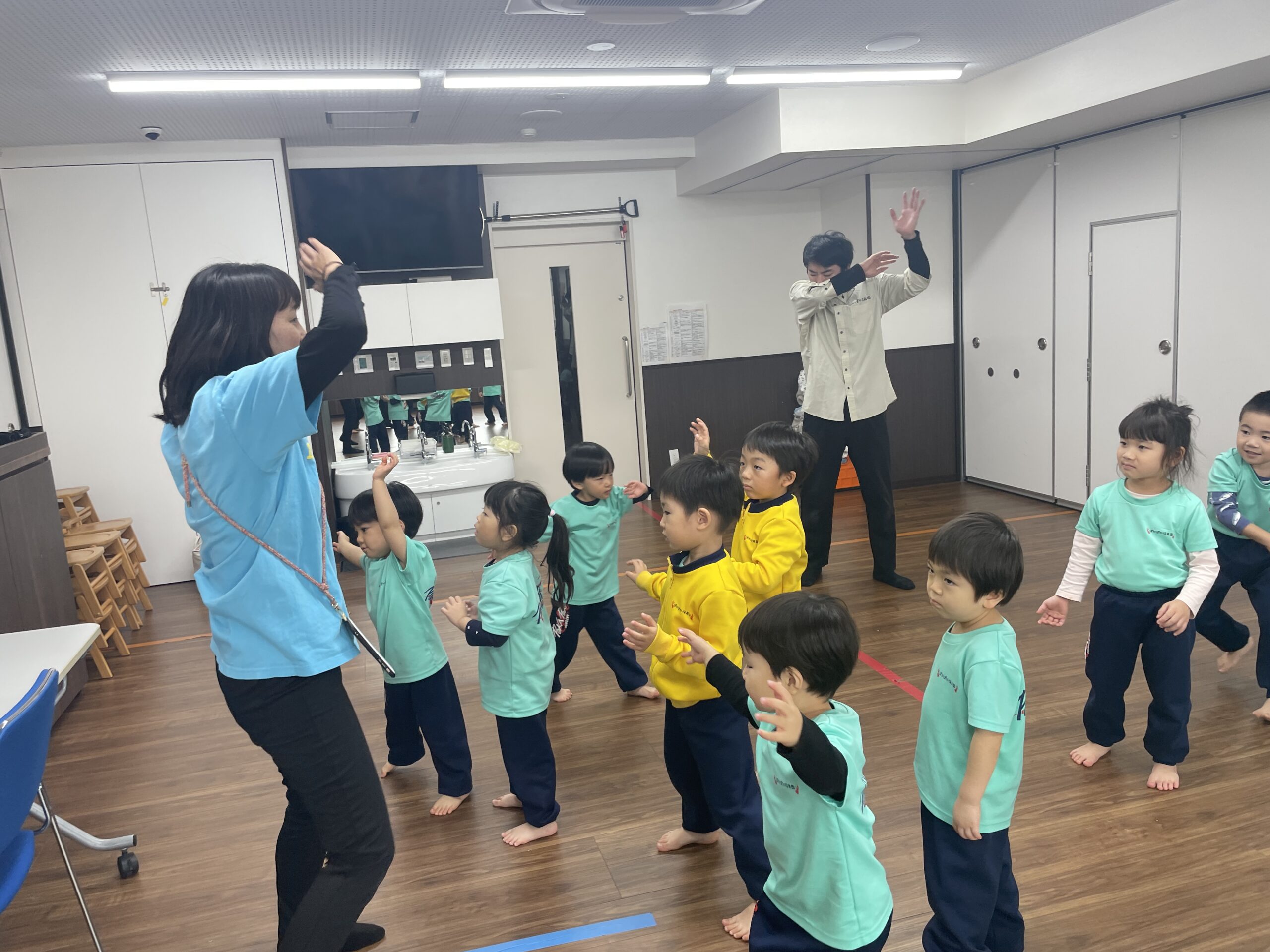 先生が「おててを大きく広げて〜!」