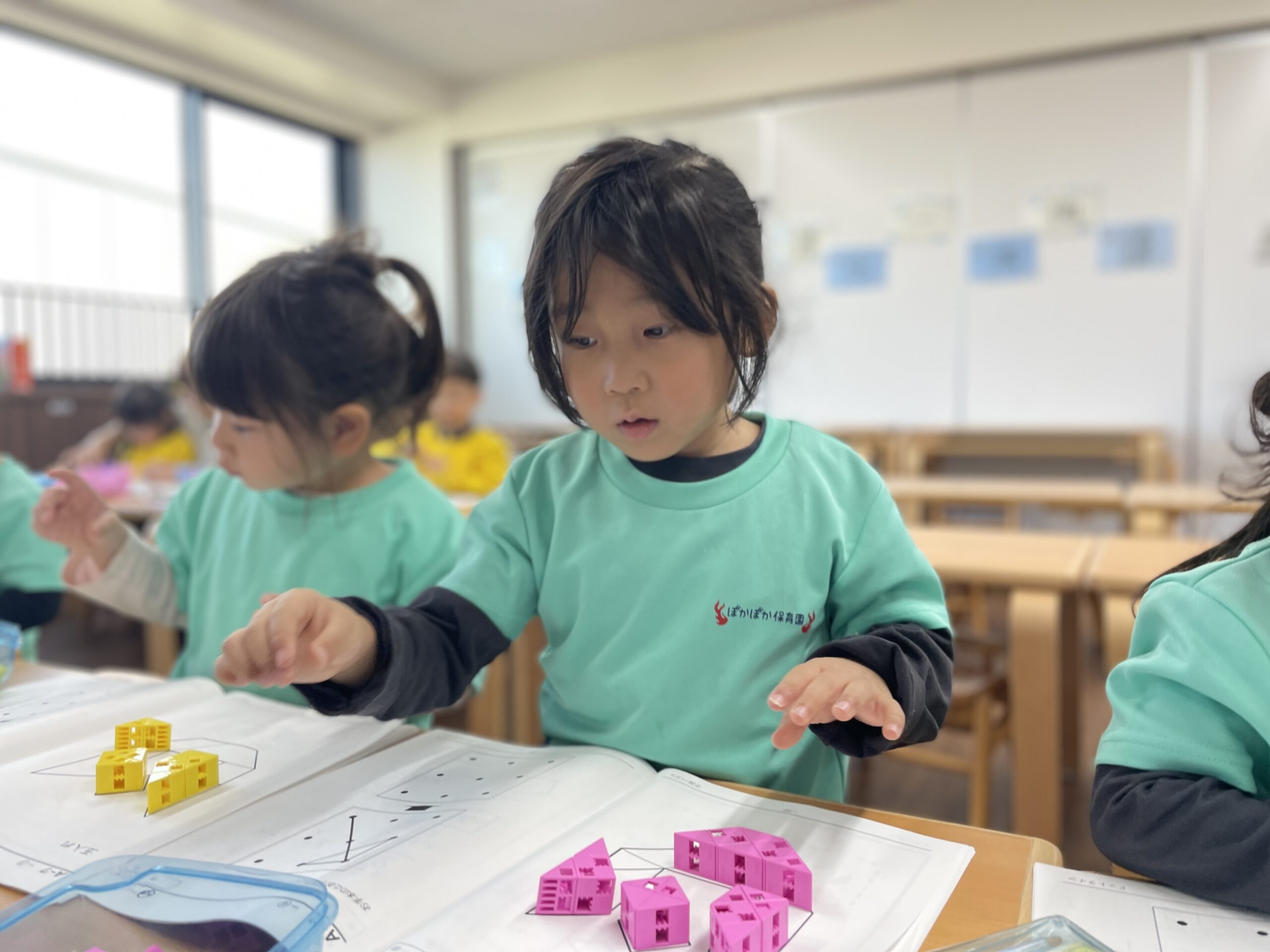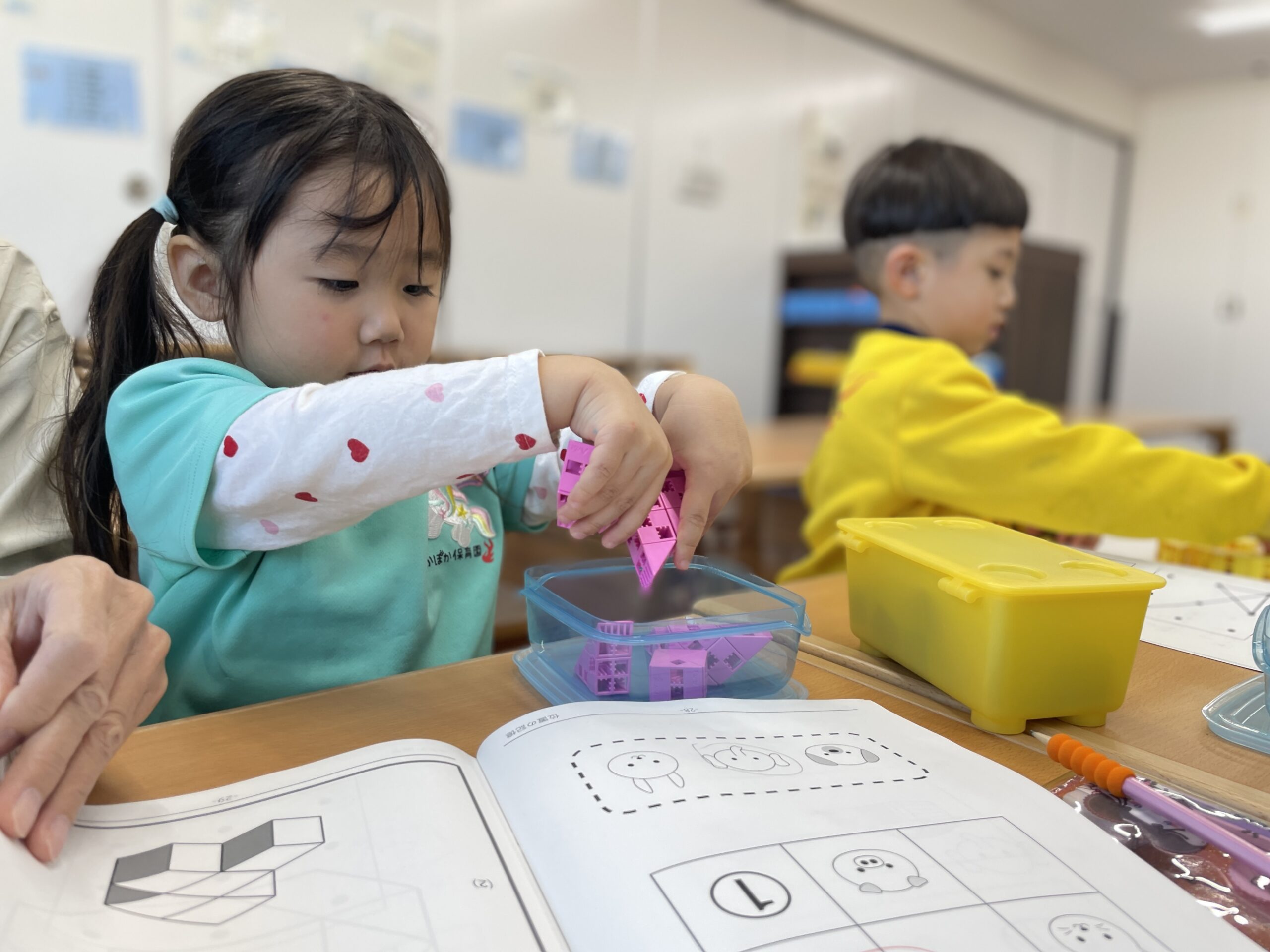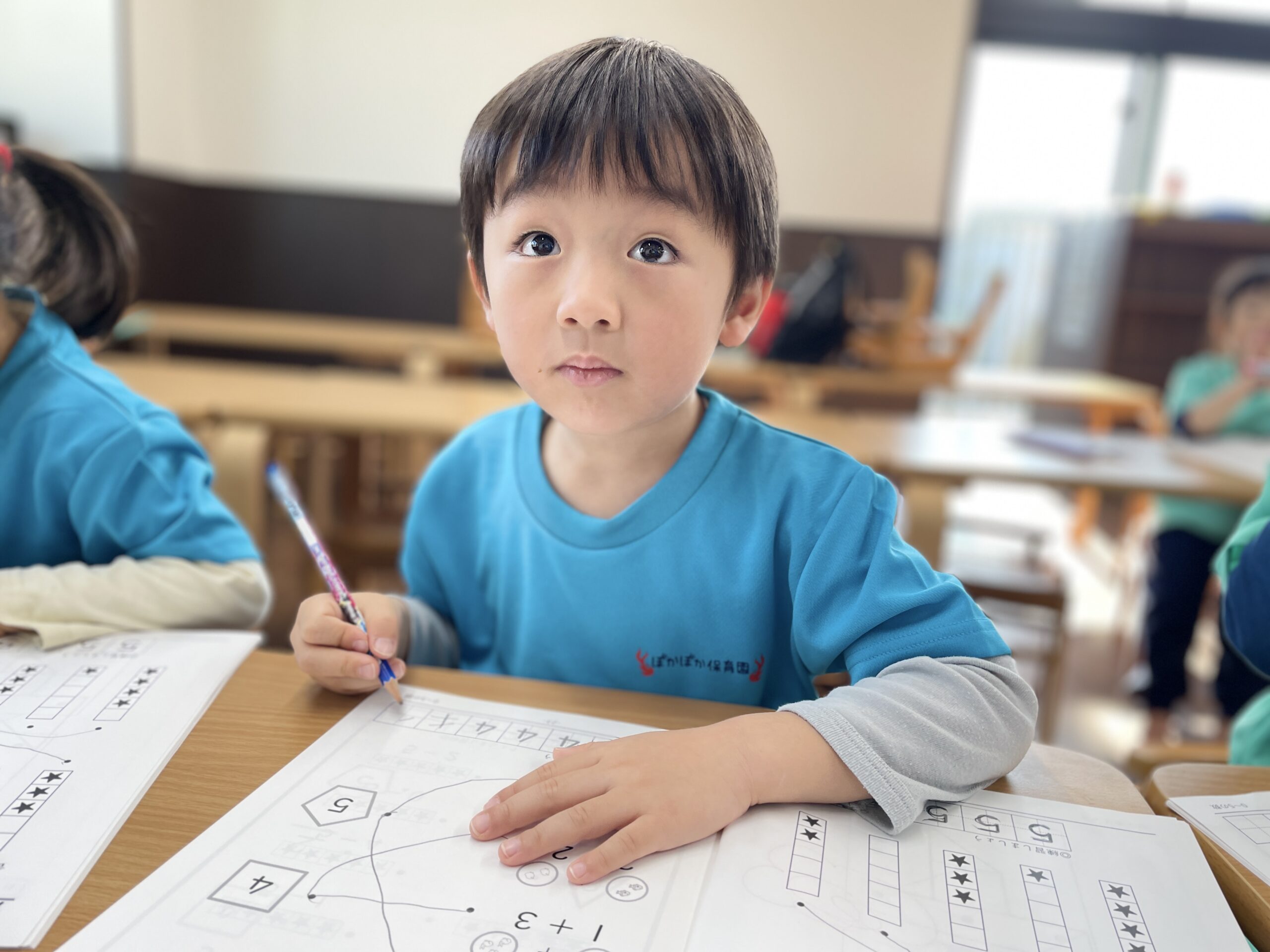 親指、人差し指、中指の三本で、しっかり鉛筆を支え、スムーズに線を引けるようになった子も多く、その成長には目を見張るものがあります。
