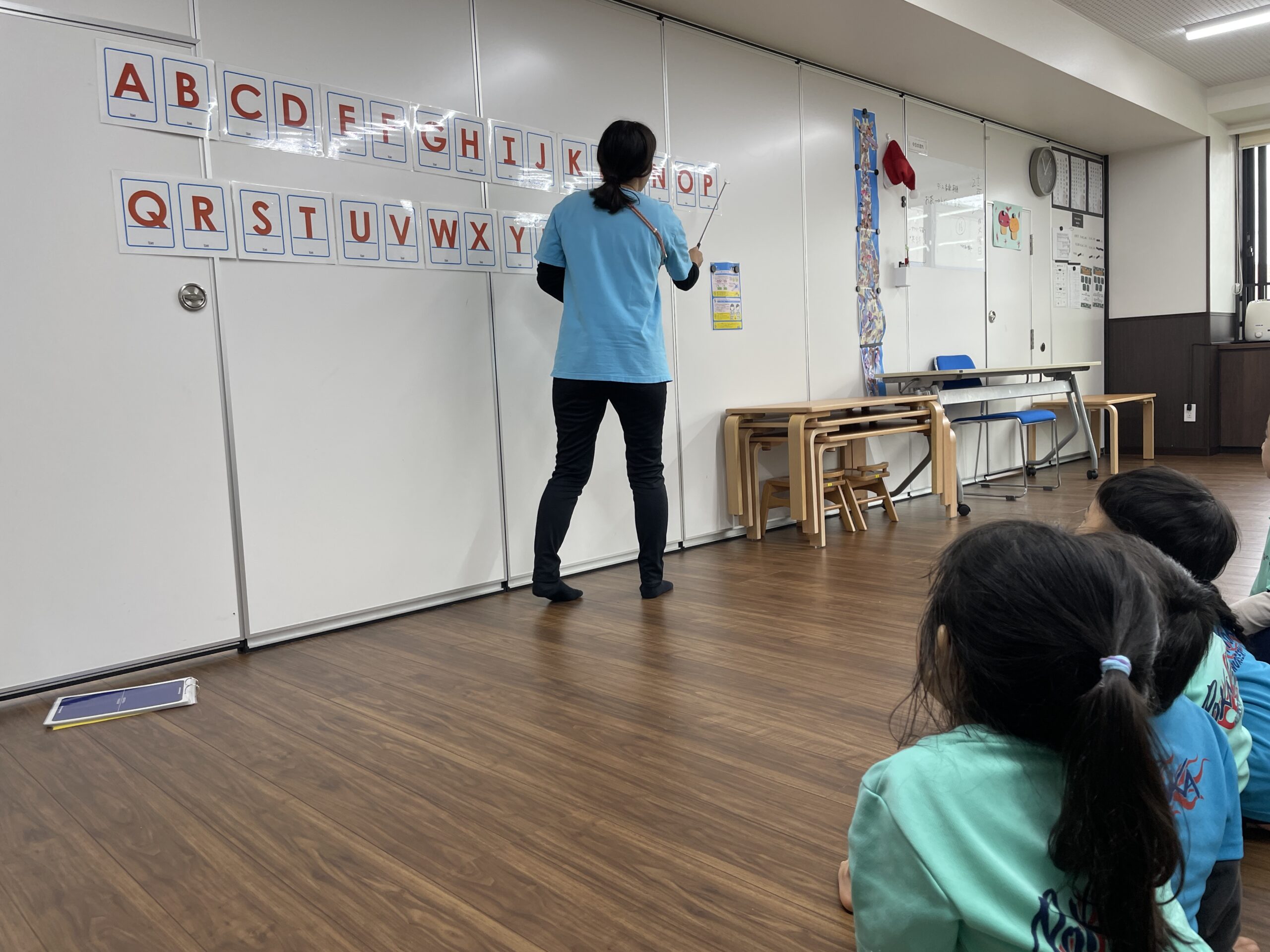 次は英語cの時間。こちらも12月らしくクリスマスの歌が登場しました。「サンタの歌?」「英語のやつ好き!」と子どもの目がキラッと輝きました。