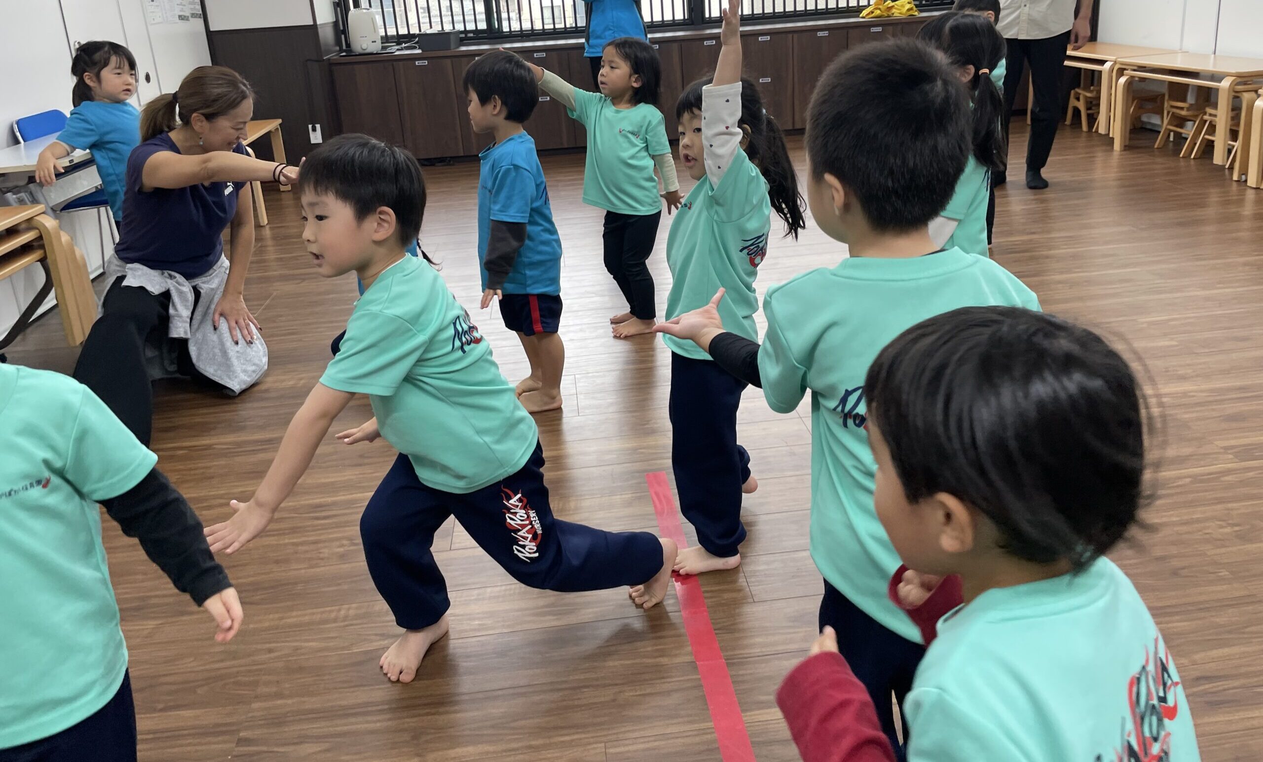 続いてダンスの時間。今日はしなこのリクエストが多く『しなこメドレー』になりました。しなこやるよと先生が言うと、「きたー!!」と大喜びでジャンプ!子ども同士で「手つなごう」「こっちの列おいでよ」と声をかけ合う姿もあり、人数が少ないからこそ、さらに仲の良さを感じられるあたたかい時間になりました。