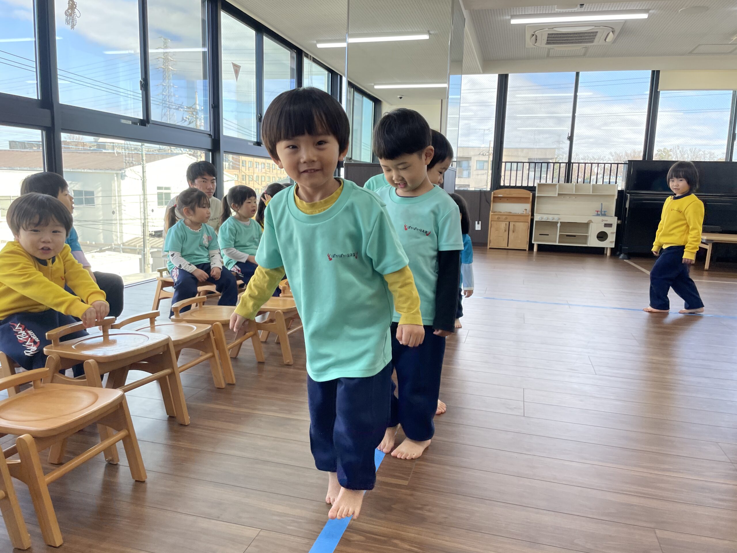 「今日は何するの?」と目を輝かせる子どもに、「音楽から始まるよ」と伝えると、