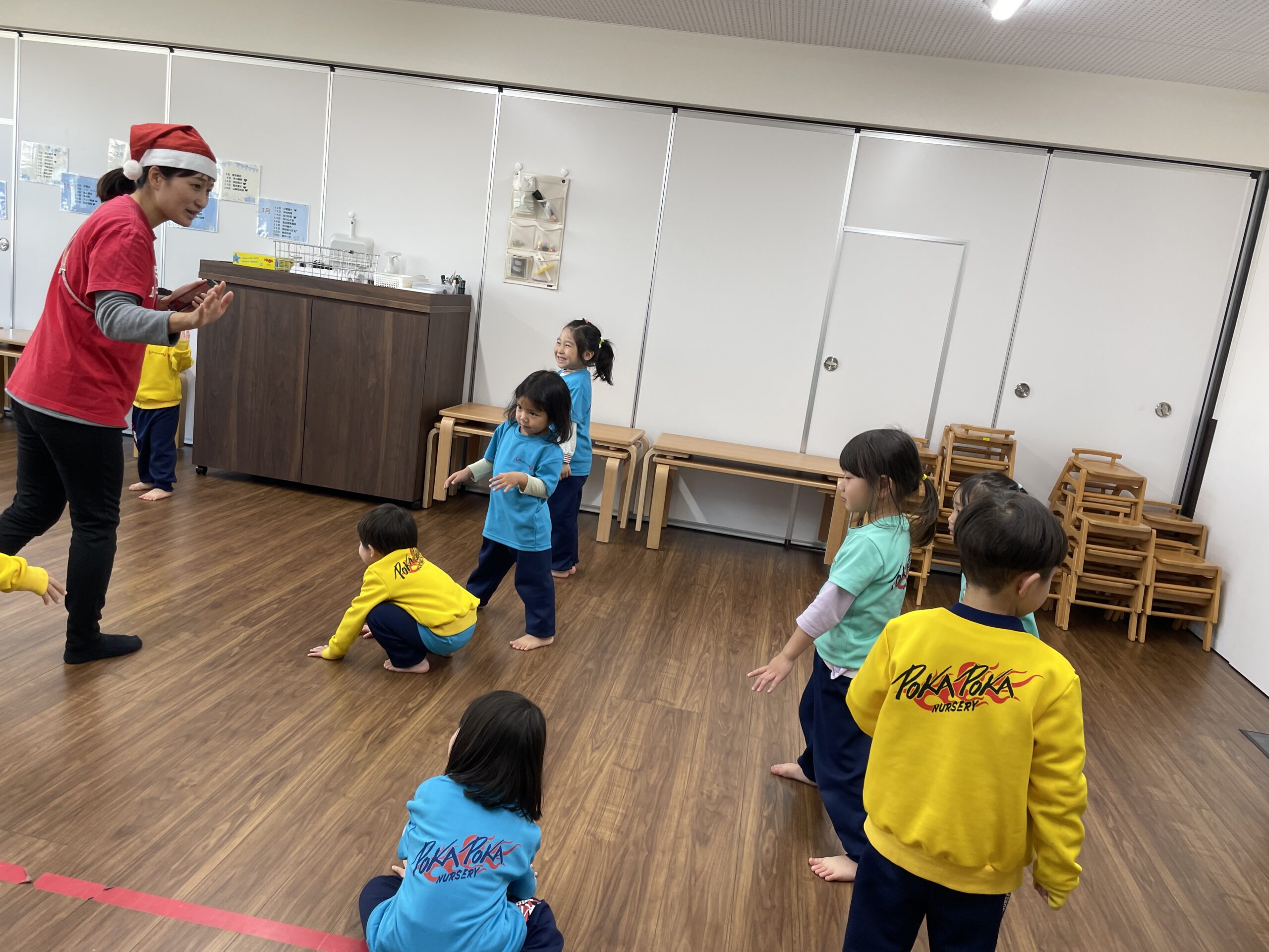 続いて英語cの時間。クリスマスの曲に合わせて体を動かしながら踊ったり、