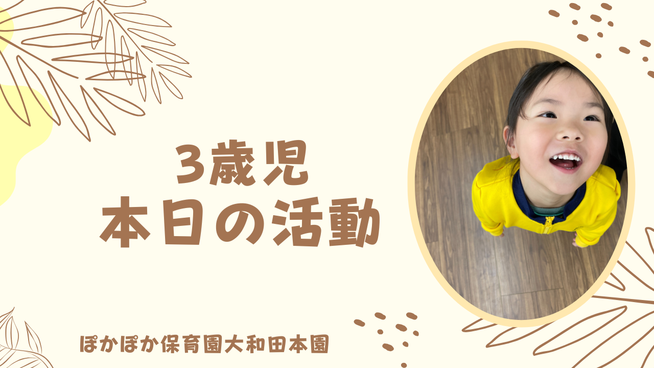 今日は朝から気持ちの良い晴れ空。三歳児クラスは元気に保育室で一日を過ごしました。