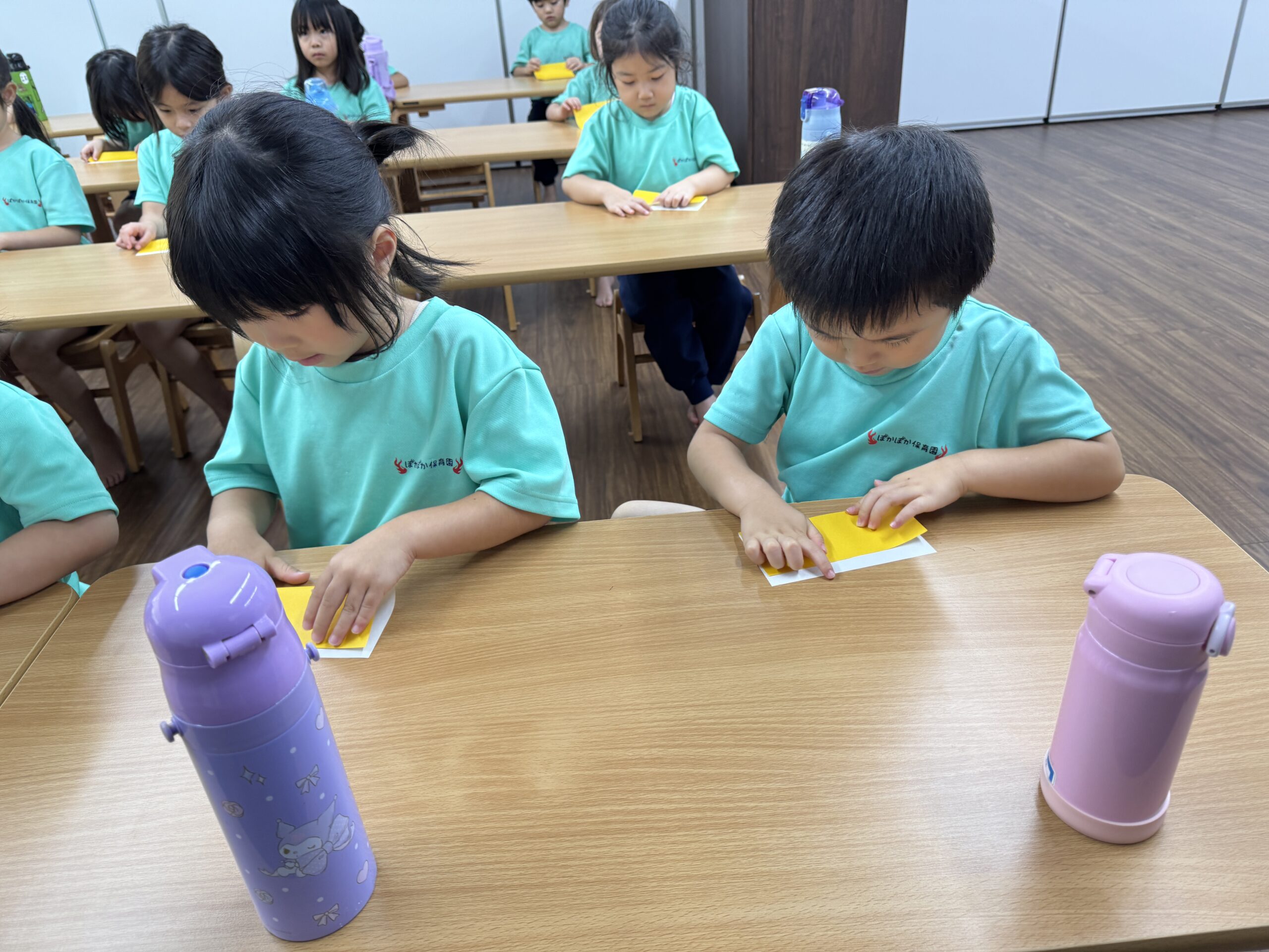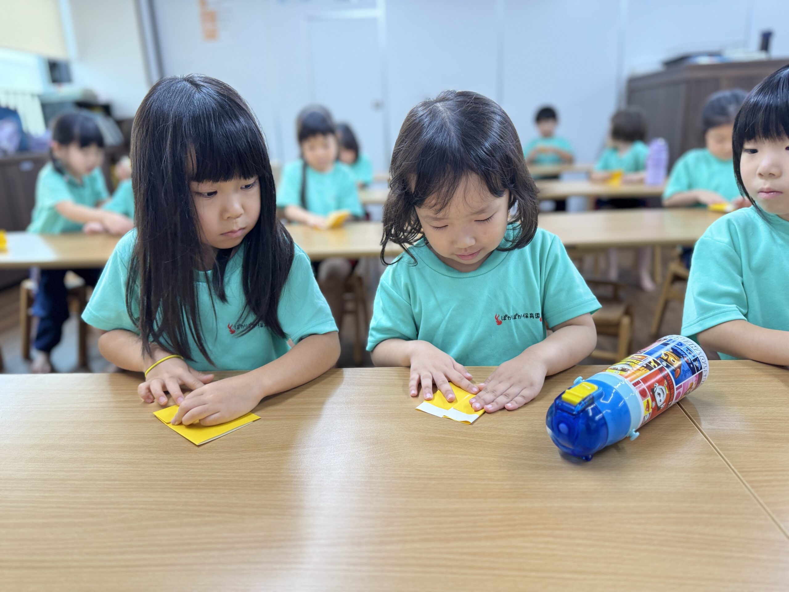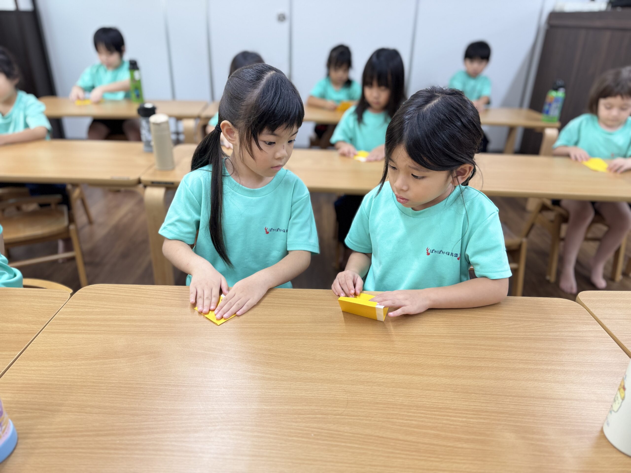 丁寧に折りを重ねる子もいれば、「ここを丸くしたい」と自分なりの工夫をする子も。