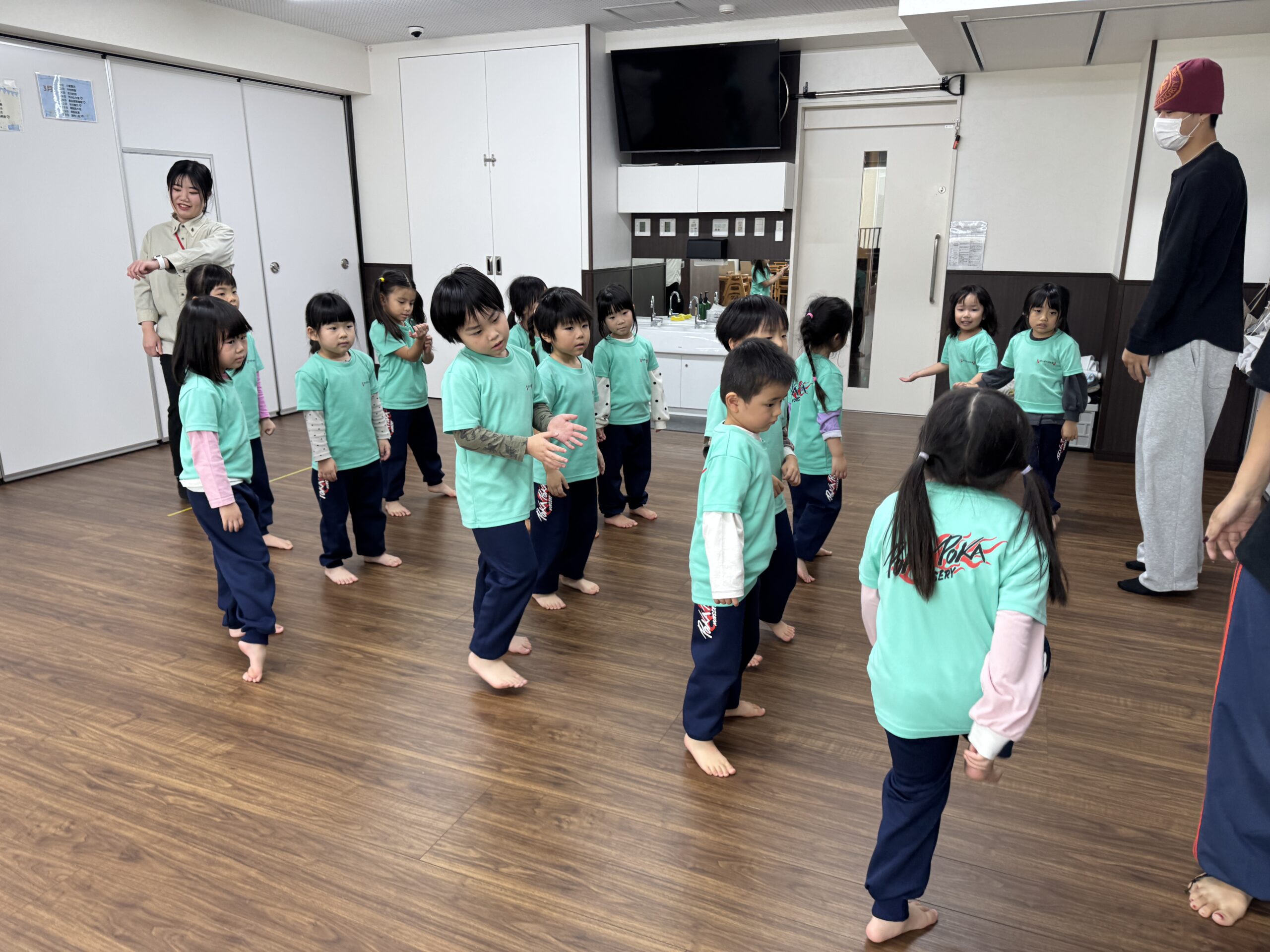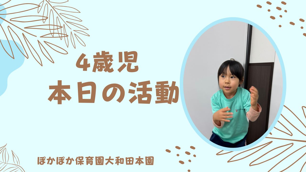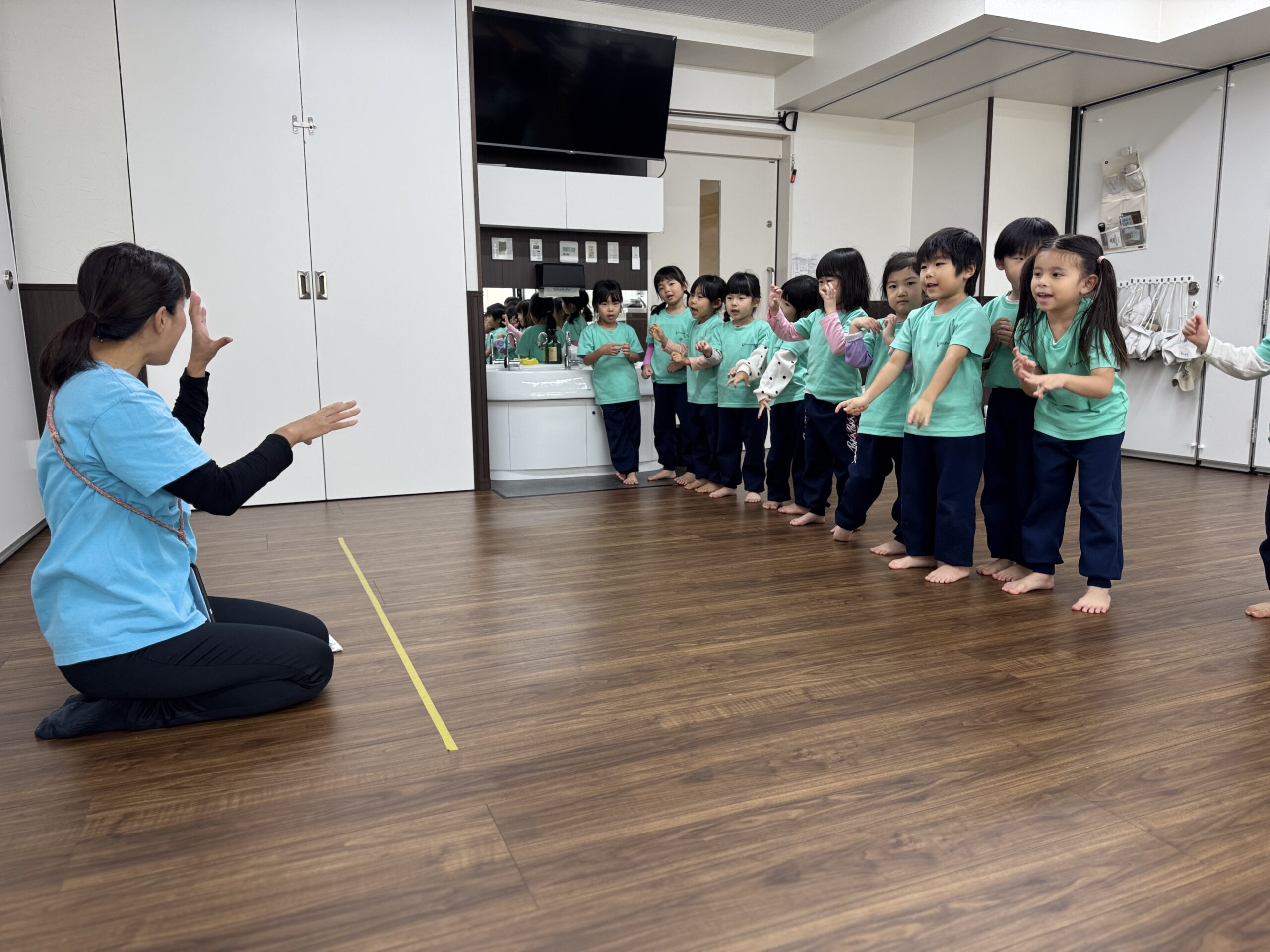 今日は、ぽかぽか保育園の4歳児さんは英語・ダンス・音楽と