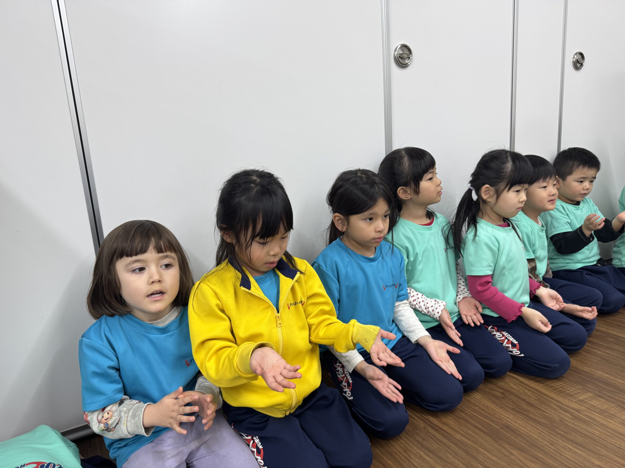 「今日は英語だよ」と伝えると、「やったー!」と声が上がり、椅子に座る背中もいつもよりピンと伸びていたよ。