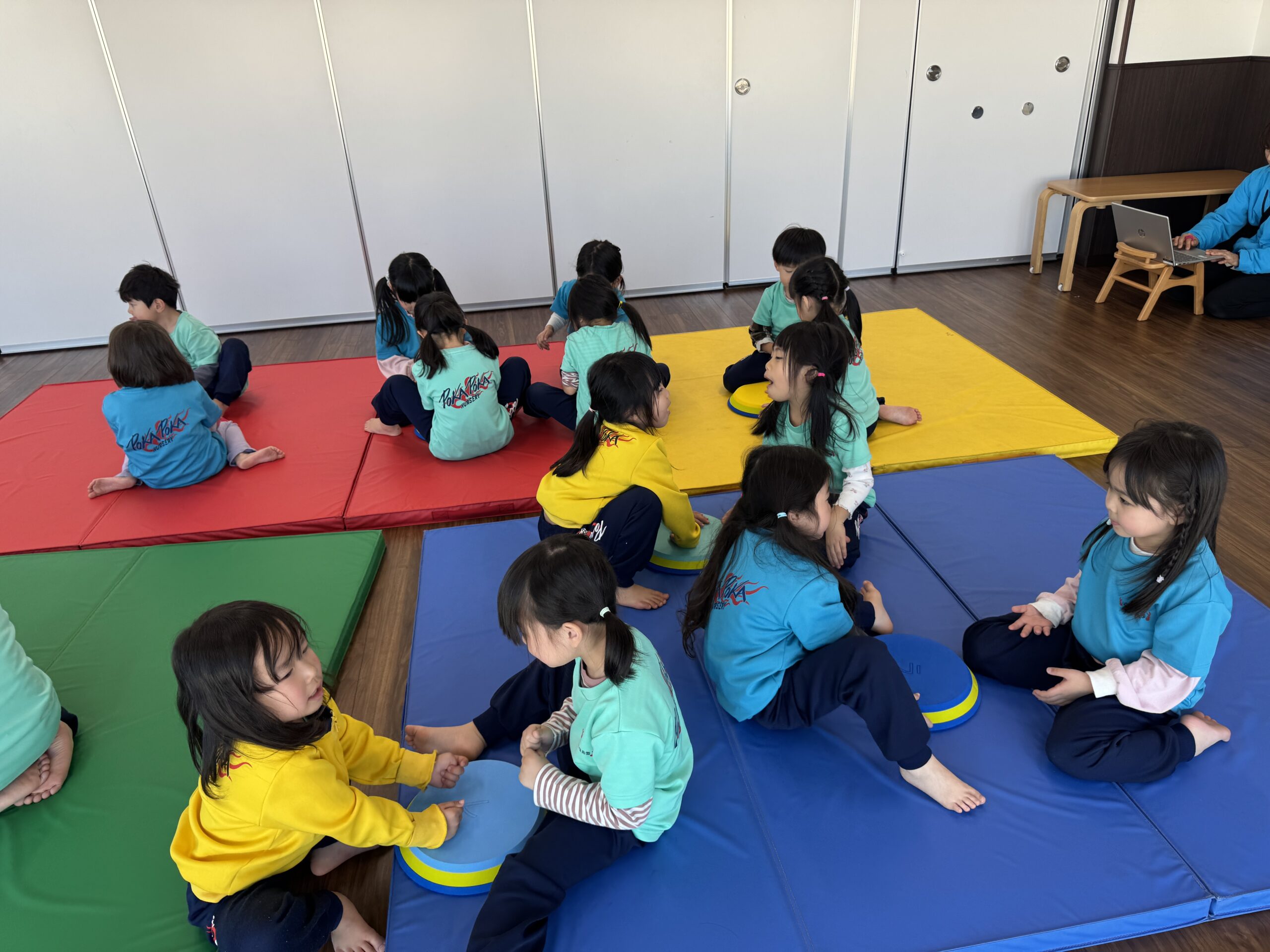 ぽかぽか保育園では、一人ひとりの反応を大切にしながら、個別対応保育を意識したカリキュラムを行っているよ。