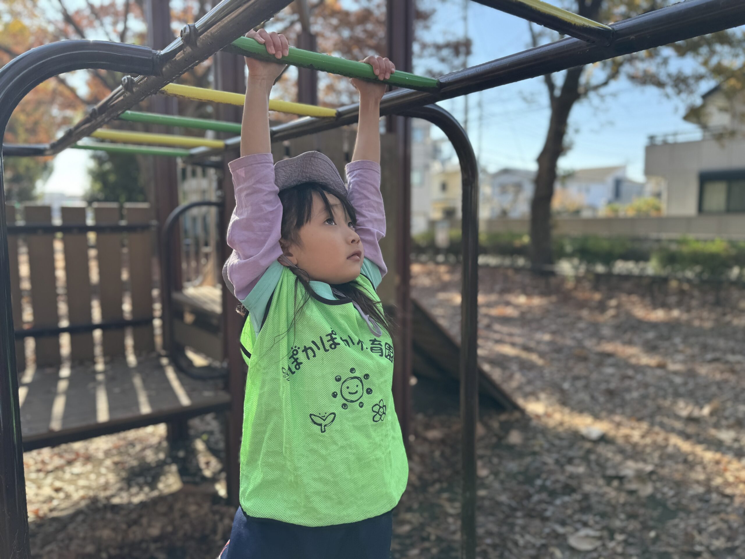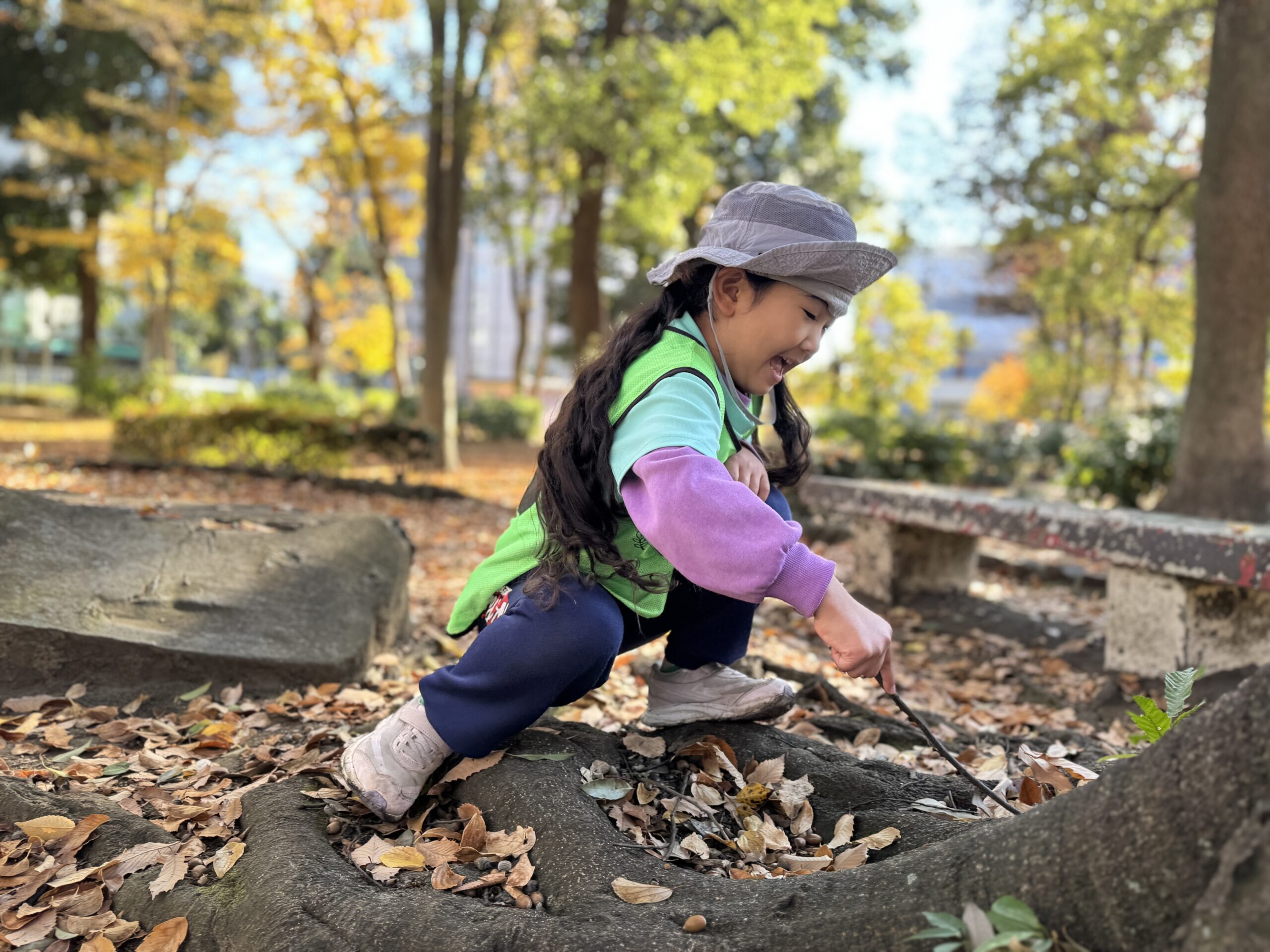 遊具で遊んだり、落ち葉を集めて