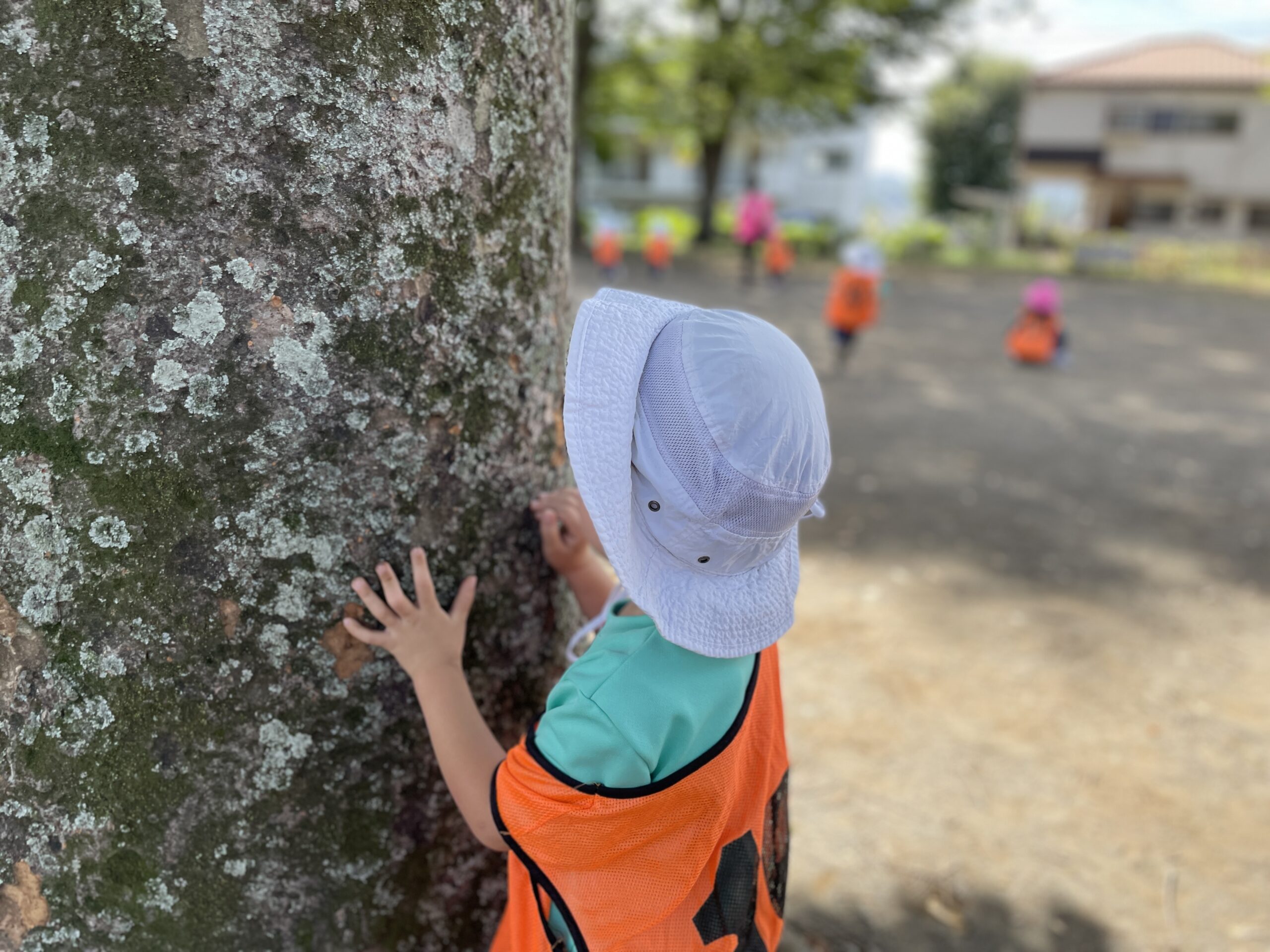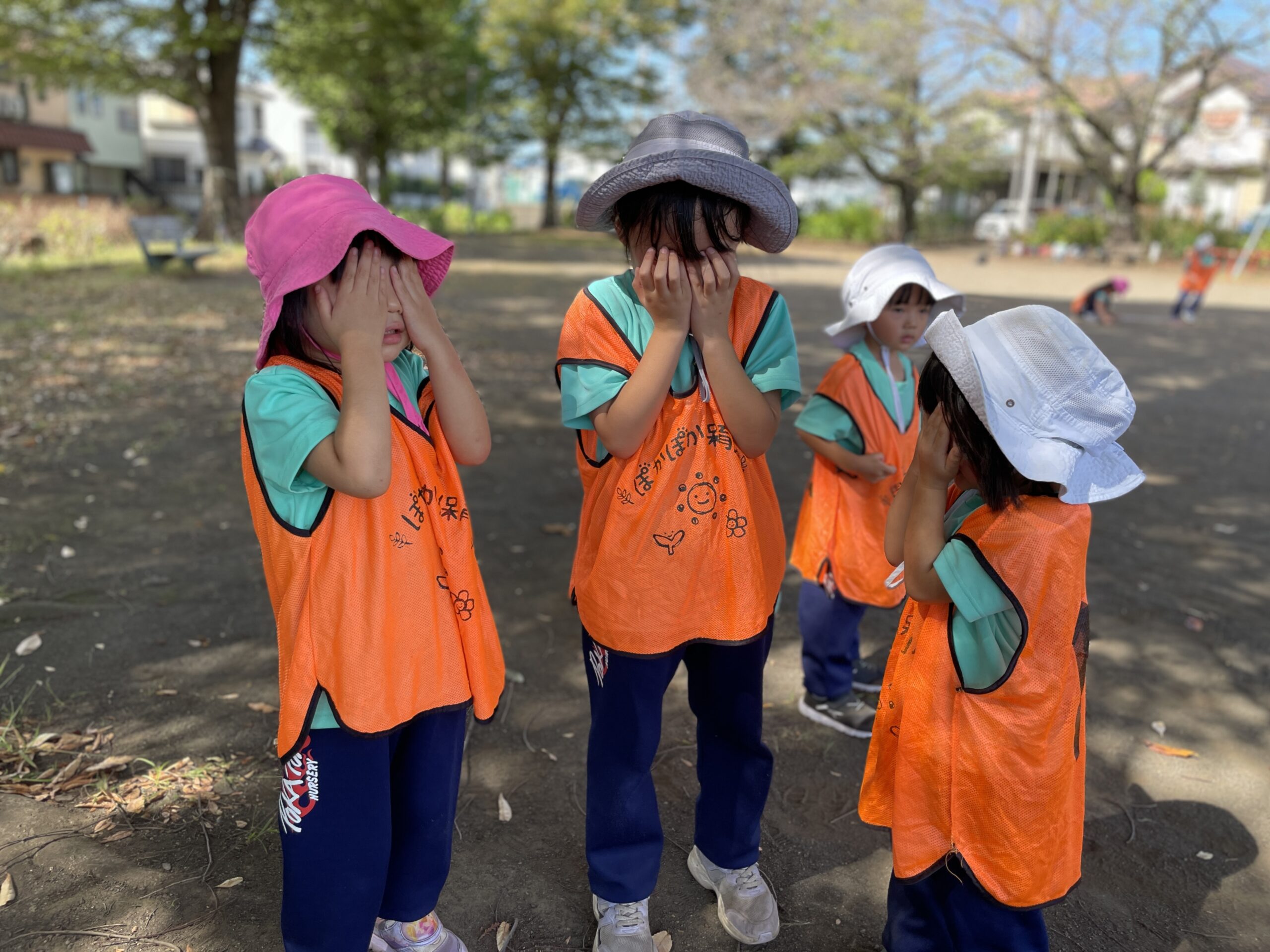 3歳児の子どもたちも、年上のお友だちの真似をして隠れたり、見つけたりと、遊びのルールを自然と学んでいました。