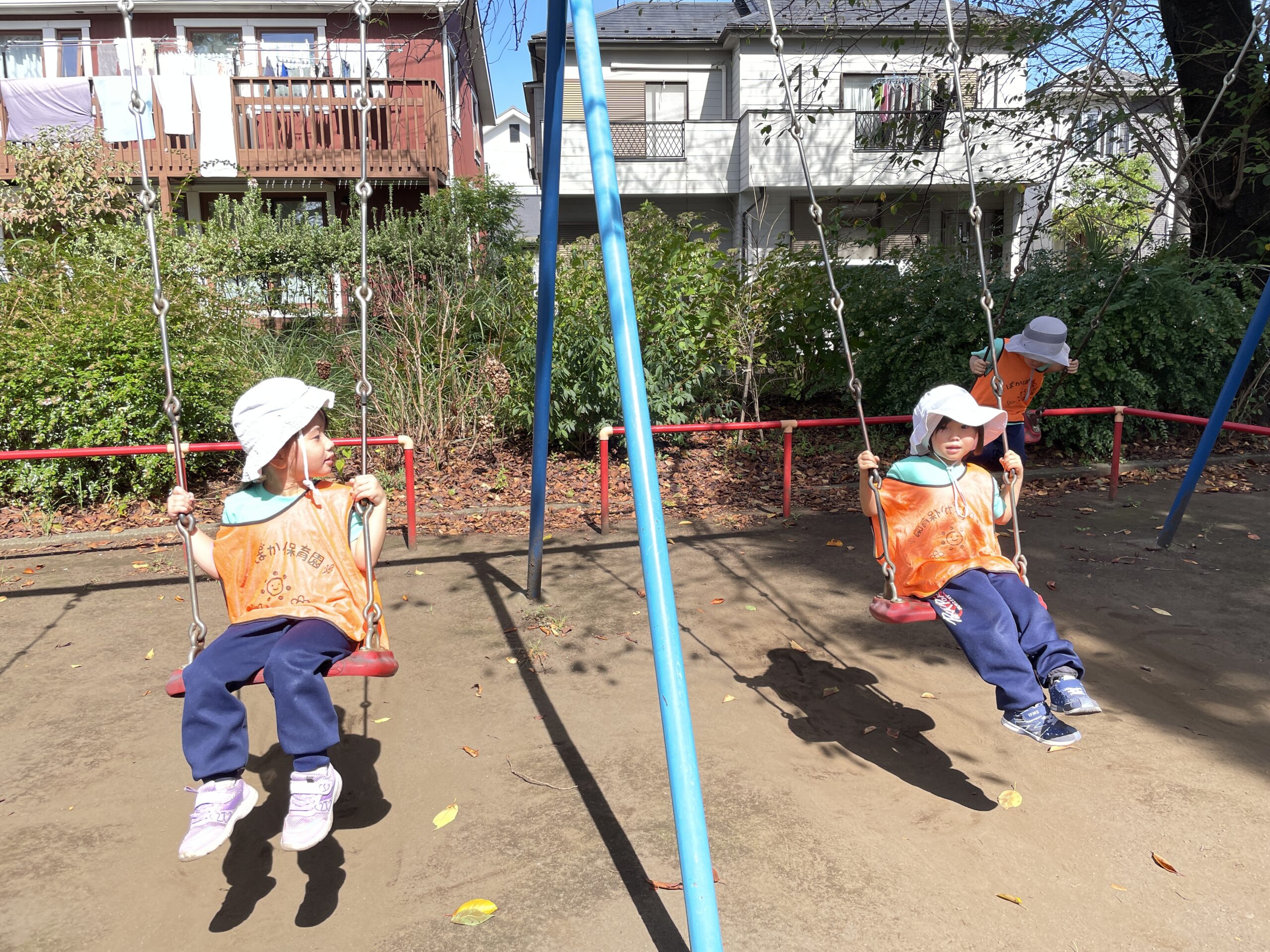 本日、ジョイチームの子どもたちは、秋晴れの公園で、異年齢ならではの交流を楽しみながら、ブランコ、かくれんぼ、かけっこと、様々な遊びに挑戦しました!また明日も遊ぼうね!