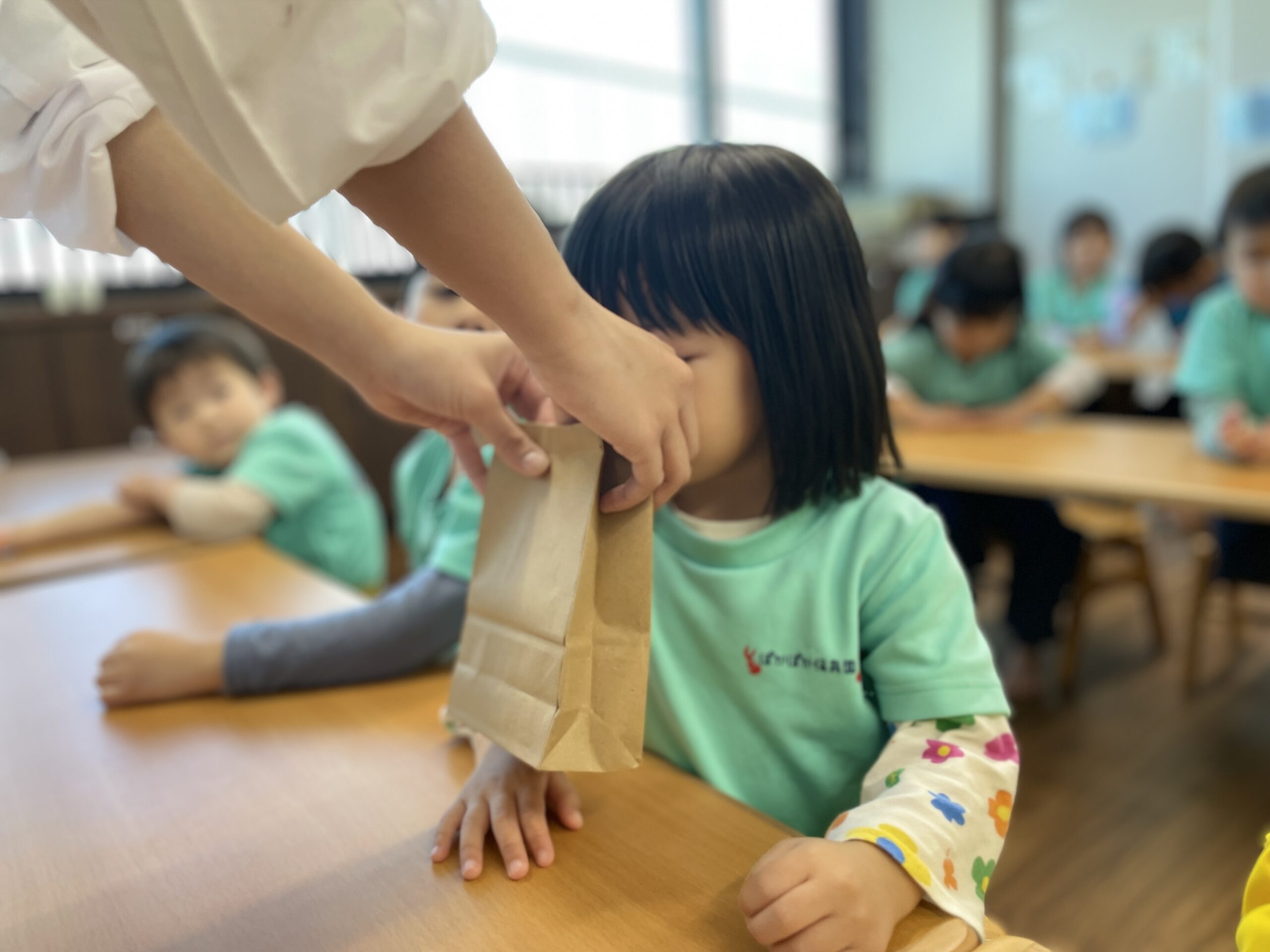 次は紙袋に入った野菜を匂いを嗅いで当ててみようのコーナー!