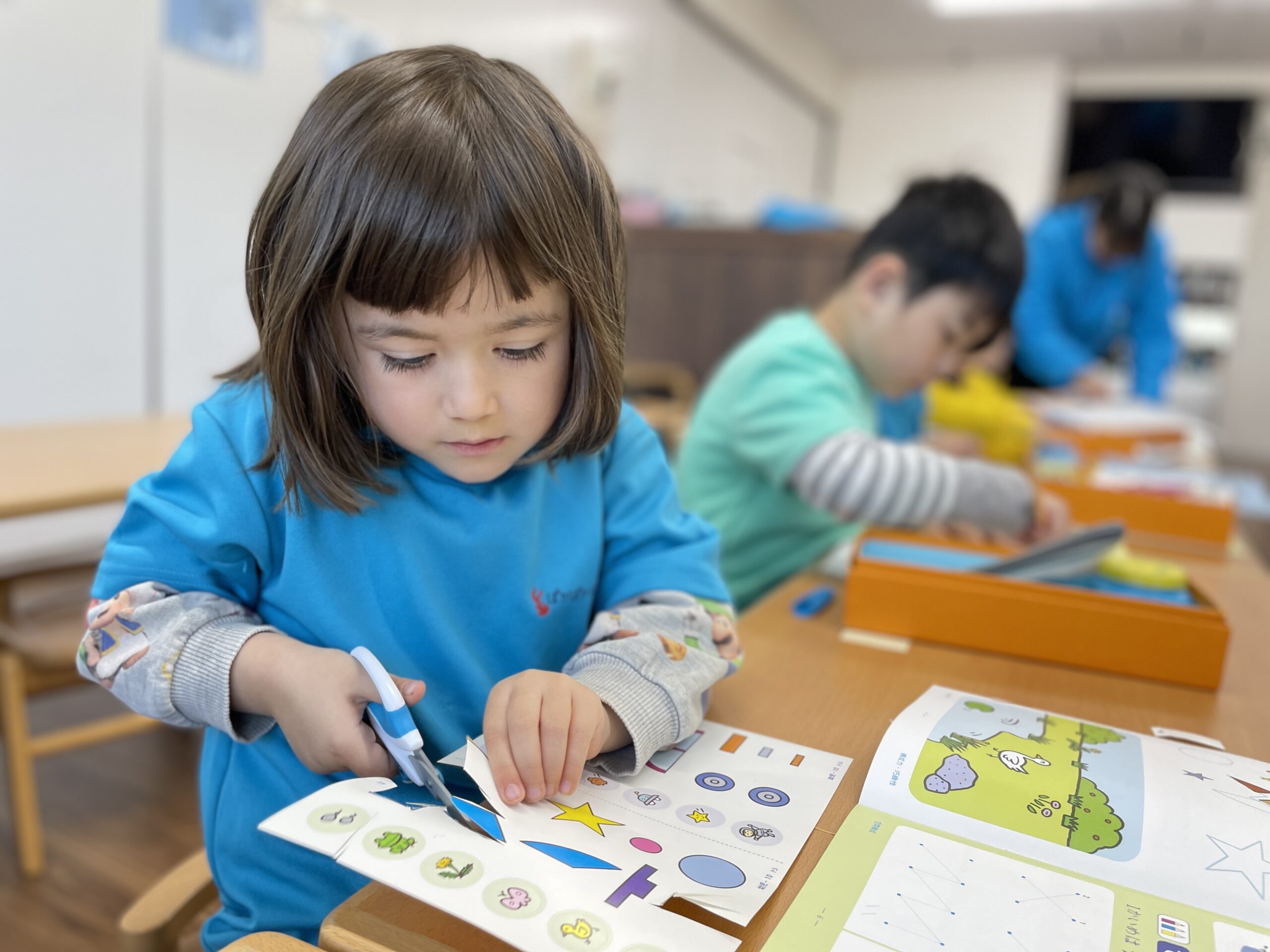 今日は朝の会をしてから、お部屋でワークの活動からスタート!