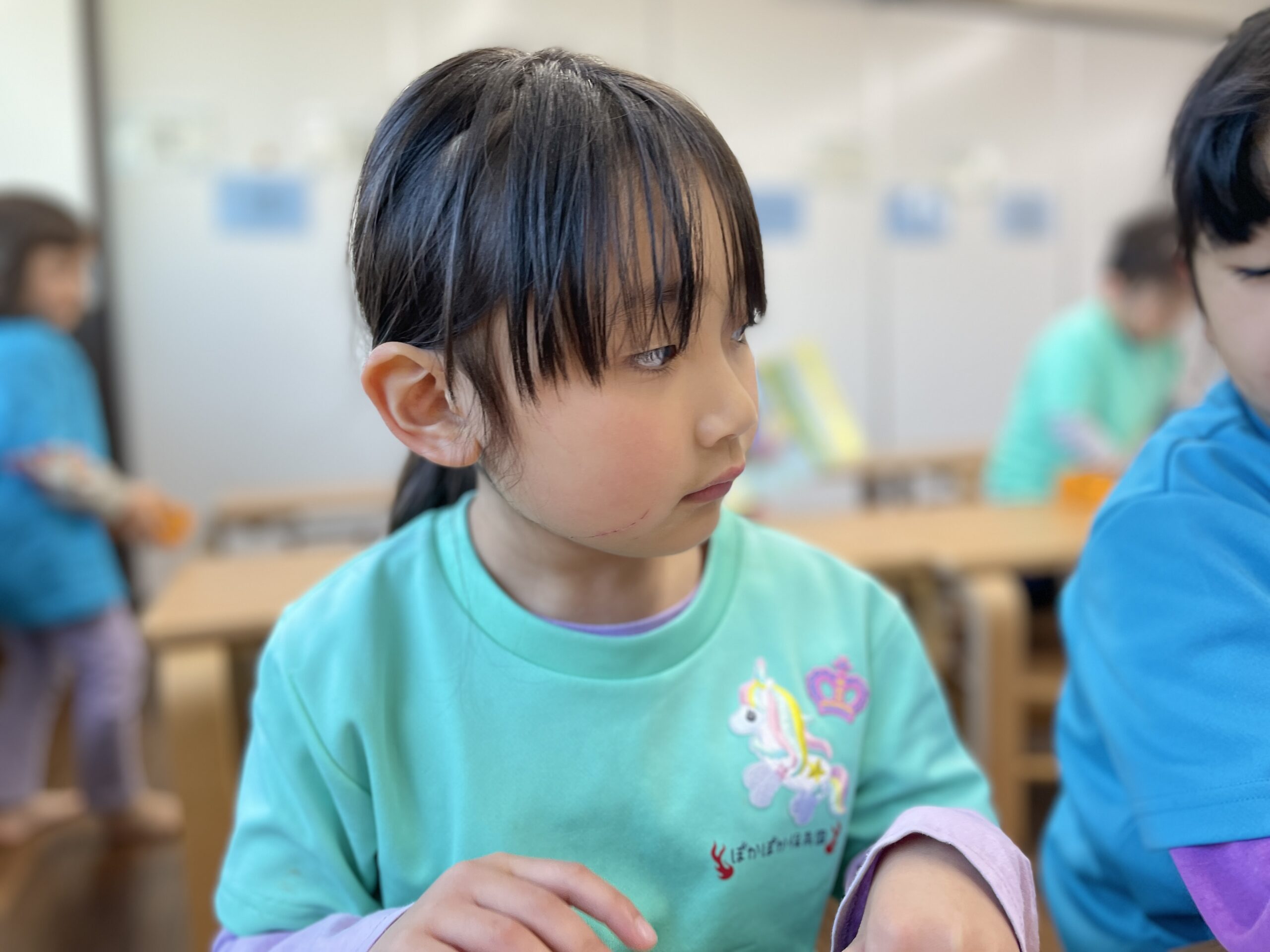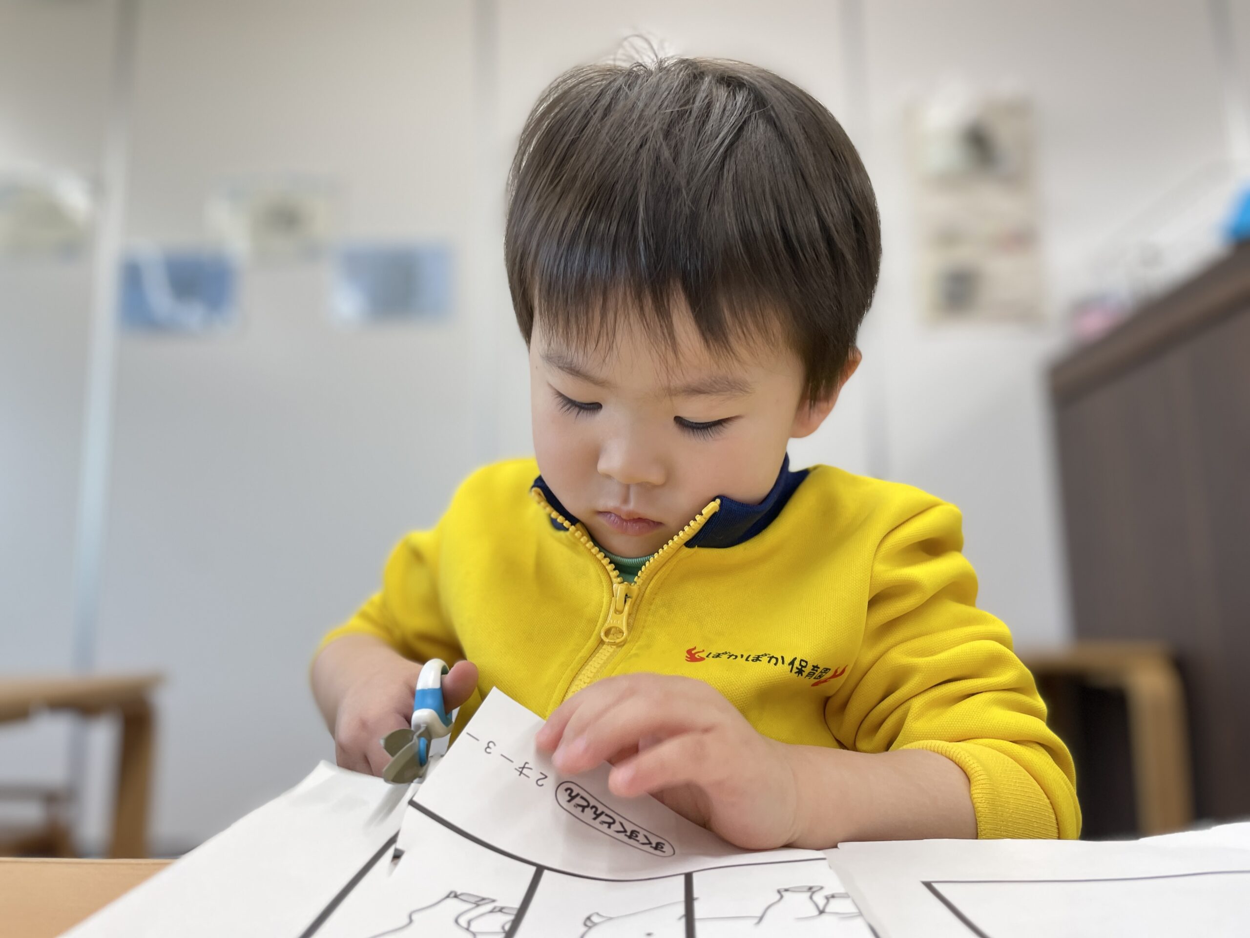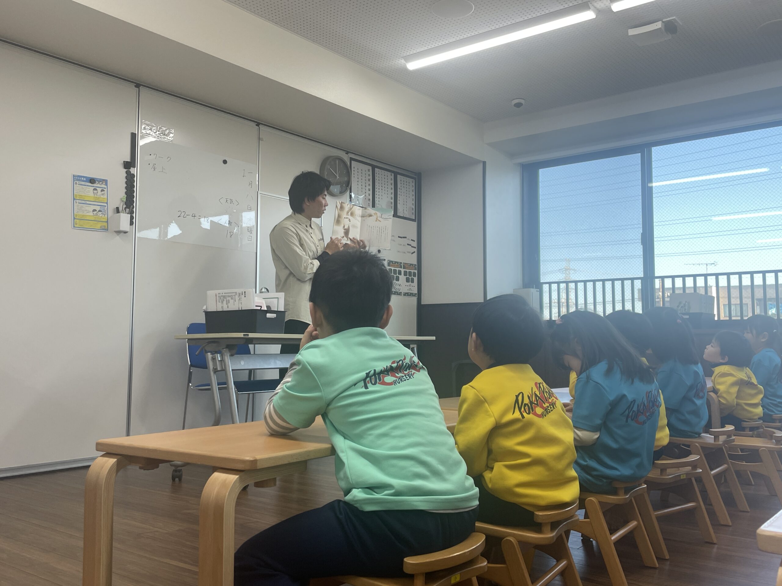今日は朝の会をしてから、お部屋でワークの活動からスタート!