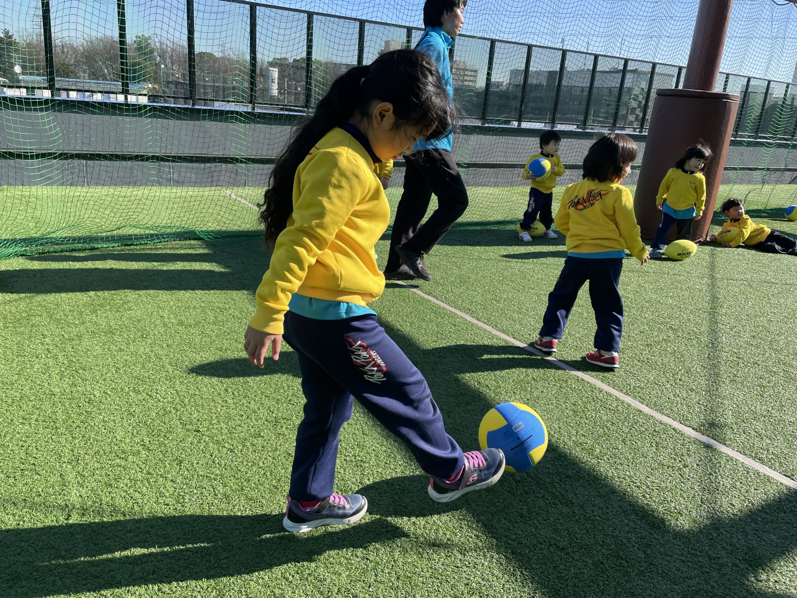 子どもたちは「わーい!」「サッカーしよー!」と歓声を上げ、