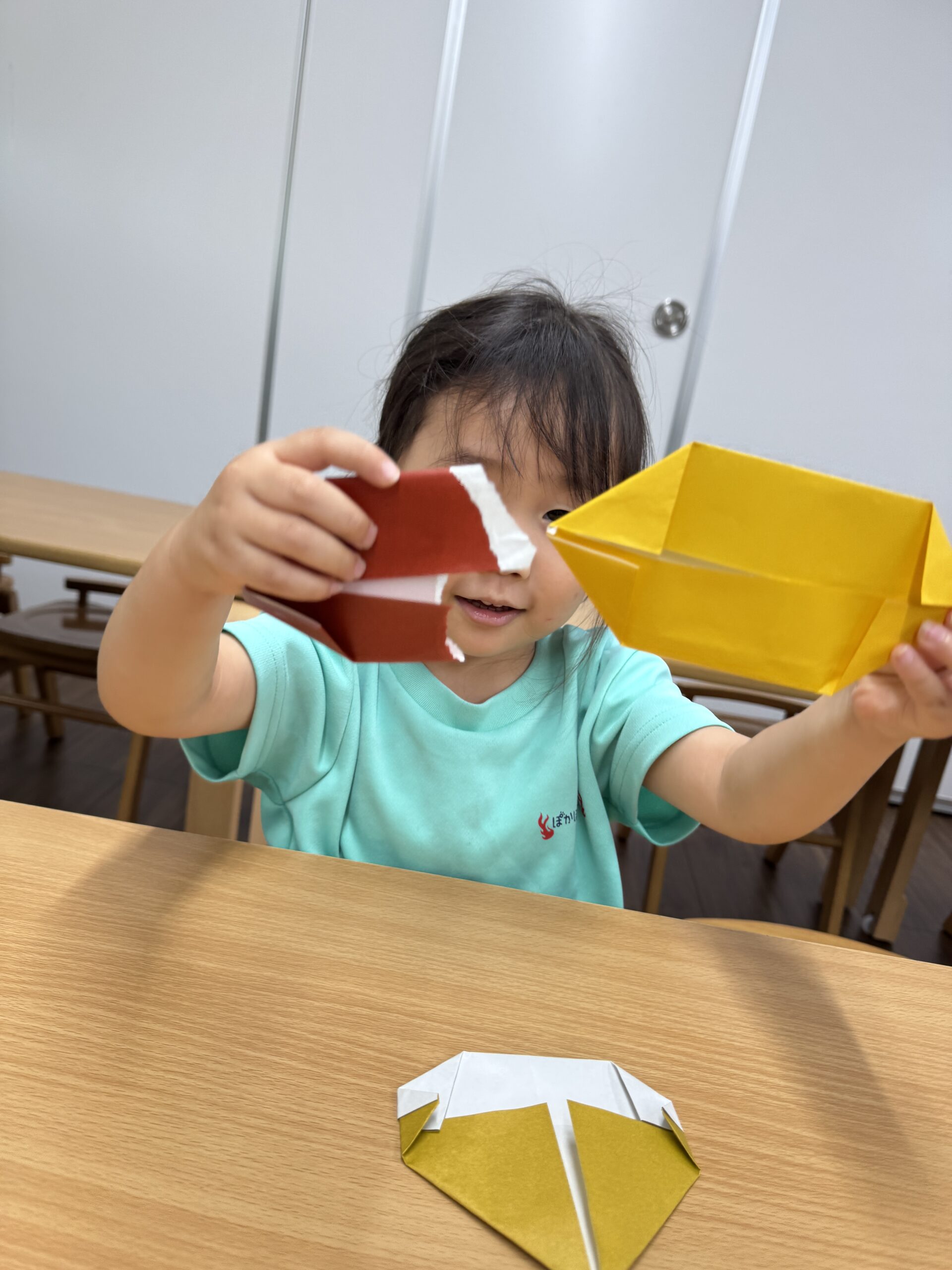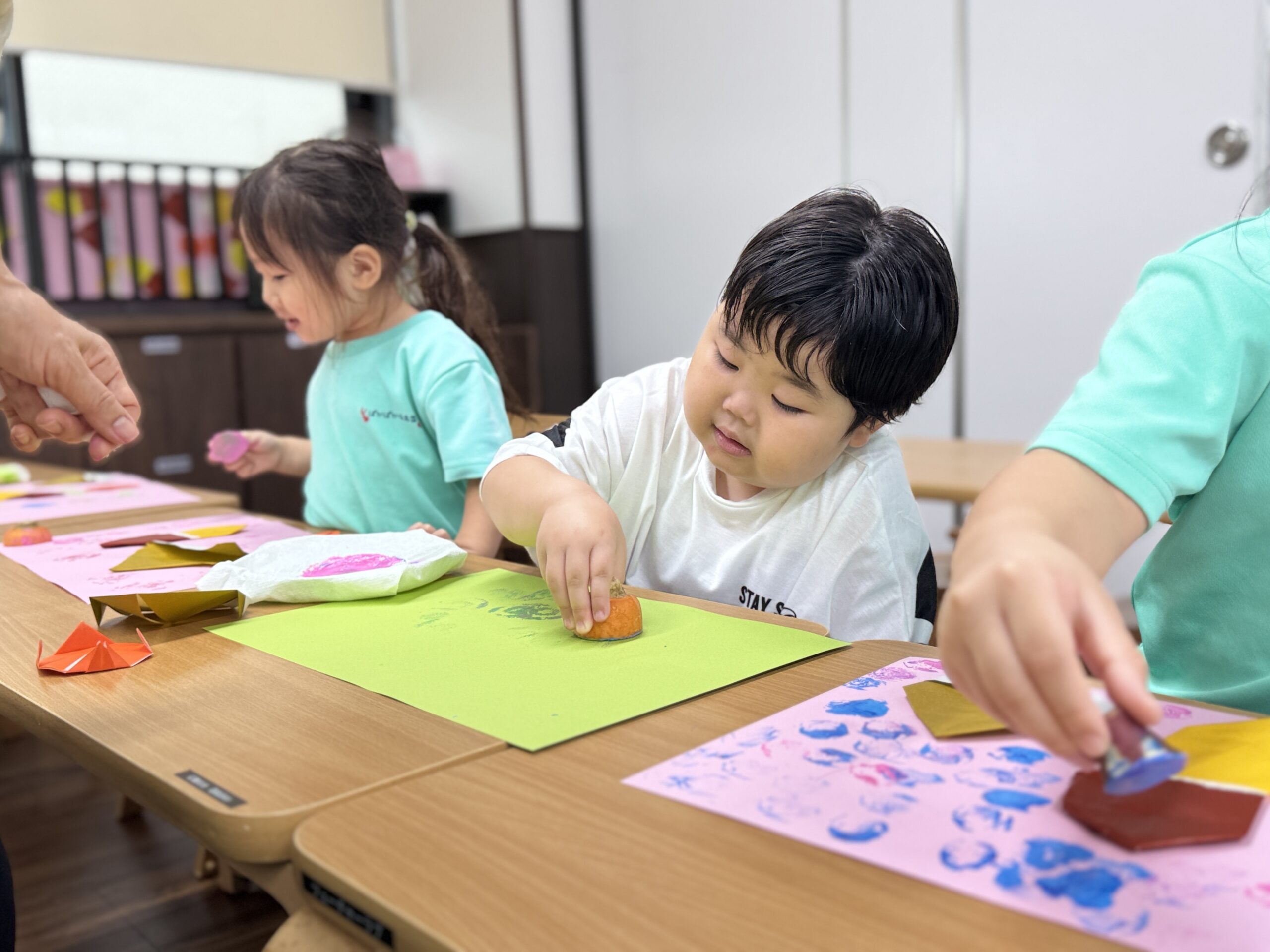 今日の活動では、ただ「折り紙を折る」「スタンプを押す」だけでなく、