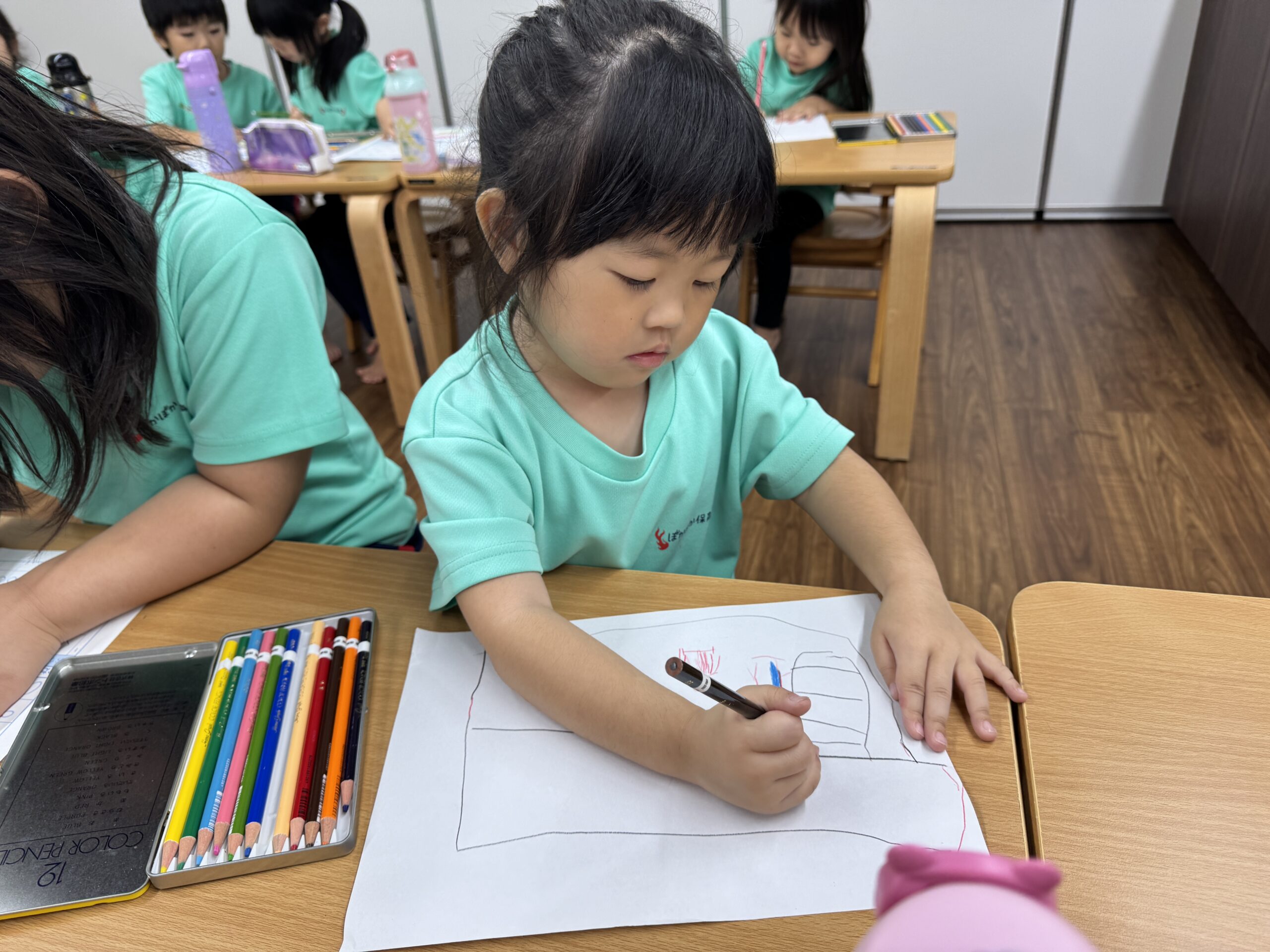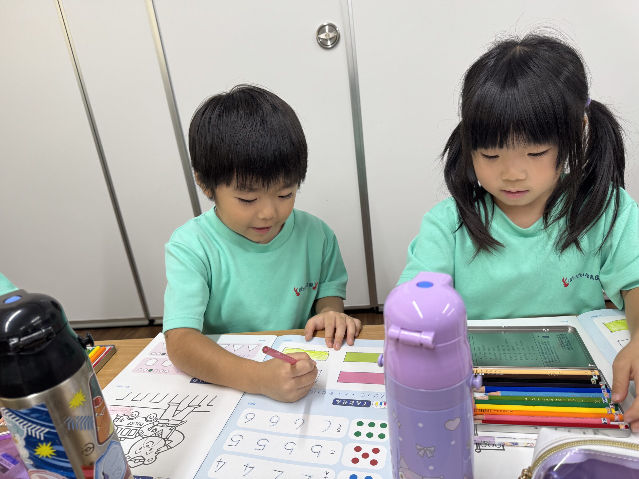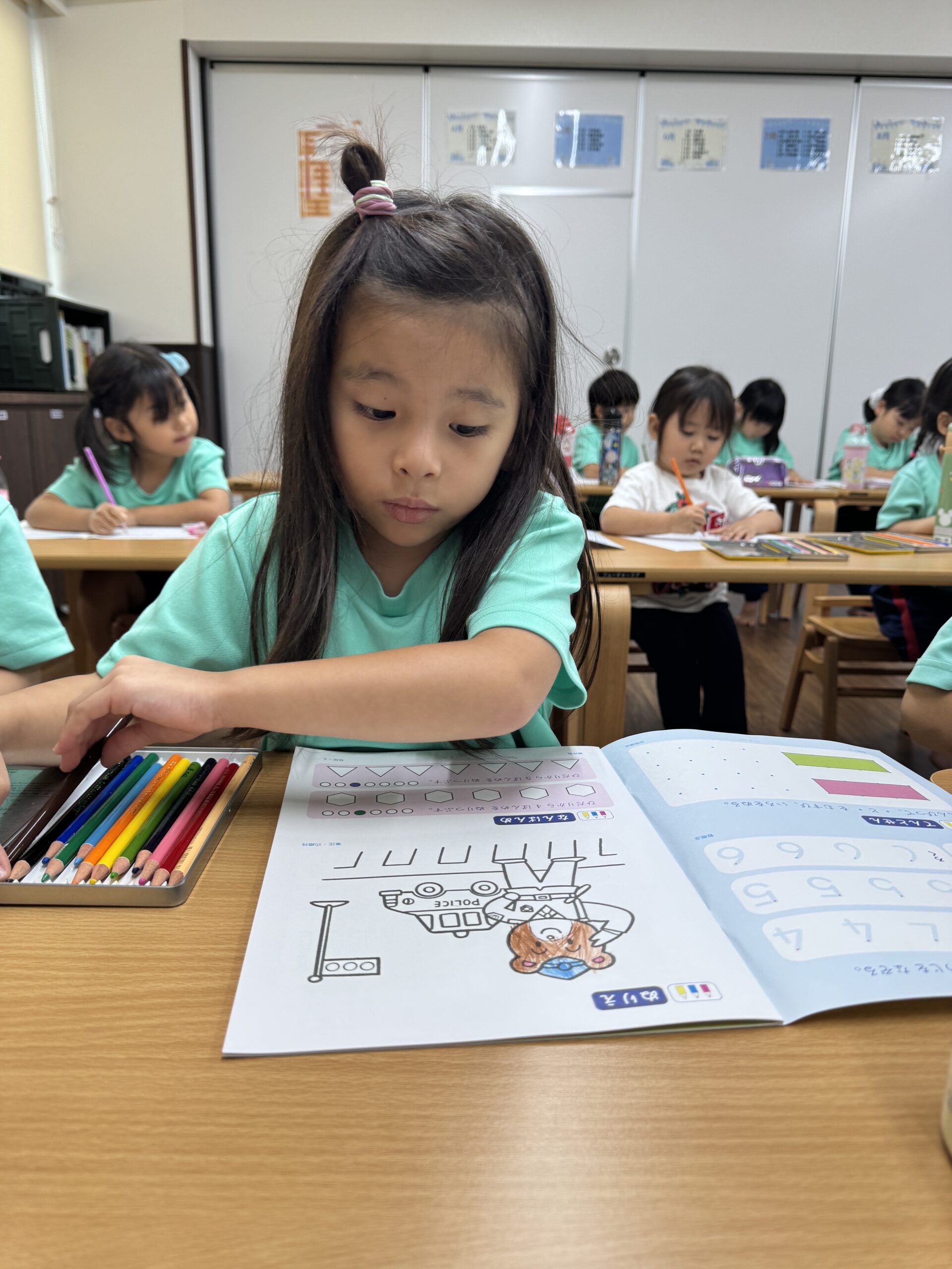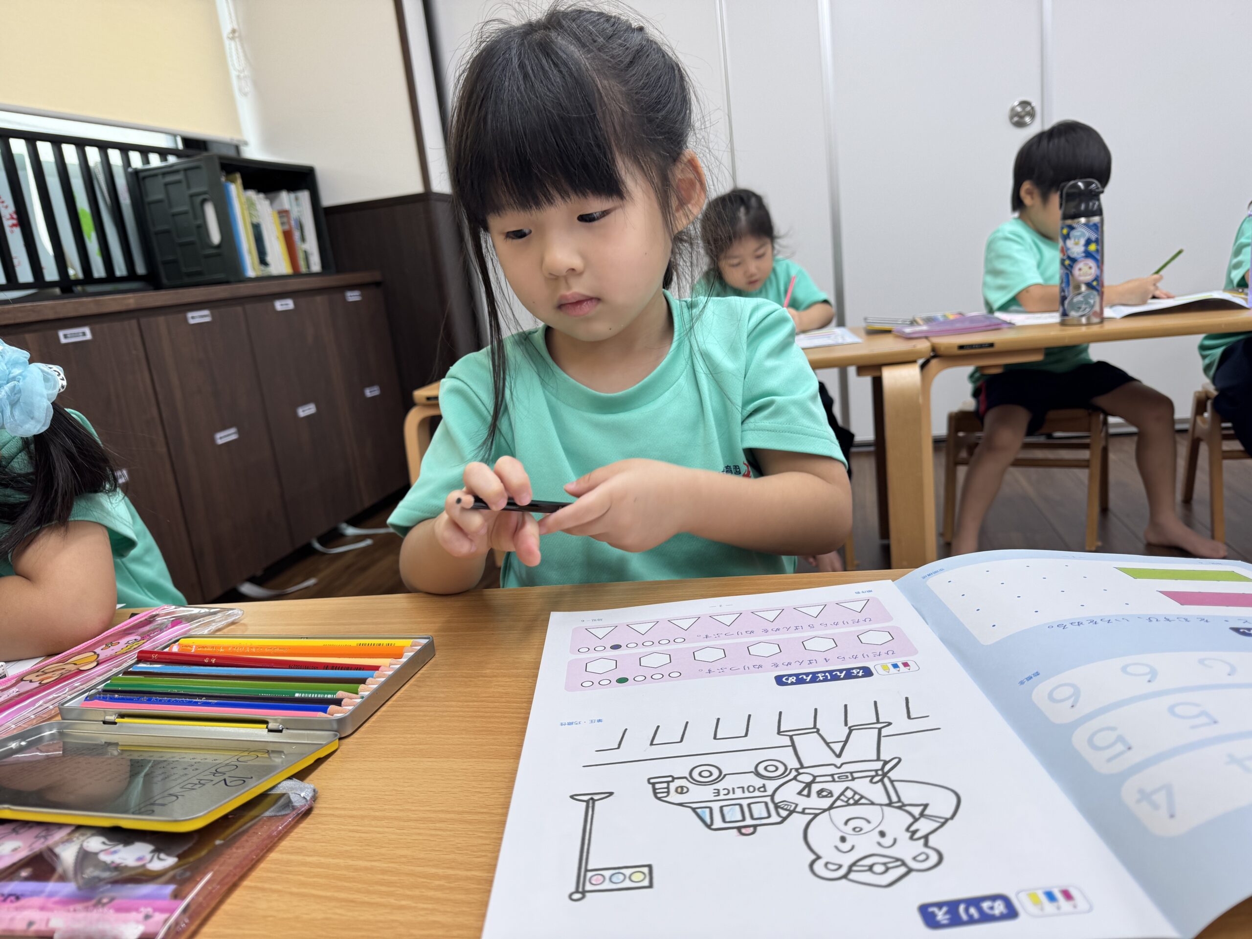 今日は「ひらがな」の練習と、塗り絵を組み合わせた運筆活動💪