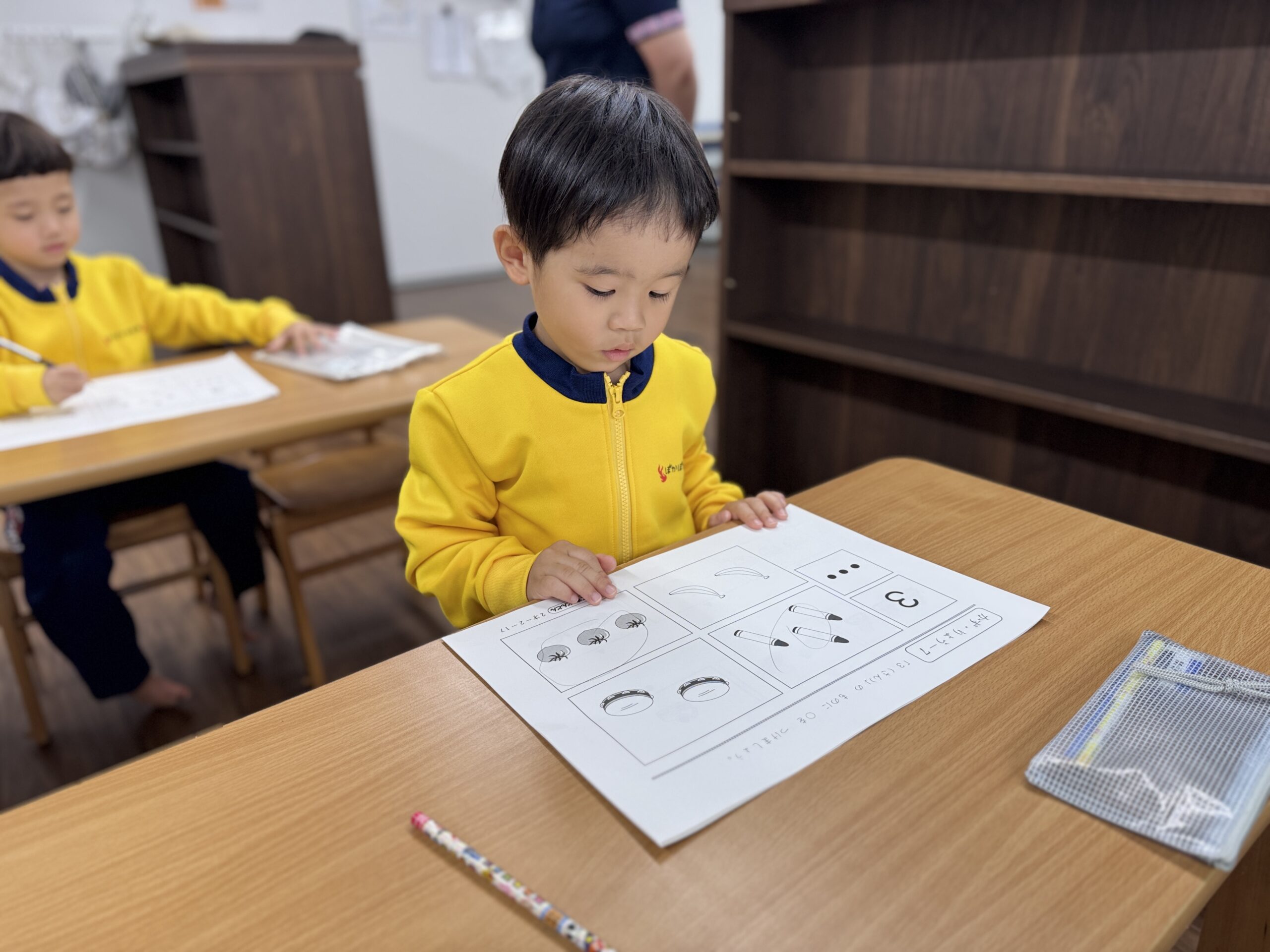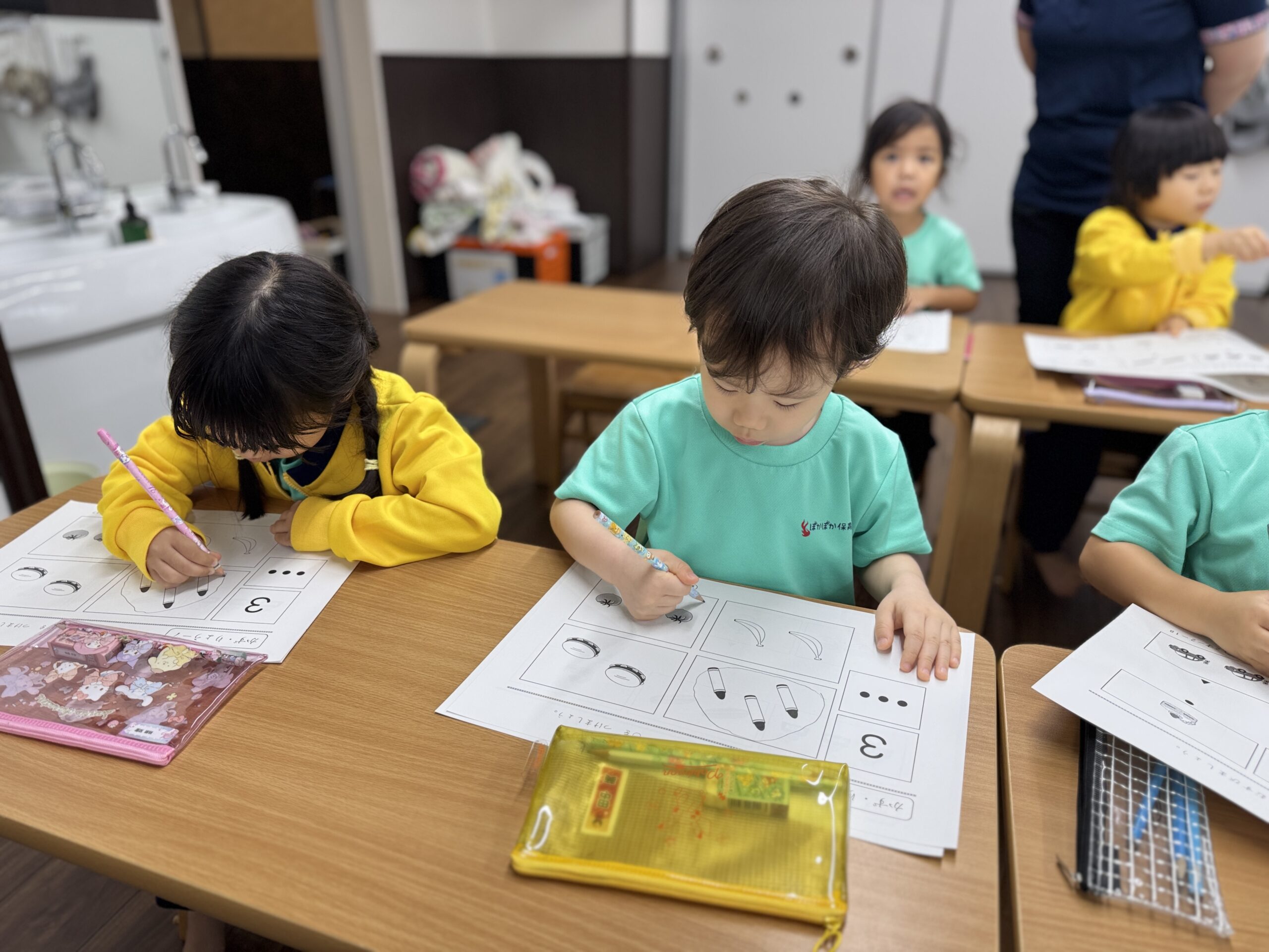 3歳児も課題に挑戦!頑張って行いながら「できた!」と嬉しそうに見せてくれる姿がありました。
