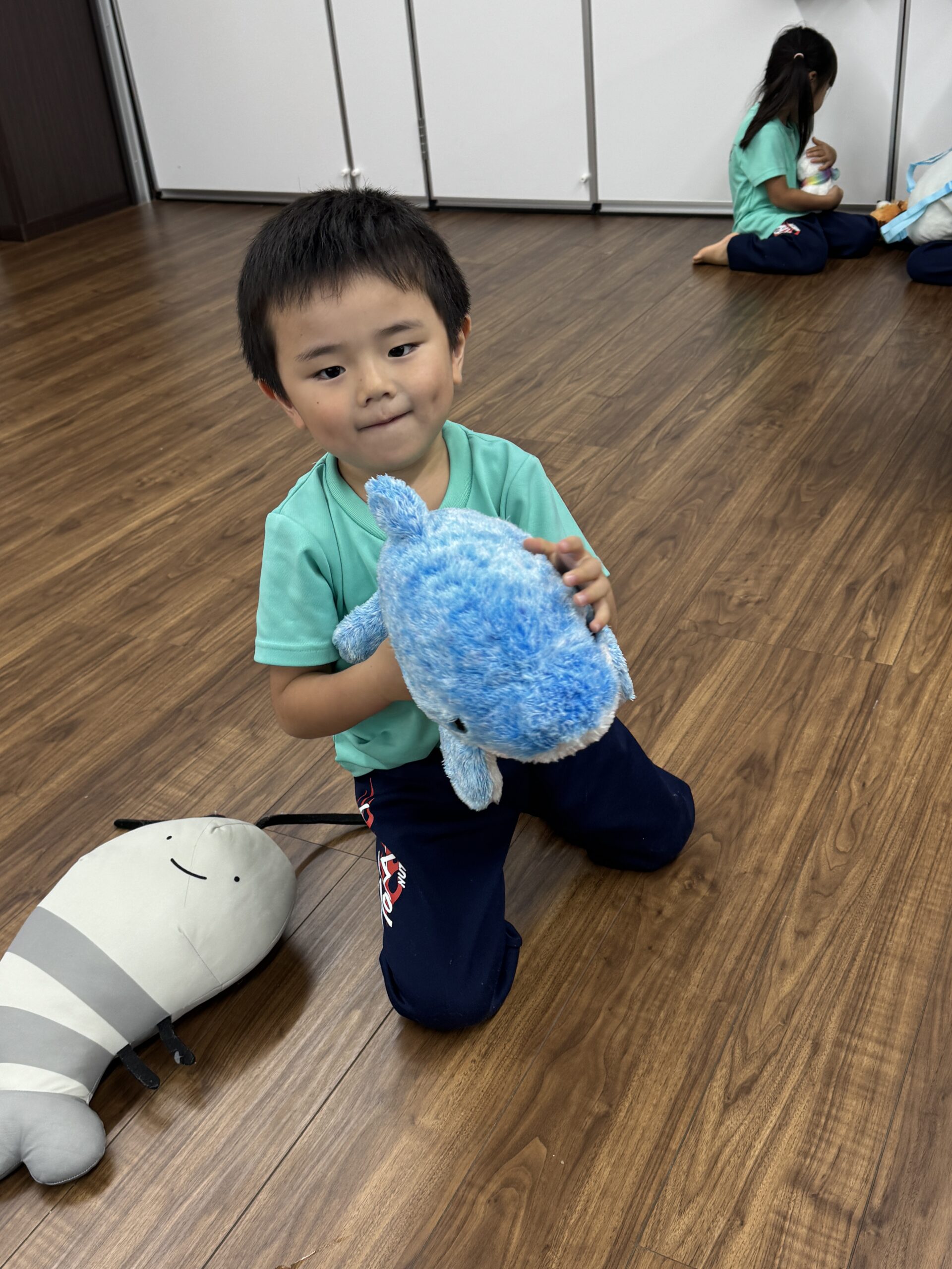5歳児は、ぬいぐるみの名前をひらがなで書いたり、背景に星やハートを描き加えたりと、自分なりのストーリーを広げながら作品づくりを楽しんでいました。「塗り絵」から「絵画表現」へと一歩進んだ姿に成長を感じます。