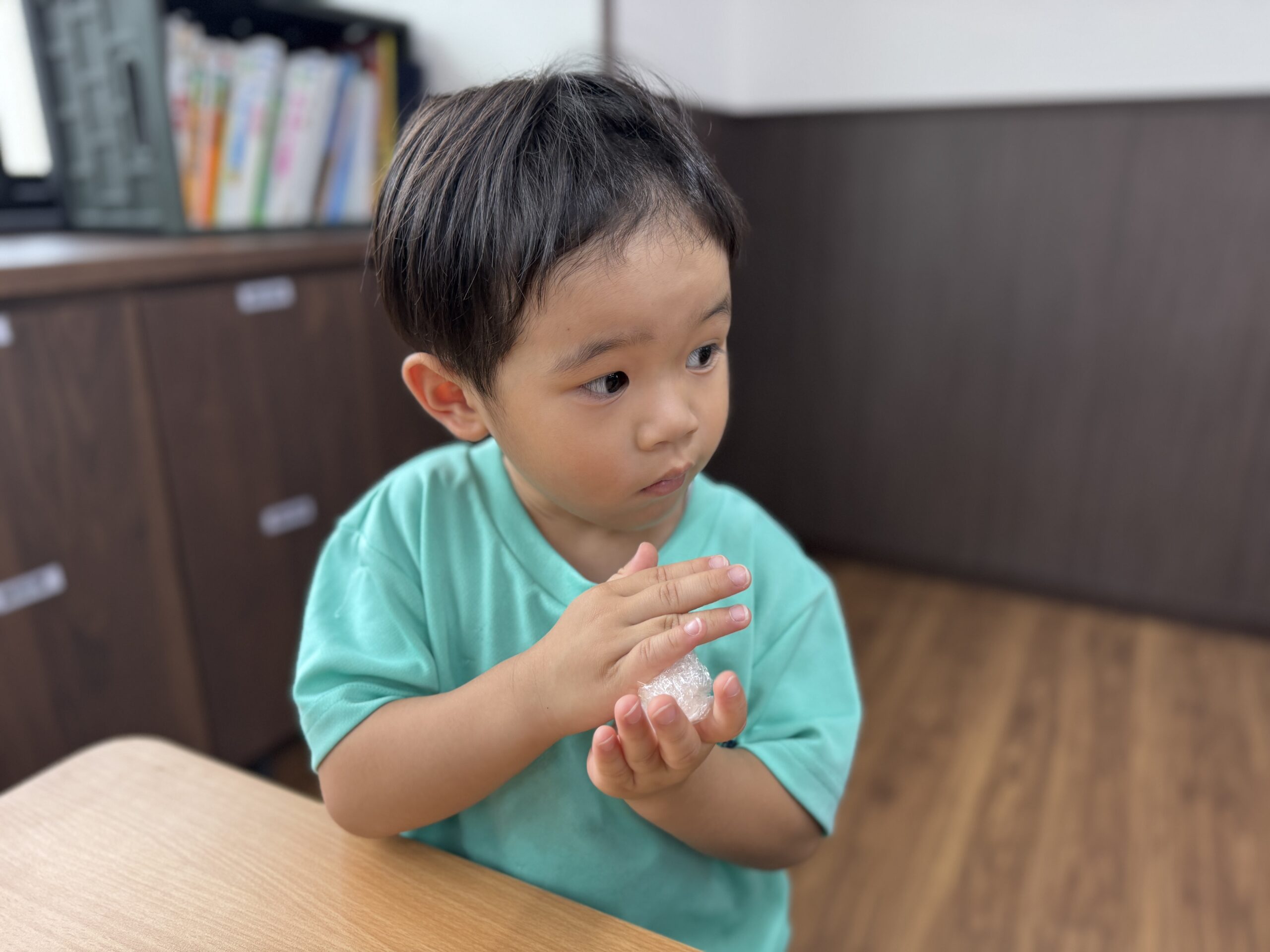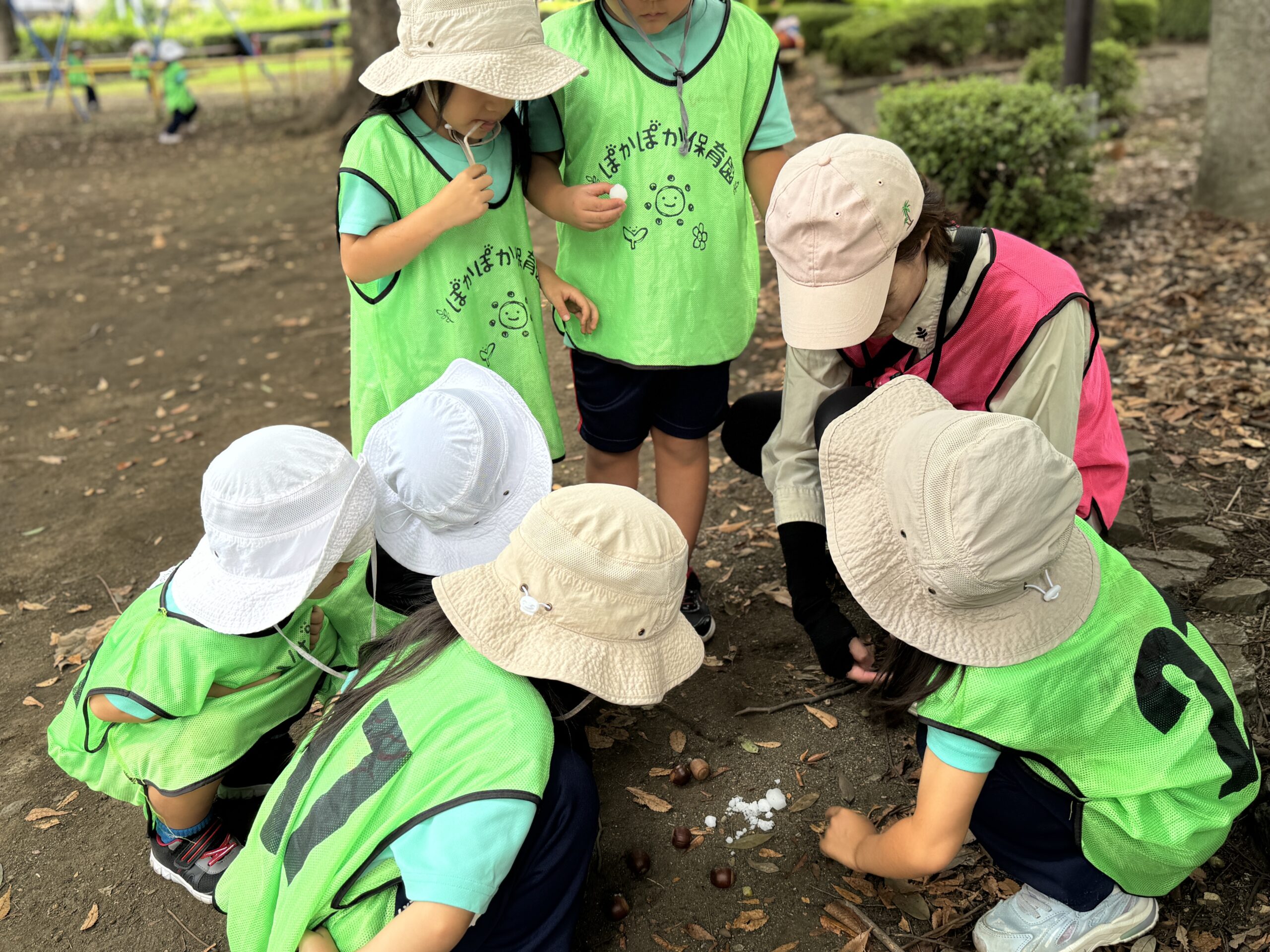今日はドリームチームでサイエンスの日でした!テーマは「砂糖とアリ」🐜 「砂糖を飴玉にしたらアリは寄ってくるのかな?」そんな子どもがワクワクする実験をしましたよ。 保育室ではまず、先生と一緒に砂糖と水を混ぜて小さな飴玉を手作り。「わぁ!手がベタベタだよ!」「ほんとにアリさん来るかな?」と興味津々の声がたくさん聞こえてきました。 先生が「この飴玉を公園に持っていって、アリさんが見つけるか観察してみよう」と話すと、子どもは「はやく置きにいきたい!」と大喜び。 公園に着いてからは、先生が「どこに置いたらアリさんが来そうかな?」と問いかけると、「木の下!」「石の近くだといいかも」とそれぞれ考えながら飴玉を置きました。 実験の結果が出るまでの間は自由遊び。ブランコを漕いだり、鬼ごっこをしたり、秋の風を感じながら元気いっぱい体を動かしました。 遊んでいる途中でも「そろそろ見に行こうよ!」「アリさん、来てるかな?」と気になる様子。飴玉を置いた場所に戻ると「あっ!ちょっと動いてる」「まだ来てないみたい…」と目を輝かせながら観察していました。 最後に先生が「今日はどうだったかな?お家の人に教えてあげてね」と伝えると、「絶対言う!」「ママにびっくりさせようっと!」と嬉しそうに話していましたよ。 この活動では科学的な視点だけでなく、「考えて試す」「結果を観察する」といったカリキュラムに沿った学びの姿がありました。子どもの「なぜ?」を大切にしながら、実験後の自由遊びで体もたっぷり動かせたことで心も体も充実した一日となりました✨ 八王子市保育園でも大切にしている、子どもの好奇心を引き出す手厚い保育の姿を今日も感じられました。 ぜひお家でも「アリさん、飴玉に来た?」と聞いてみてくださいね。
