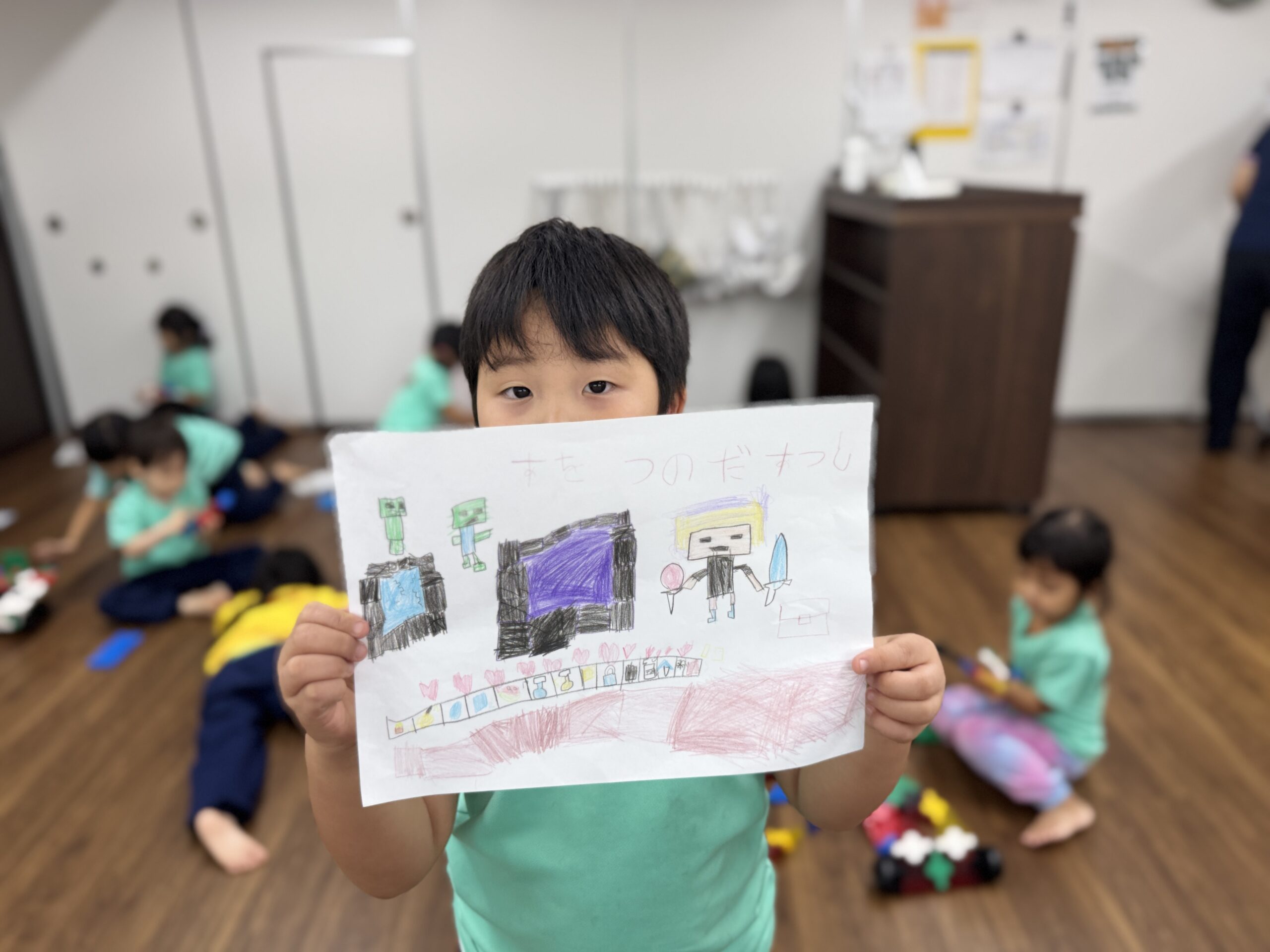 友だちと仲良く遊んでいるのがとても印象的でした!自分たちで作った作品を見せてくれました!