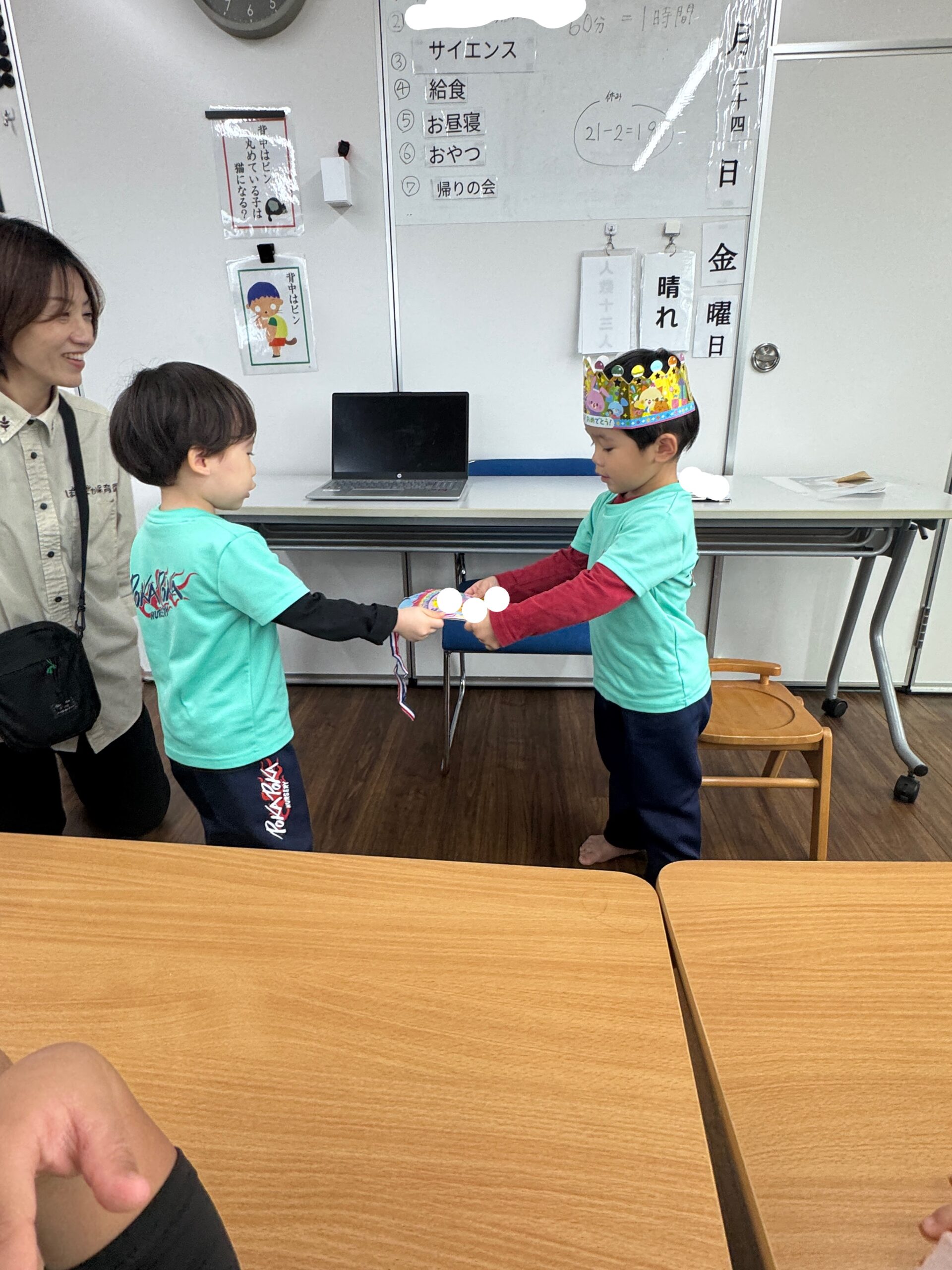 お誕生日会では、このようにお友だちとの絆の場面も見れて、心が温まりますね☆