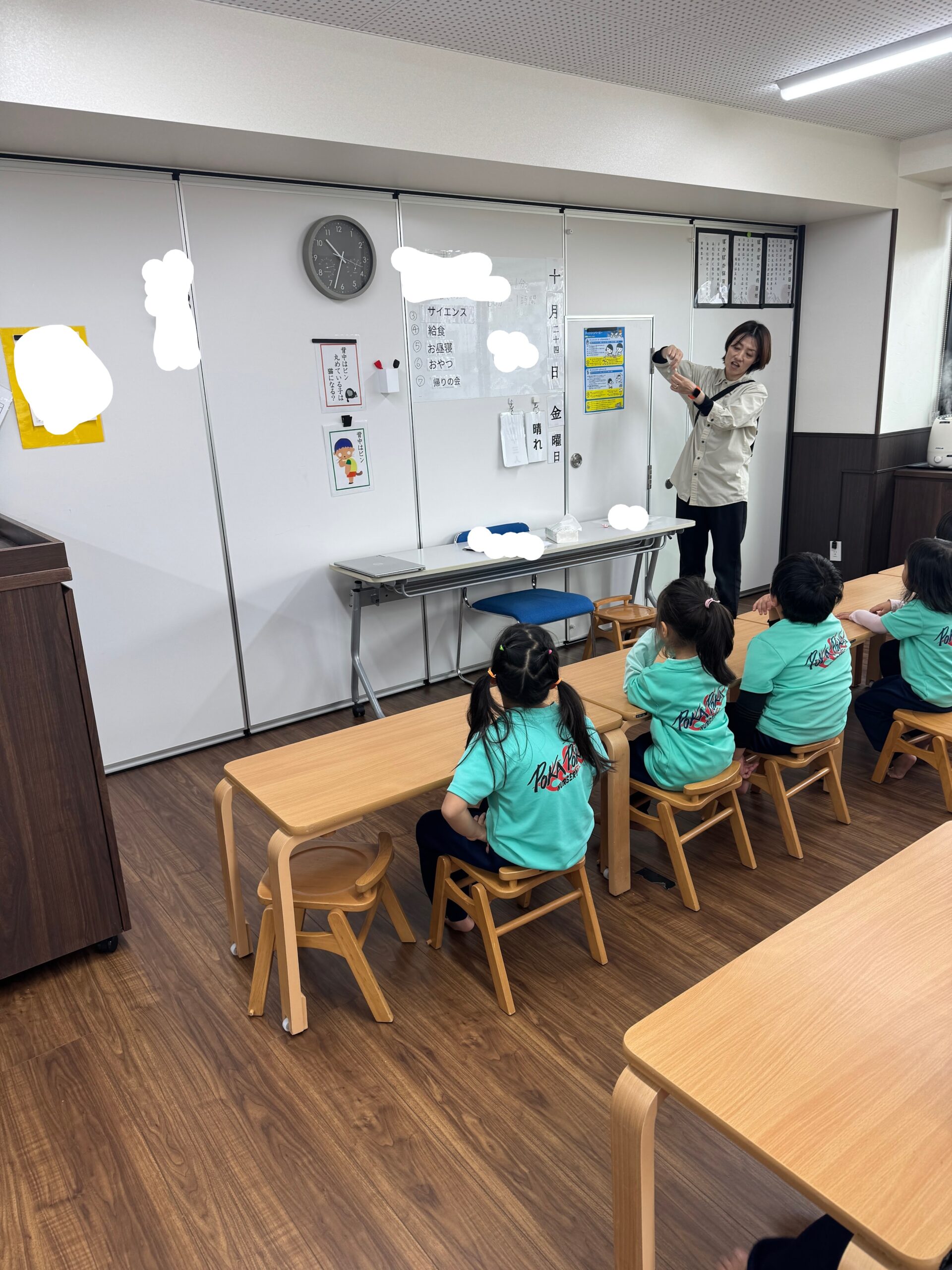 お次はサイエンスです!子どもたちが楽しみにしている活動の一つで、今日はどんな実験をするのかな?