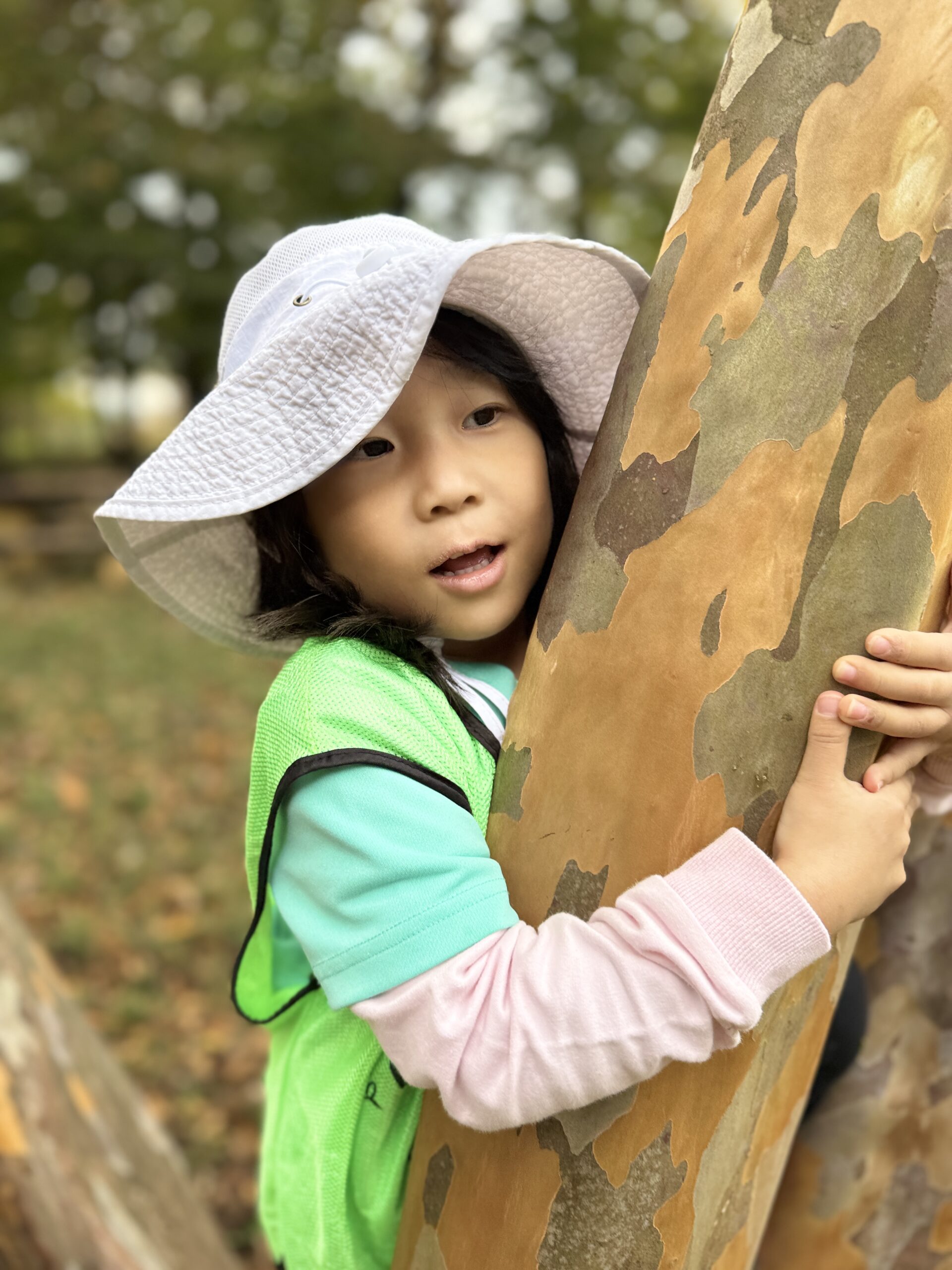 こちらはみんなで、キノコが木に生えてないか確認です!