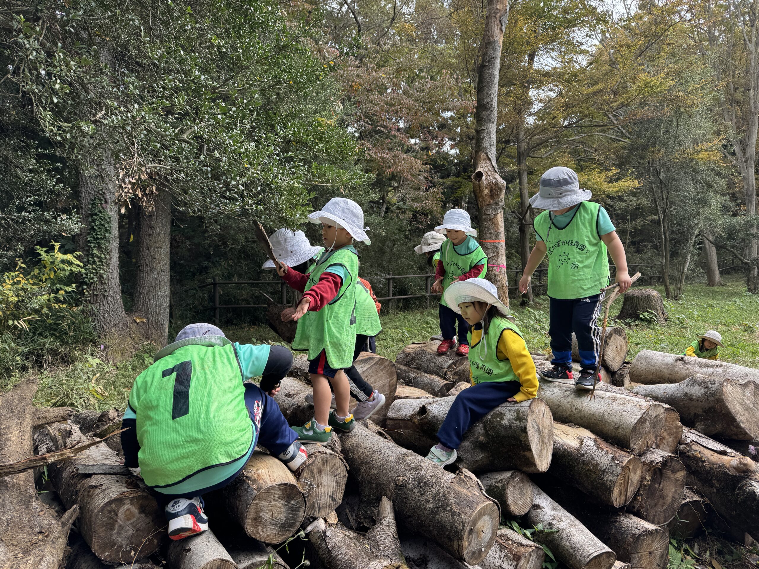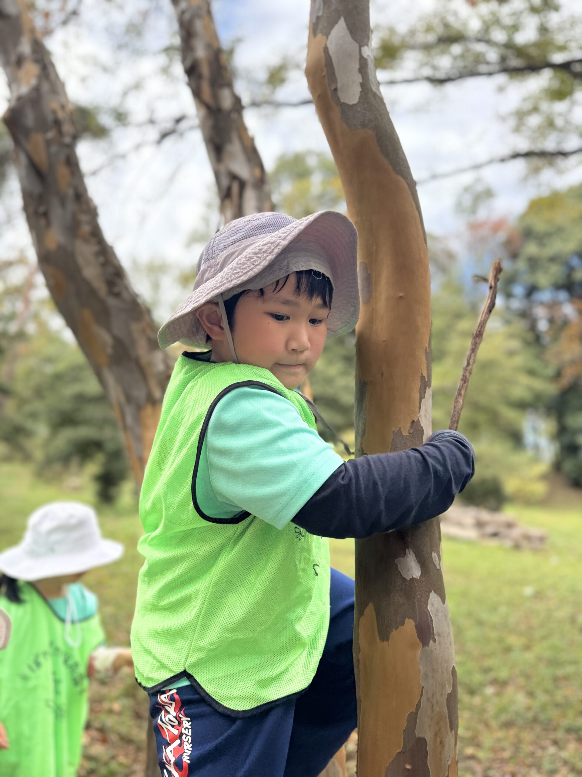こちらはみんなで、キノコが木に生えてないか確認です!