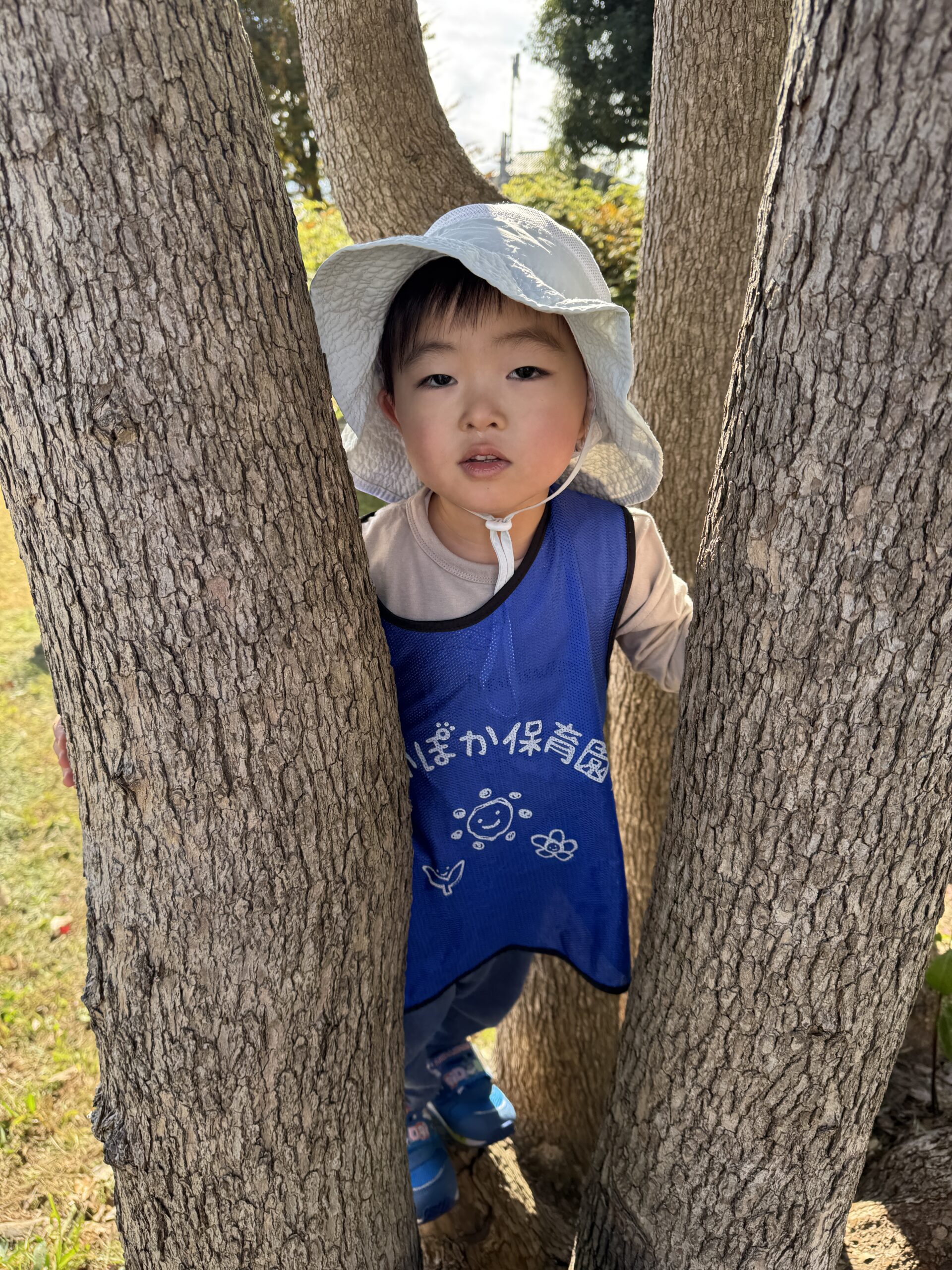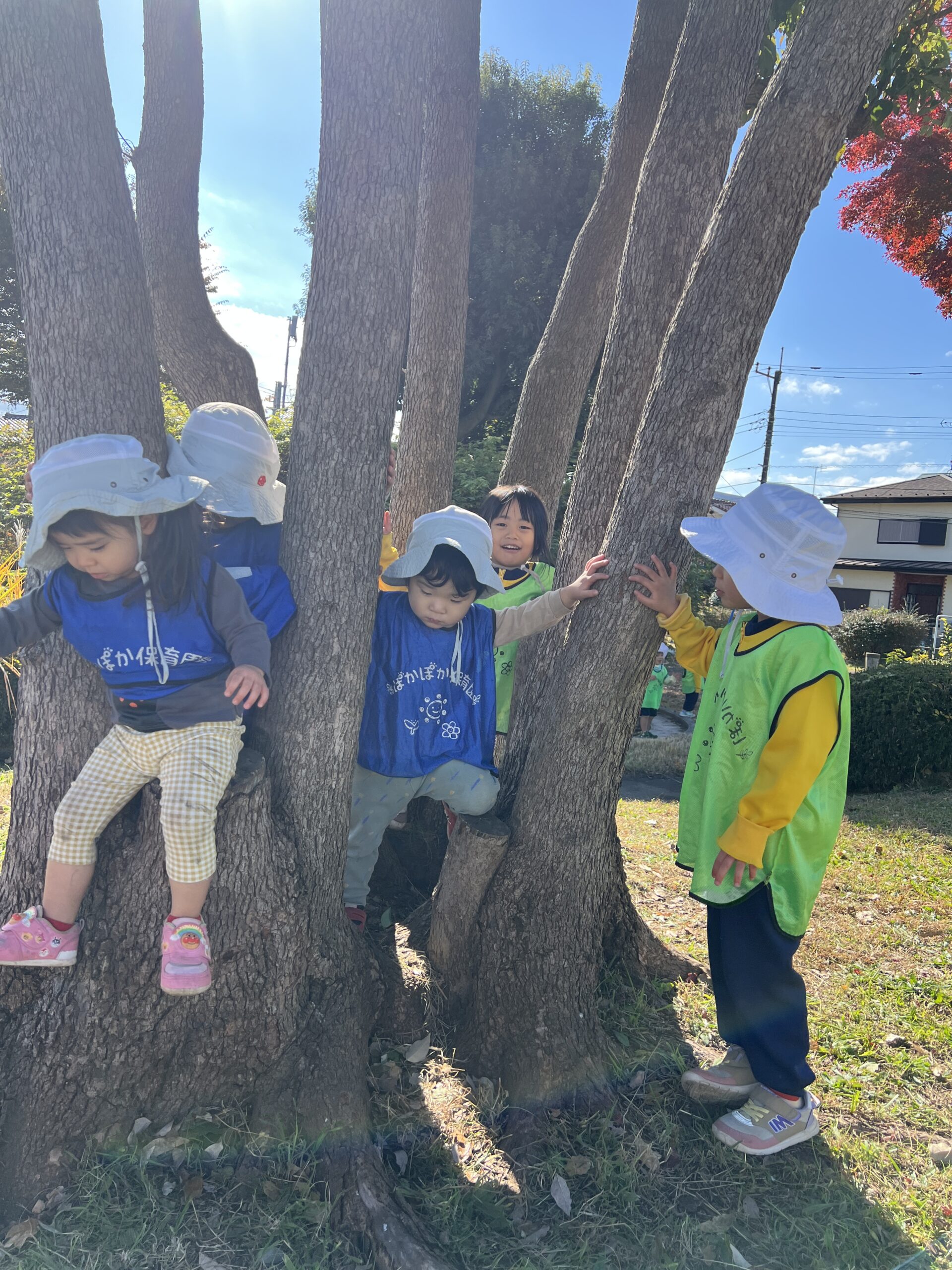スターの友だちも木登りをしながら、戸外遊びを楽しんでいます!