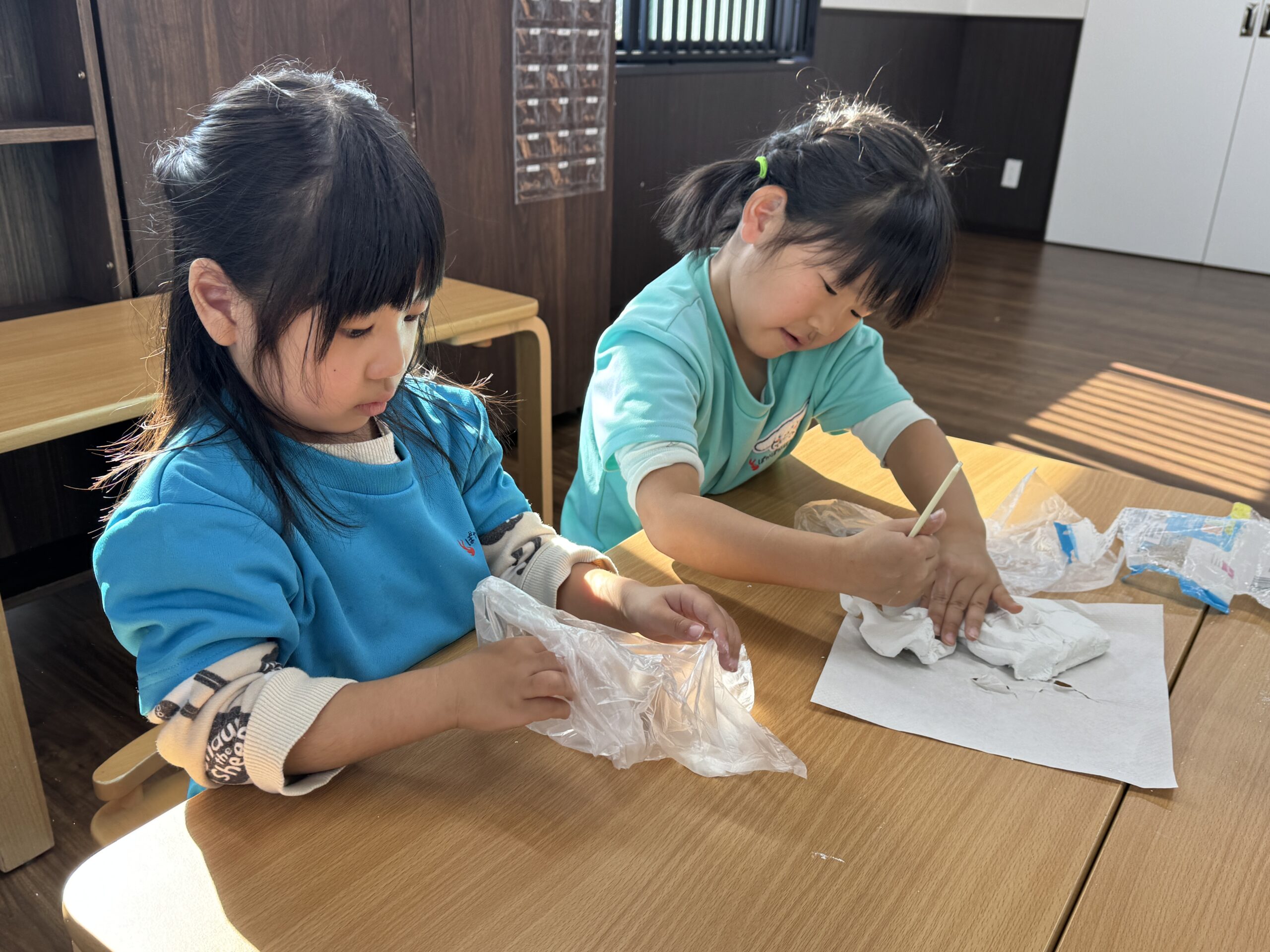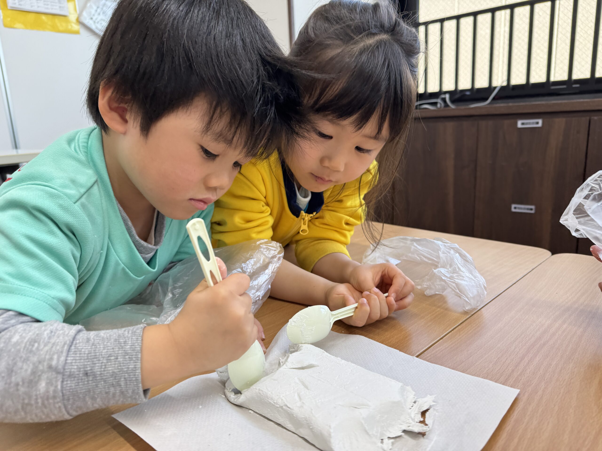 「本物みたい〜!」「ケーキ作りたい!」と嬉しそうに仕上げを楽しんでいました。