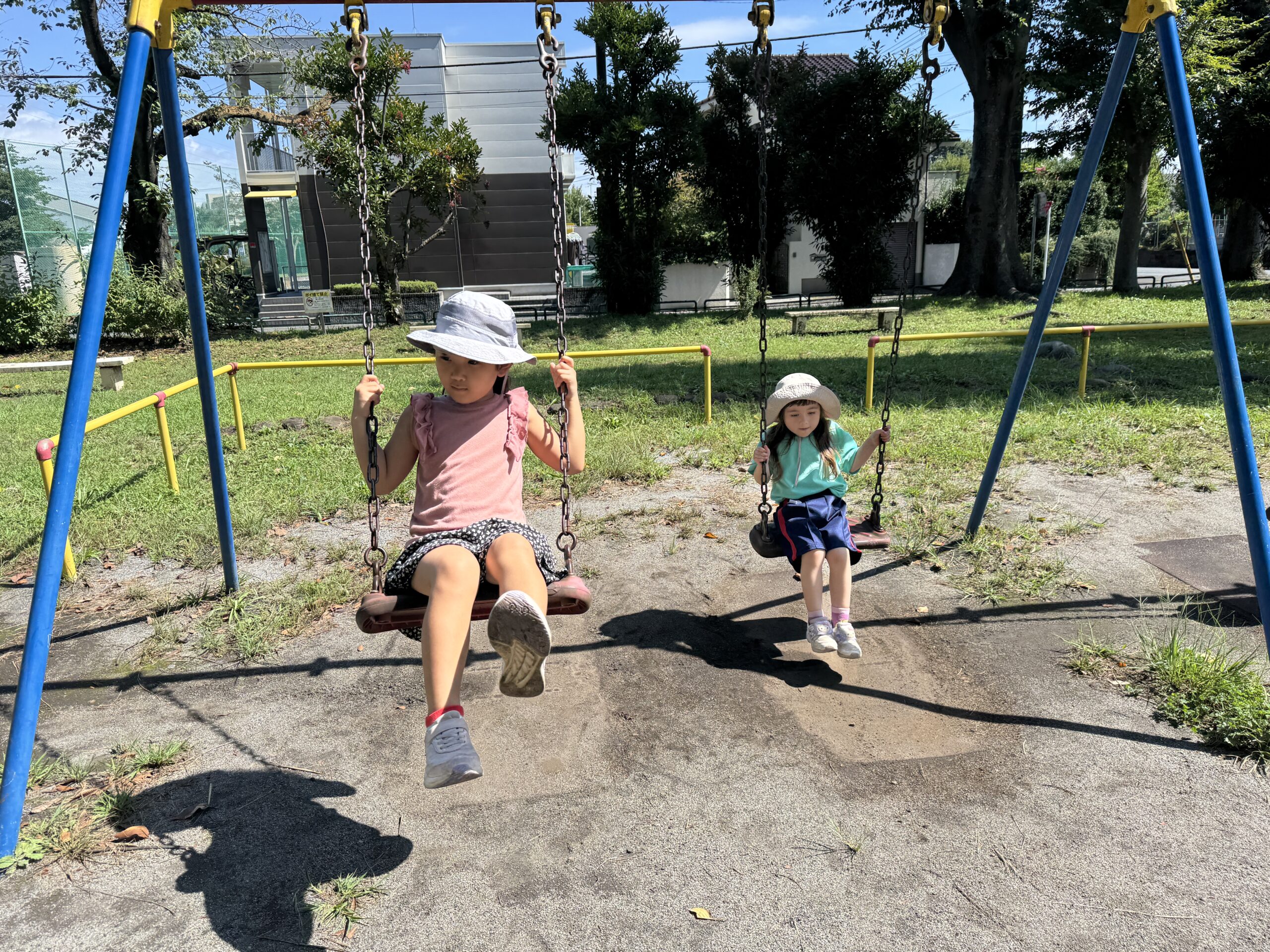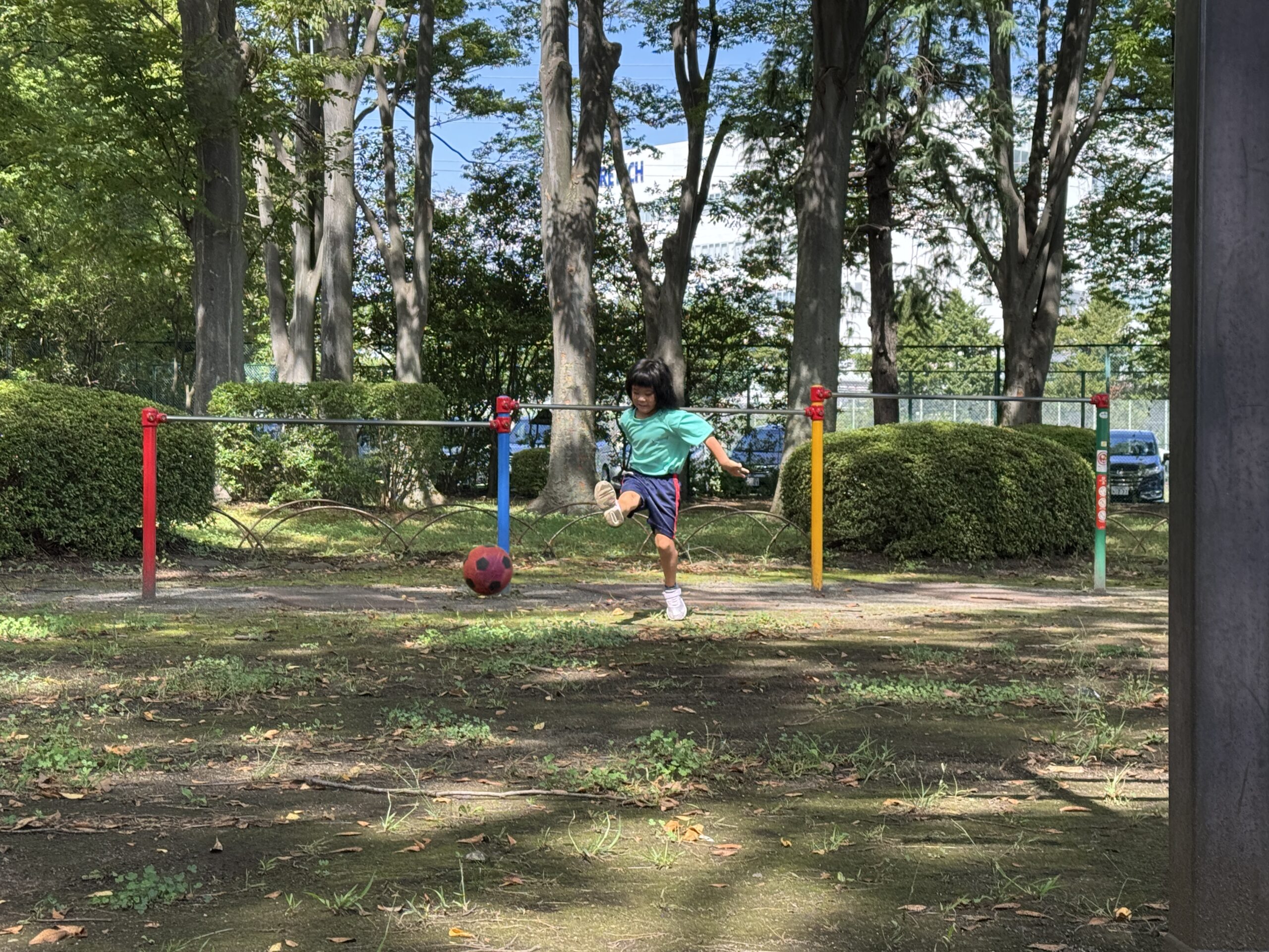 太陽の光を浴びながら、ボール蹴りやブランコを楽しみました。