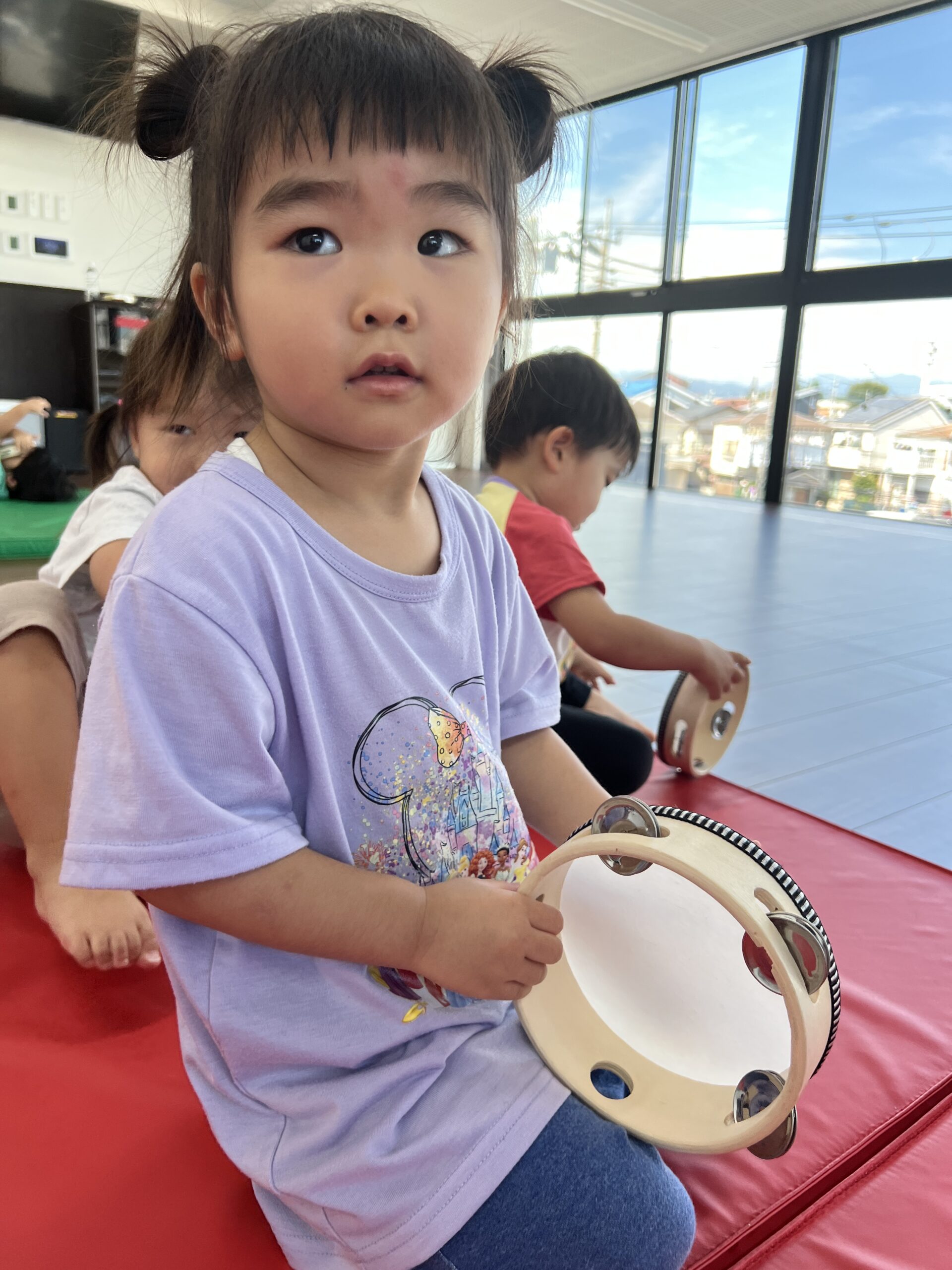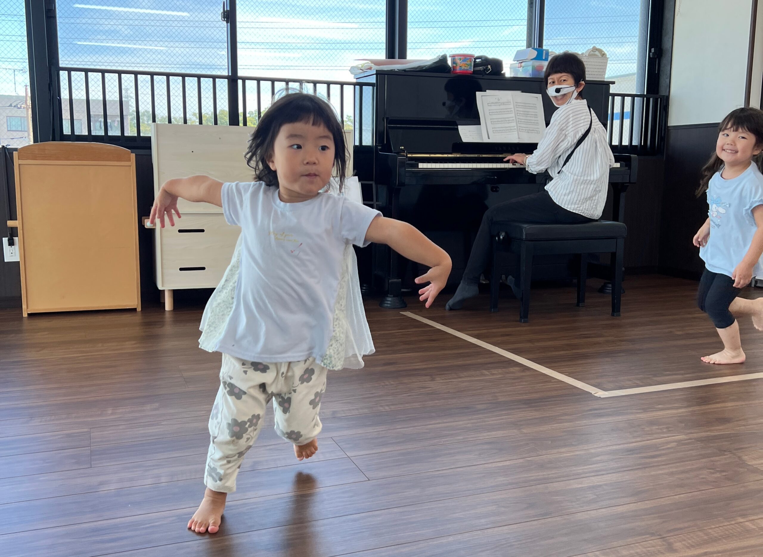 楽器に触れたり、ピアノに合わせて体全身で、表現遊びをしたり