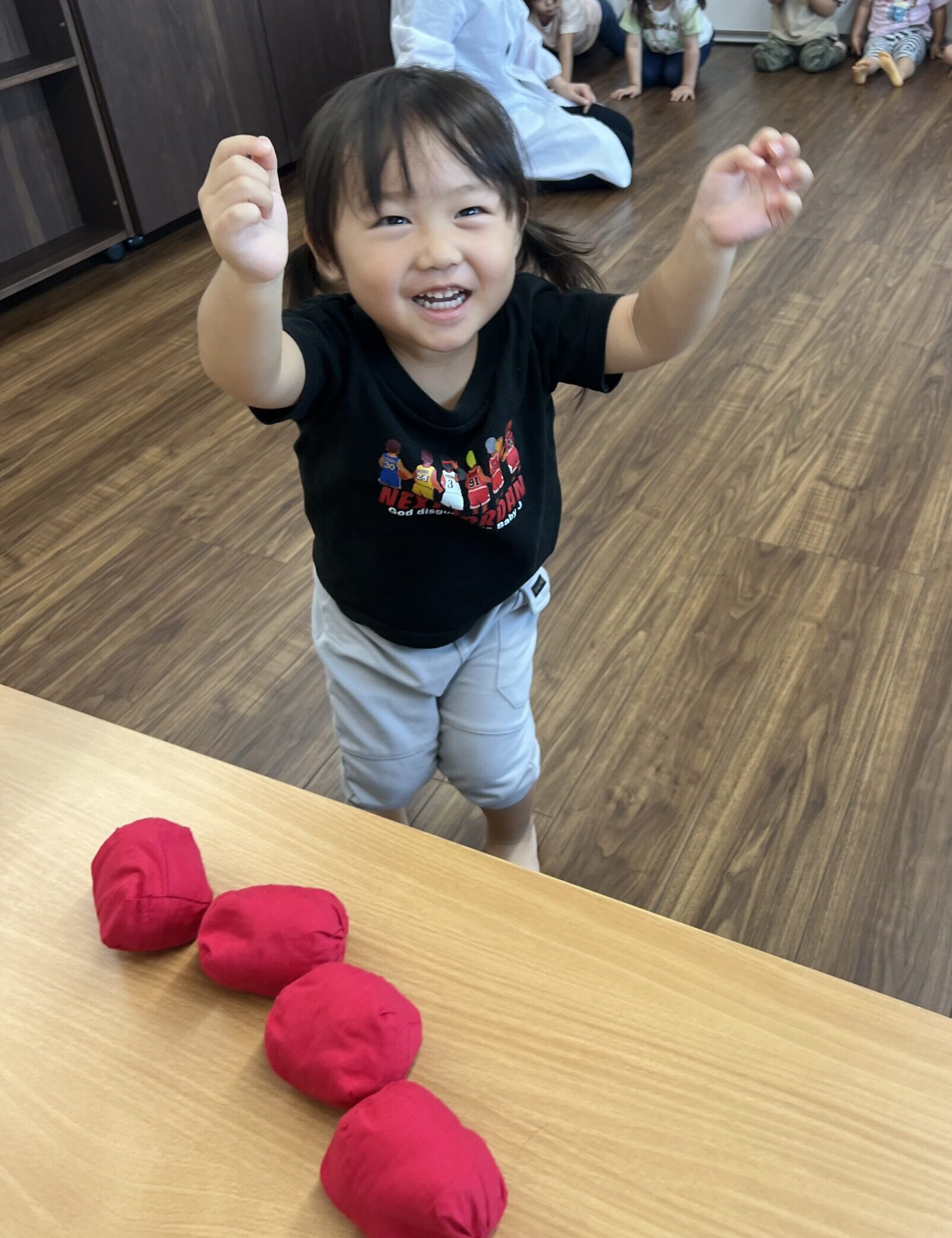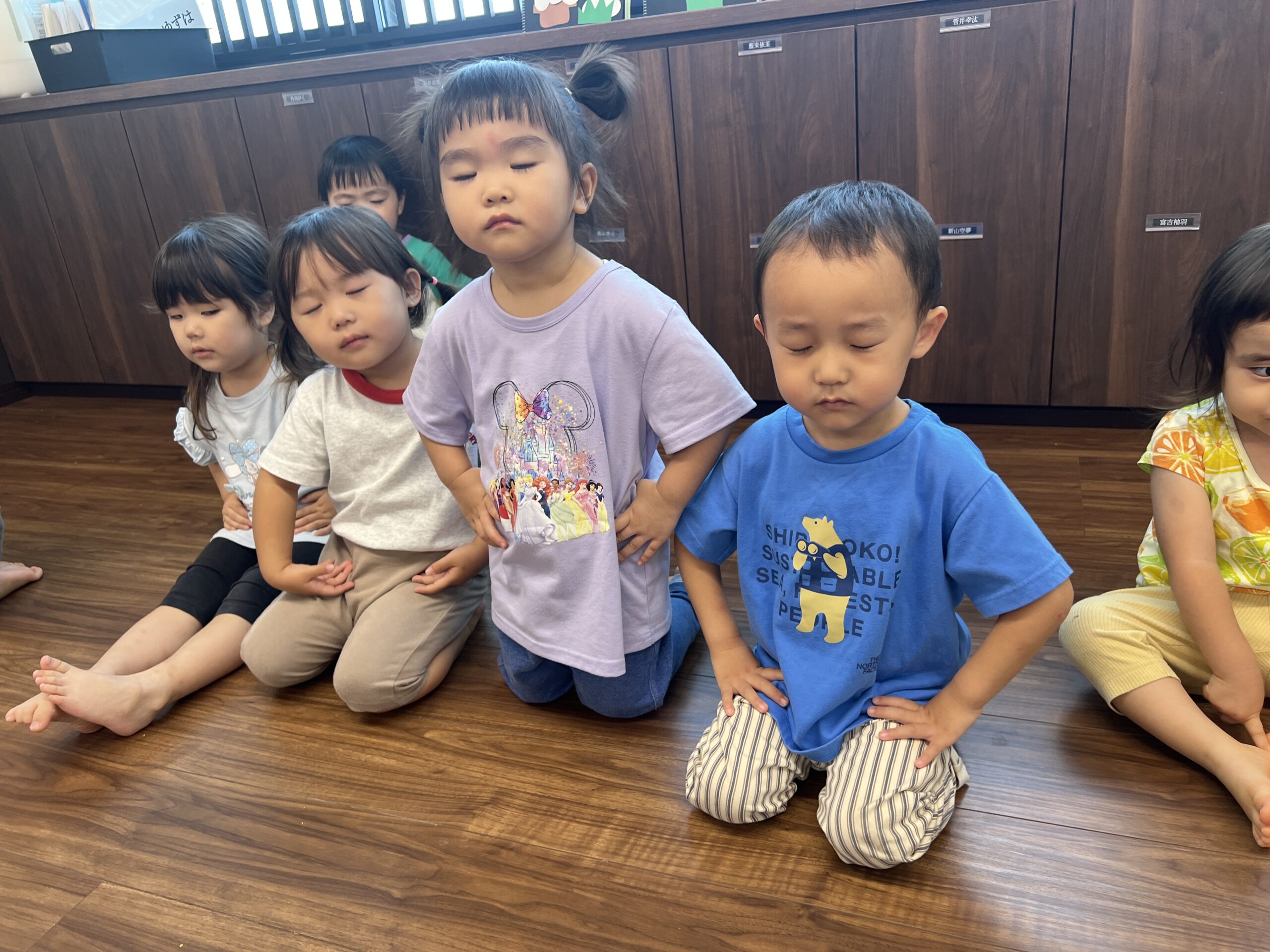 立腰の時間は2歳のお友達も心を一つに、心を整えられるようになりました。